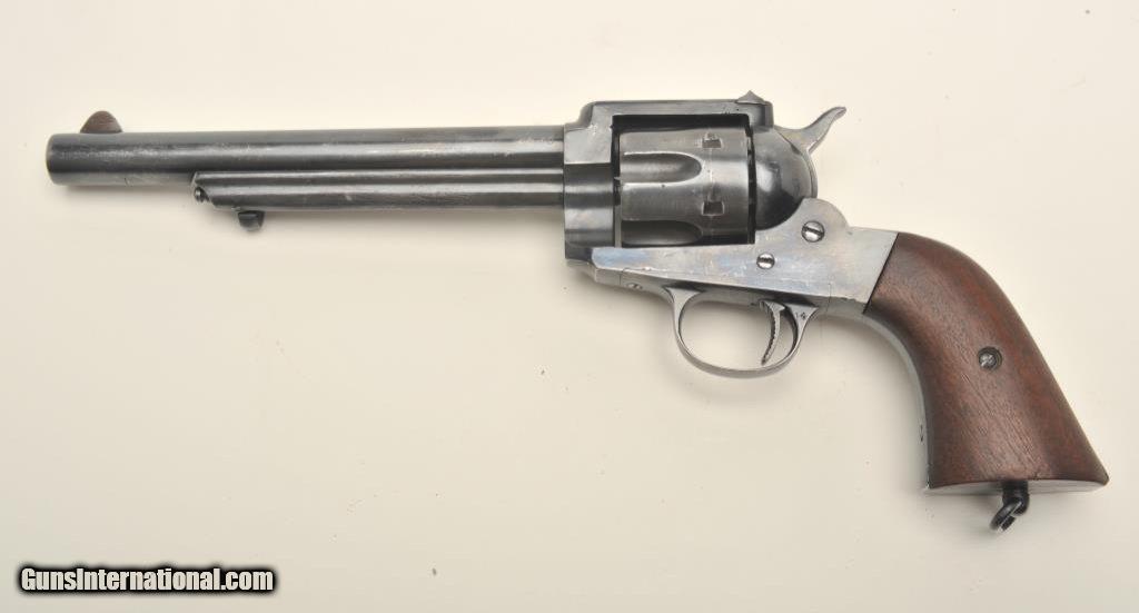 Description: Remington Model 1890 single action revolver, .44-40 caliber, 7.5” barrel flat top frame, blued finish, wood grips, S/N under grip is 941, in overall good condition , good action, bore and very good grips, good markings: correct Remington barrel address is present. "44" on trigger guard. SOLD Antique: Yes |