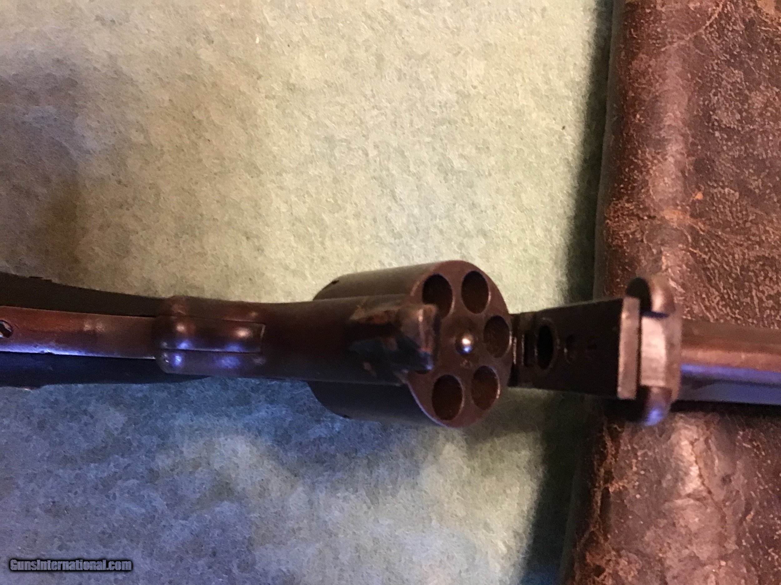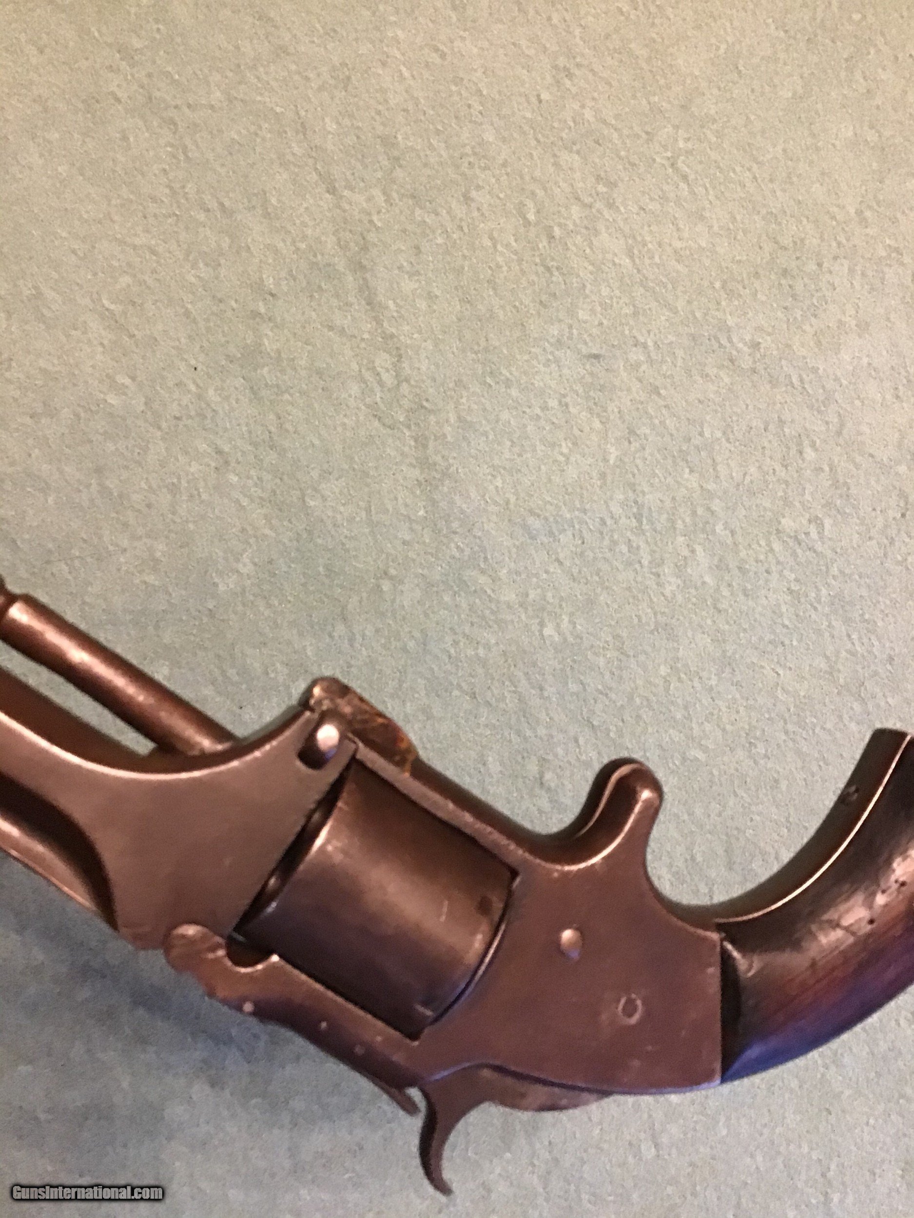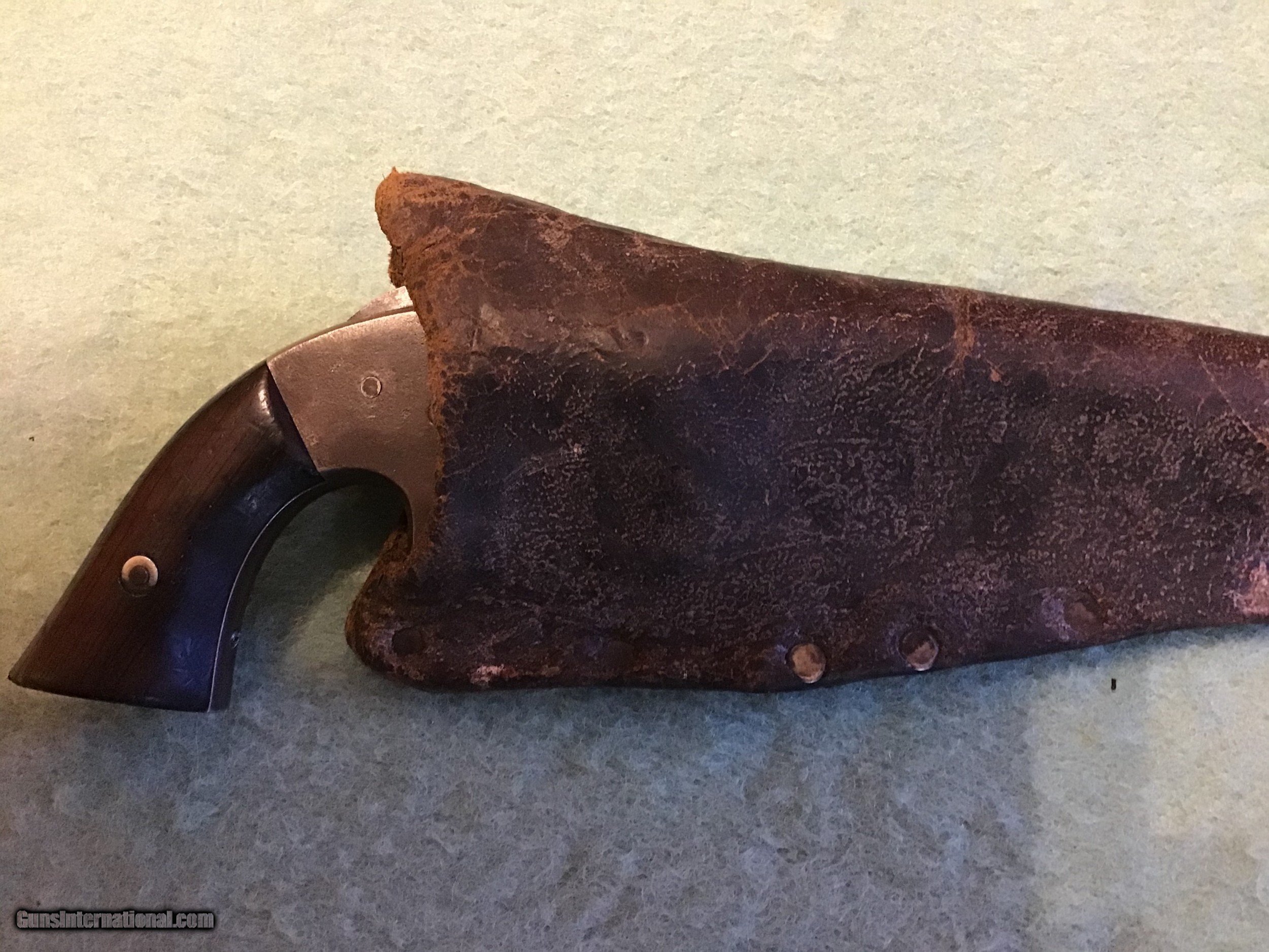 Description: Smith & Wesson No. 2 Old Model Army, 32 caliber. Sr. Number 33079 puts it in the civil war era. Rosewood grips are in very good condition. Metal condition is a grey brown color with some very fine pitting. Gun seems to work fine. The 6" barrel markings are good, Smith and Wesson. Springfield, Mass. Overall a good old civil war revolver. Shipping will be actual cost approximately $25.00 Feel free to call me if you have any questions 218-839-9272 Sale pending SOLD Antique: Yes Manufacturer: Smith & Wesson Model: #2 Old Model Army Serial Number: 33079 Barrel Length: 6” Condition: Good Metal Condition: Good Wood Condition: Very good |