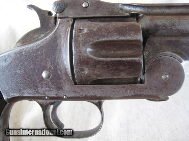 Description: Rare S&W No. 3, 1st Model .44 American TRANSITIONAL. Overall very good condition. All lettering and markings are discernable with a rare tiny circled-D stamp on the right front portion of the the latch housing and the tiny S&W six point star mark under the flat of the latch, all denoting that this initially went to Russia as a contract piece, was rejected by the Russian military inspector, Capt. Kasavery Ordinetz, for whatever reasons (sometime nothing more than a flaw in the finish), and then shipped back to the S&W factory where the Russian Cyrillics were buffed off the top rib, the English stampings applied, and was then shipped to one of their U.S. distributers to be sold on the frontier commercial market. This particular gun, S/N 6803, has been specifically given a few lines of honorable mention in column 2 on page 285, in Charles Pate's book 'Smith & Wesson American Model' (considered 'the' bible on all of the S&W No. 3 variants). This has the transitional features. The piece cocks, locks, and indexes properly. After ejecting and closing the action, the extractor some times needs to be manually reset by simply pushing the paul lever slightly forward (located on the bottom of the frame) where it then resets. At times there is no need to reset it. This is due to a slightly weak spring. This does not detract from its features, and is a simple fix for any gunsmith that's familiar with antique firearms. Overall the gun displays nicely with evidence of frontier usage without having been abused. The barrel release latch-lever has very good spring tension. The lands and groves are visible with noticeable frosting and pitting - probably about a 5 or 6 on a 1 to 10 scale that might clean up better. Cosmetically, it has a mottled brown patina, moderate to heavier in some areas and lighter in other areas, which fades out about halfway down the barrel to the muzzle from apparent holster wear. There is some small period dings and handling marks that attest to its role as having been a constant carry piece. There is no noticeable pitting and no rust. All the screws heads are nice and serviceable, except for the lug screw on the left side which shows noticeable use, but is nevertheless serviceable. The grips have a very nice smooth hand-worn feel without being damaged, cracked, or chipped, and having a well worn-in oil like finish from years of application and handling. ALL NUMBERS MATCH, INCLUDING THE GRIPS. This is a nice early western frontier piece, not for the discriminating purest looking for a pristine hot-house rose that sat in a bureau drawer all its life, but rather for the collector looking for that carried tool of reliable protection that most likely had a blazing 'been there - done that' historical past in the old west, and that's in the rarely encountered and desirable transitional variation. This is an antique and can be shipped directly without FFL transfer. Buyer must be 21 years old and proof of age must be submitted if requested. $35.00 shipping to lower 48. Insurance optional. Hawaii and Alaska priced accordingly. Payment terms: Postal Money Orders or Certified Cashier Bank Checks from major national bank institutions ONLY, i.e. BOA, Wells Fargo, and Chase. NO PERSONAL OR COMPANY CHECKS ACCEPTED. 3 day inspection. Buyer pays return shipping. Item must be returned in exactly the same condition as when shipped by Seller. Buyer is encouraged to call before to confirm availability. Please call or e-mail if you have any other questions or desire more photos SOLD Antique: Yes |