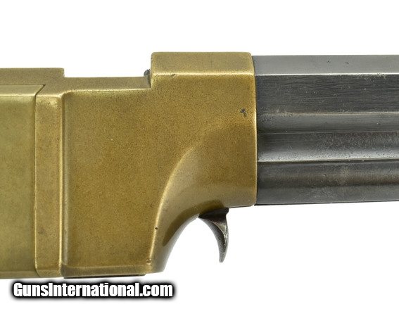 Description: Volcanic Large Frame Navy Model. 8” barrel. Very fine gun! This gun has been expertly refinished long ago. At first glance, this gun appears original based on the barrel finish and sharpness of the gun overall. Markings are perfect. Grips are slightly undersized, but are matching. Very fine gun! SOLD Antique: Yes |