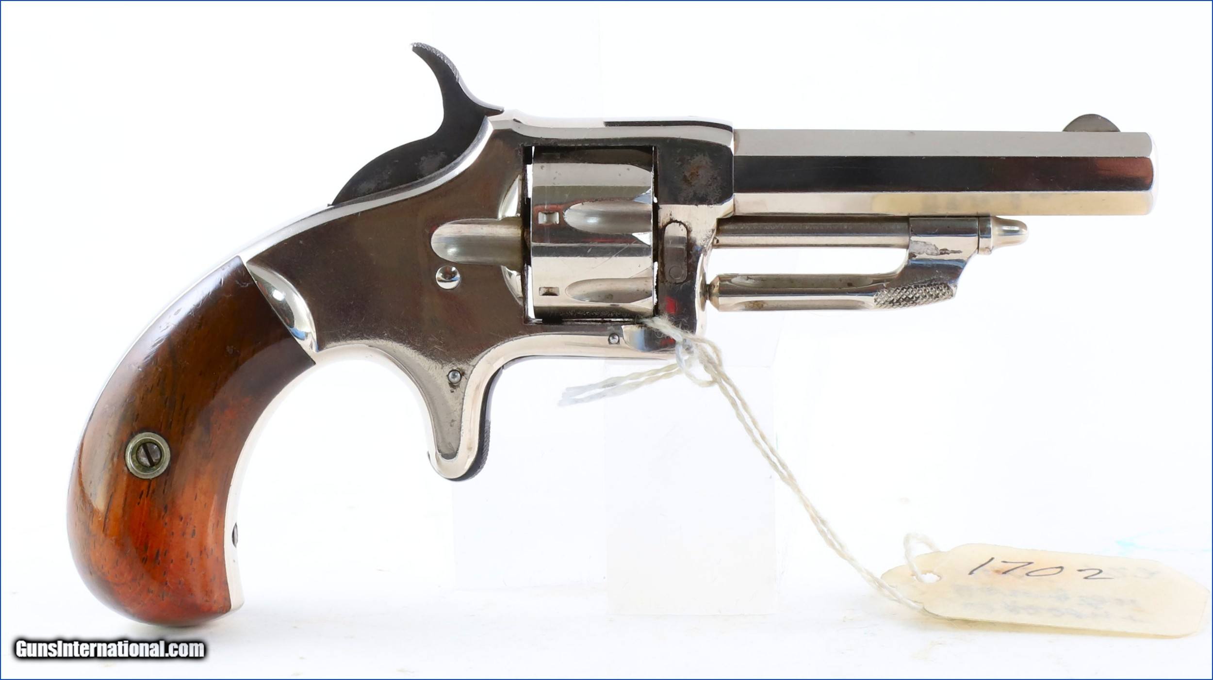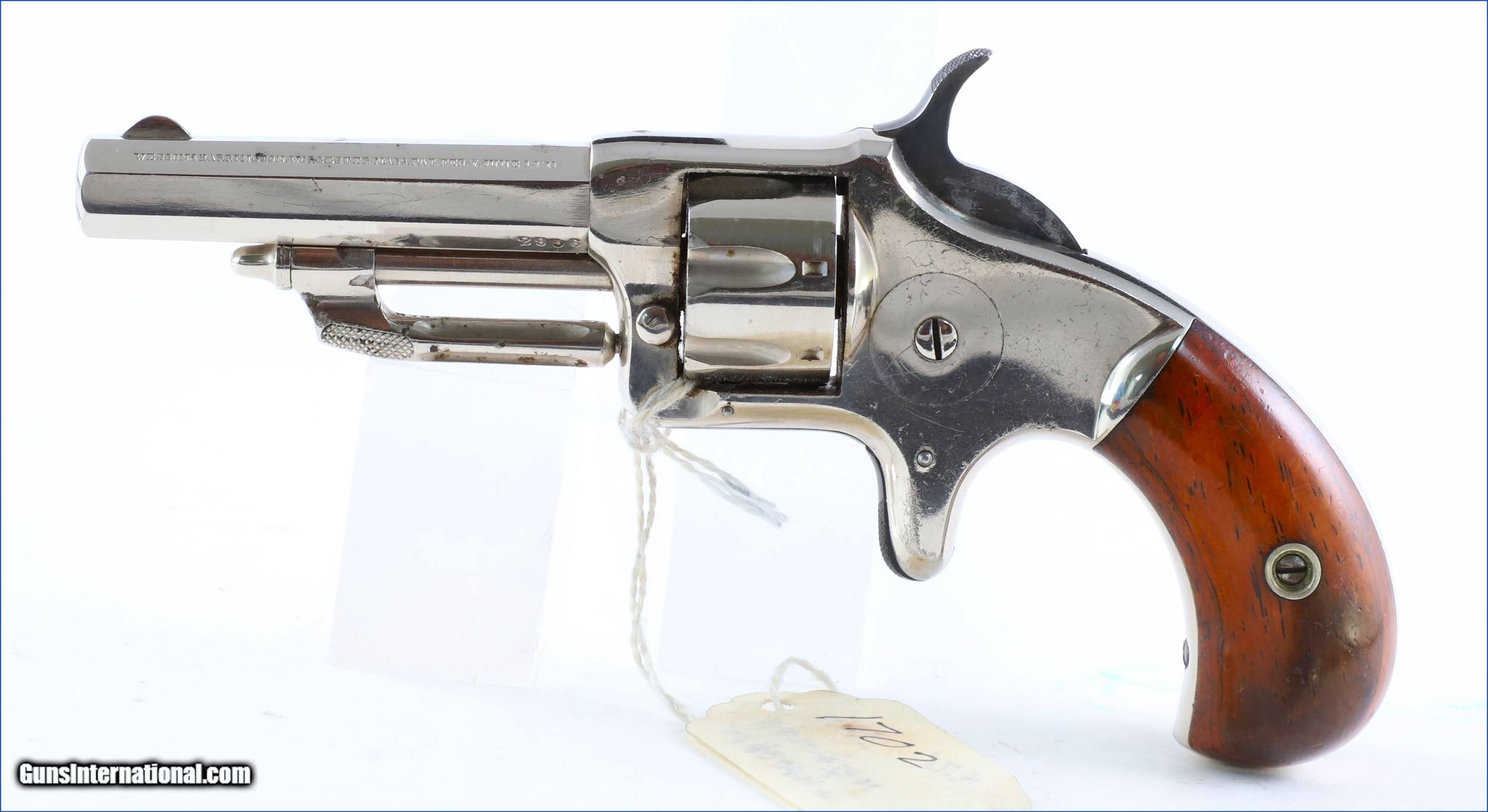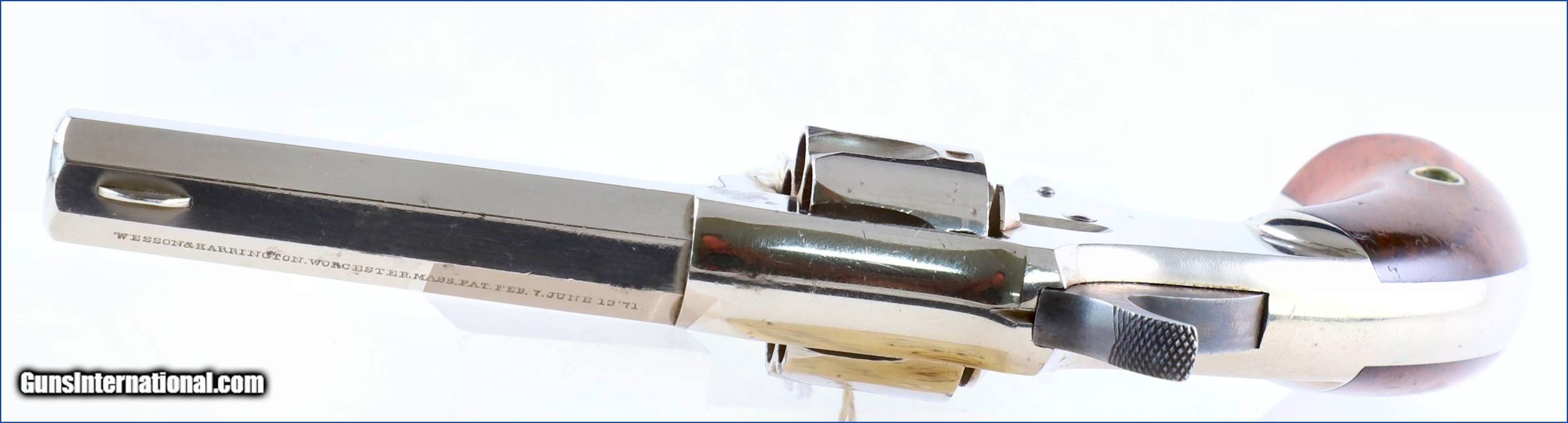 Description: Up for grabs is THIS beautiful 1870's Wesson and Harrington, manufactured in 1871 > .22 Caliber Rim-Fire, Small Frame, 2-1/2 inch barrel, 7- shot, Single Action spur trigger revolver with the "patented in 1871 extractor" on the cylinder pin. On the left side of breach is serial number 2966. Overall, it retains about 98% Strong Original Nickel finish. The Walnut grips are very good and fit nicely. The markings are excellent with crisp mechanics and a strong bright bore. The "Early Wesson & Harrington Company" became the Harrington & Richardson Company in 1871, and production ceased February 27, 2015. Harrington & Richardson made many Military Contributions during World War I, and a variety of military firearms during WW II. $590. Antique SOLD Antique: Yes |