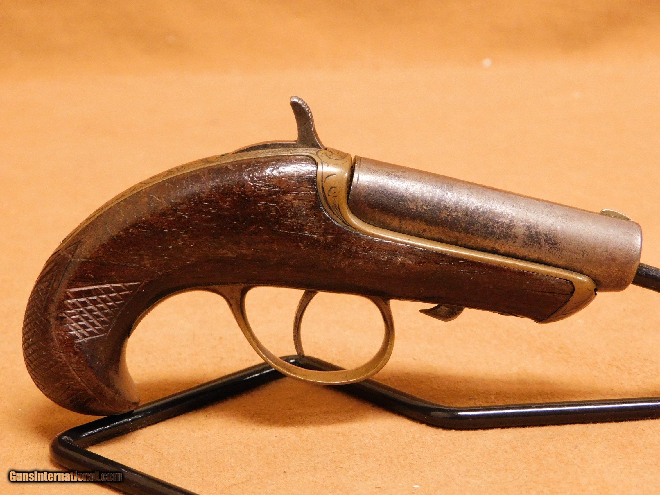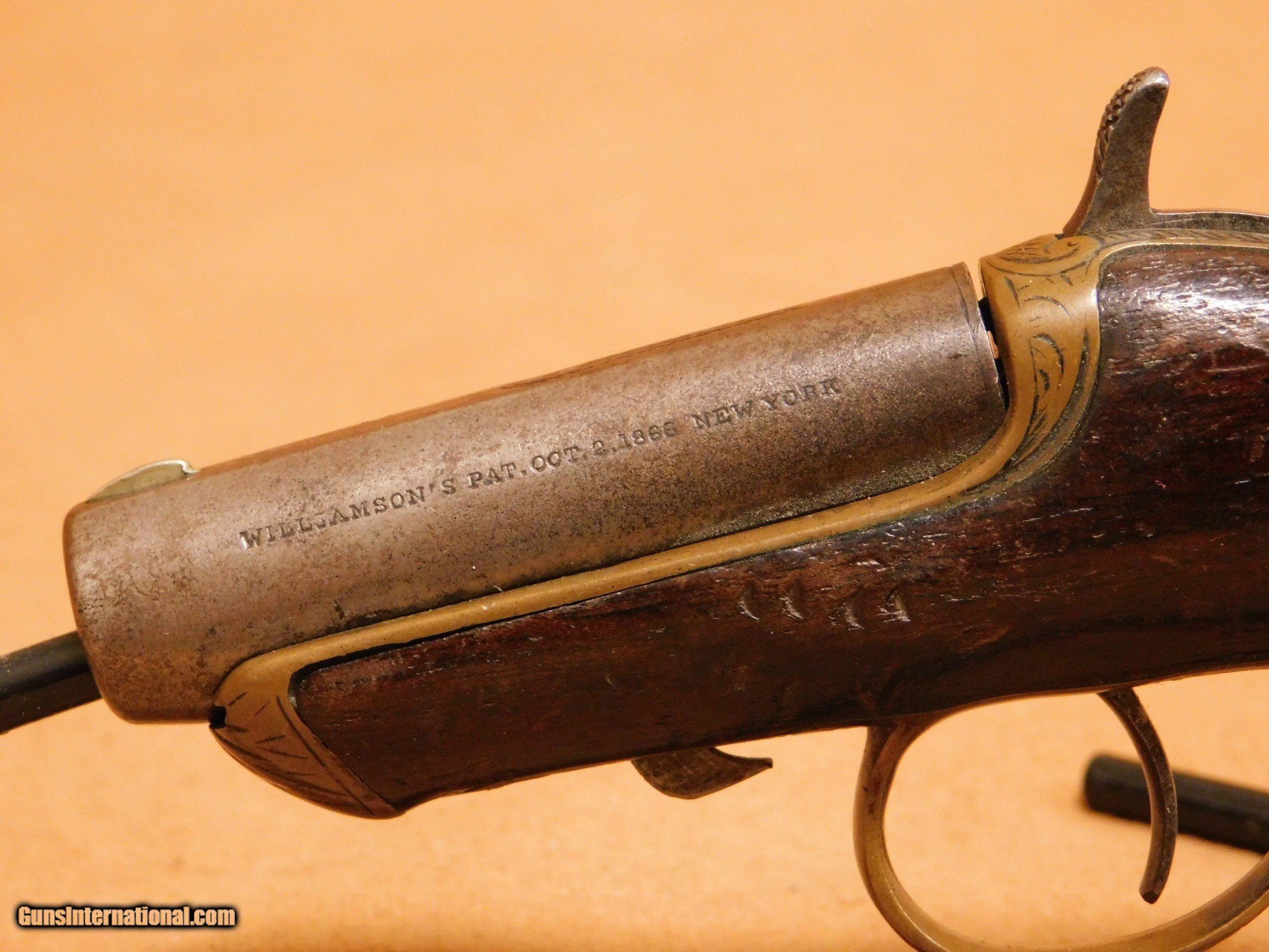 NFA Information Some items are regulated by the National Firearms Act (NFA). This includes, but is not limited to, short-barreled rifles, short-barreled shotguns, and suppressors. Please check with your local and state municipalities for any further regulatory requirements. It is the buyer’s responsibility to make sure they comply with all NFA rules and applicable laws. Such items MUST be transferred to a Class 3 FFL via a Form 3, and then transferred to you via a Form 4 from your local Class 3 dealer. The process of getting a Form 3 approved by the BATFE takes on average 6-8 weeks. Your patience is appreciated. SOLD Antique: Yes Manufacturer: Williamson Model: Derringer Serial Number: 8113 |