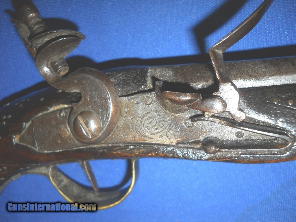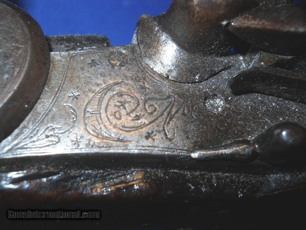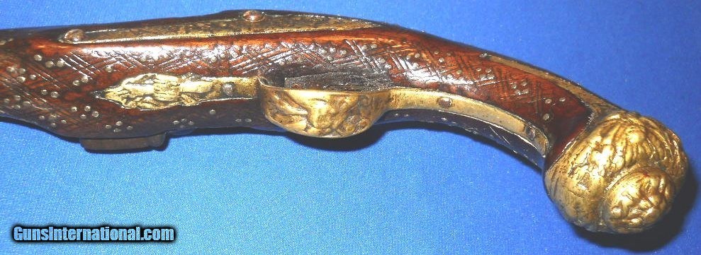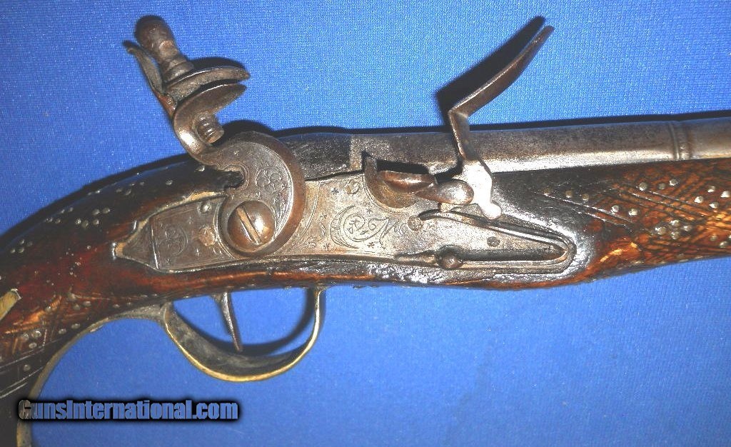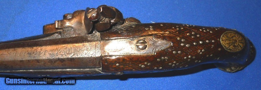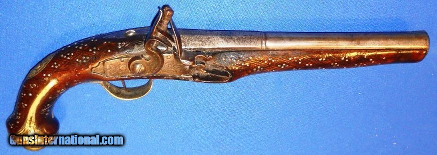 * Antique 1790s OTTOMAN EMPIRE FLINTLOCK COAT PISTOL SILVER STUDDED