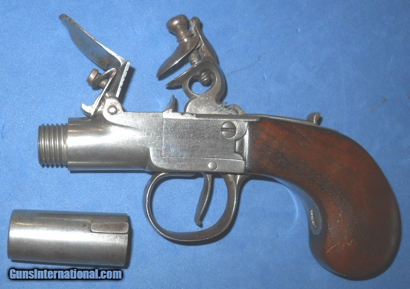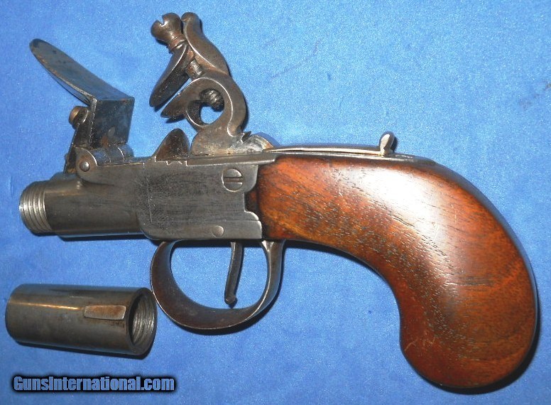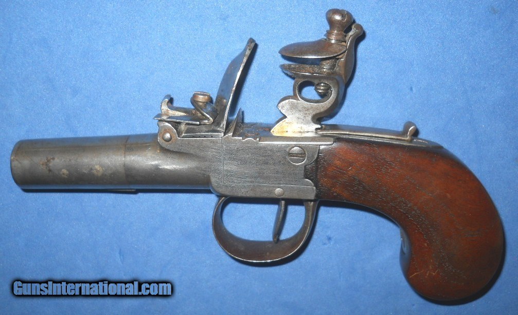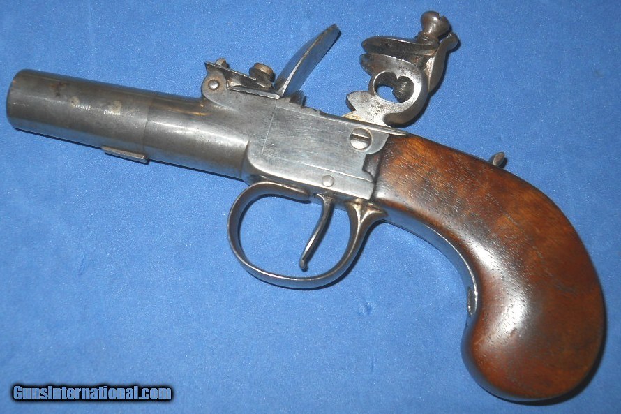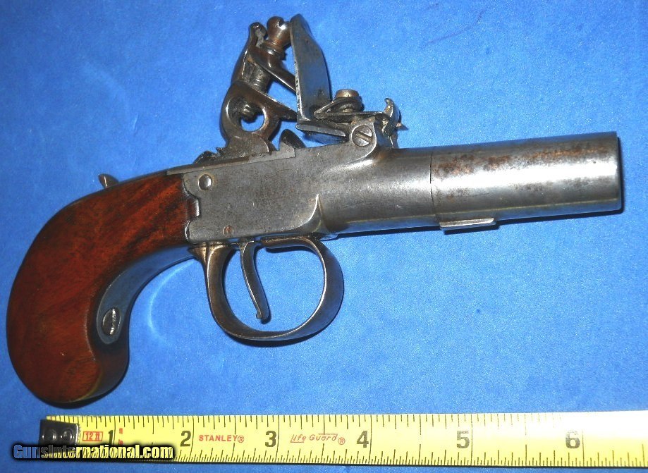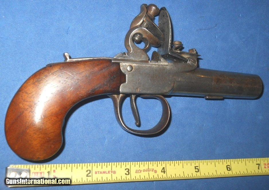 * Antique 18th CENTURY ENGLISH FLINTLOCK POCKET MUFF PISTOL .51 CAL.