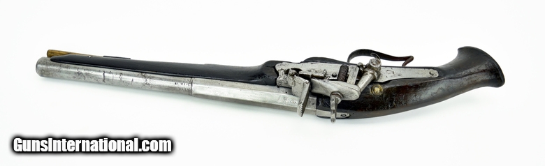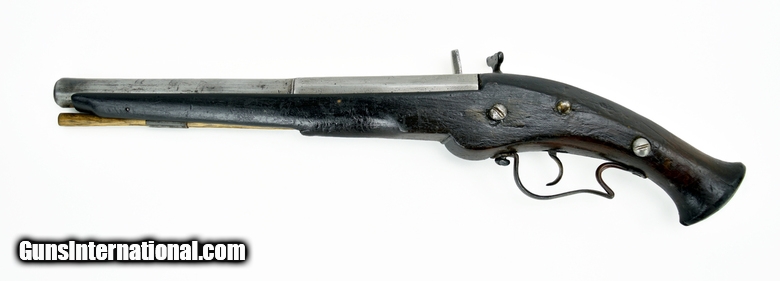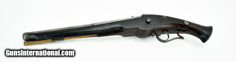 Description: Portugal Miguelet Made in Goa. Circa 1620. Barrel: 10.8” long. Caliber: 13mm, unmarked. Ramrod is a replacement. 7.8” of the fore stock restored. Lock: 5.9” long, unmarked. SOLD Antique: Yes |