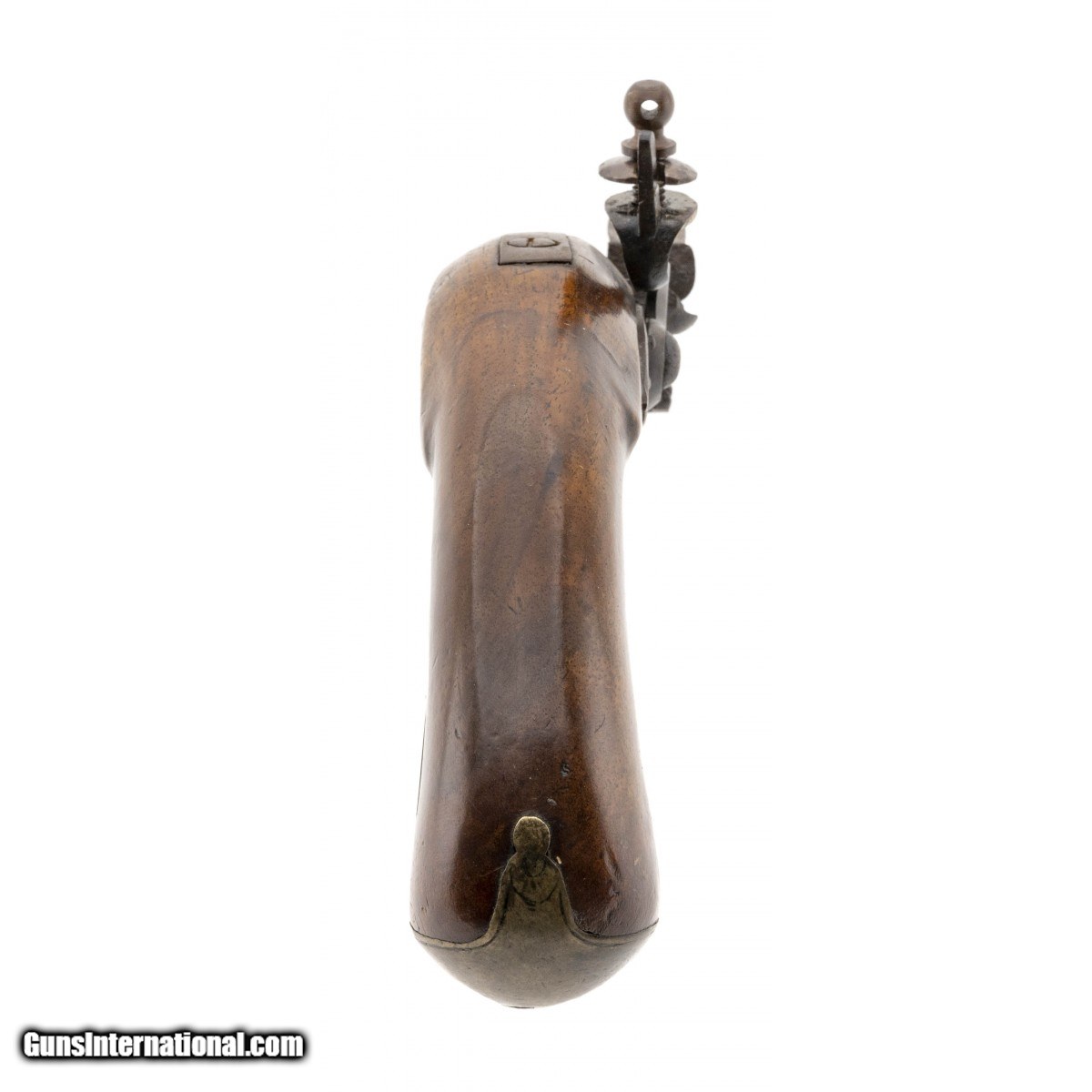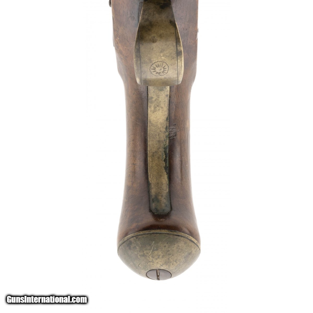 Description: " English Made Flintlock Pistol In The Style of a Cavalry or Militia Pistol by Redfern. Birmingham barrel proofs. These are very similar to Ketland Trade pistols associated with the American-Canadian Fur Trade. Very good untouched condition. Barrel length 8" and approximately 14" overall. Bore is approximately .69 caliber. Very nice example of a fur trade pistol. SOLD Antique: Yes |