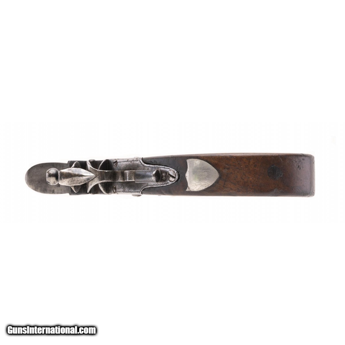 Description: " Left side of the box lock frame is marked in script ""Blair & Lea"". This very well made pistol is .45 caliber smoothbore. Barrel length is 6"" and overall length is 9.25"". Barrel has the London black powder proof and view mark. Cock has a sliding safety. The stock is very good with no chips or cracks and has a silver shield on the back for initials or crest. This pistol has eye appeal and is in very fine condition. SOLD Antique: Yes |