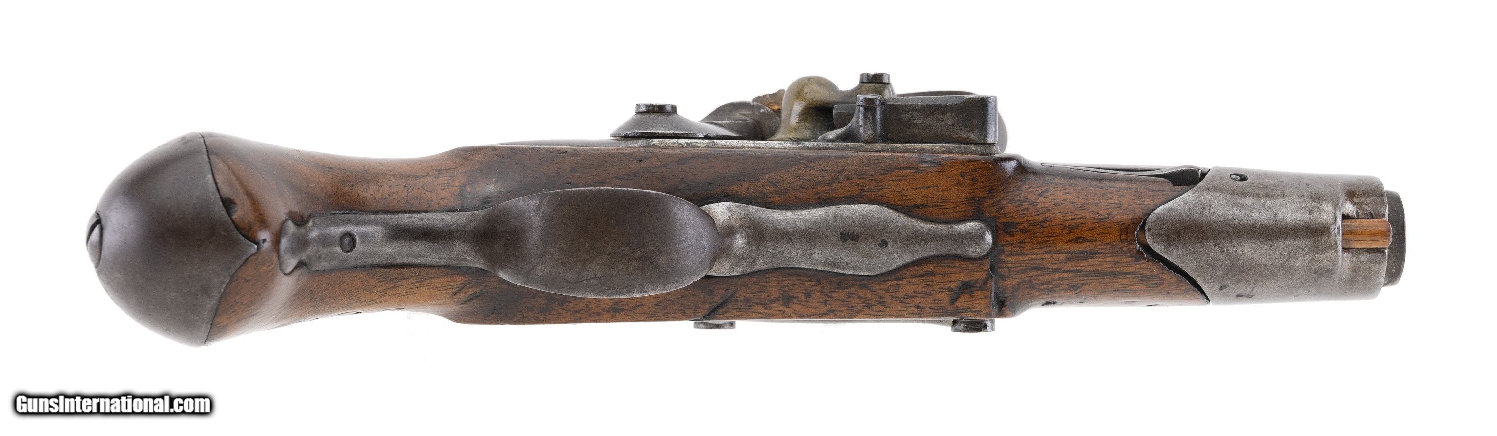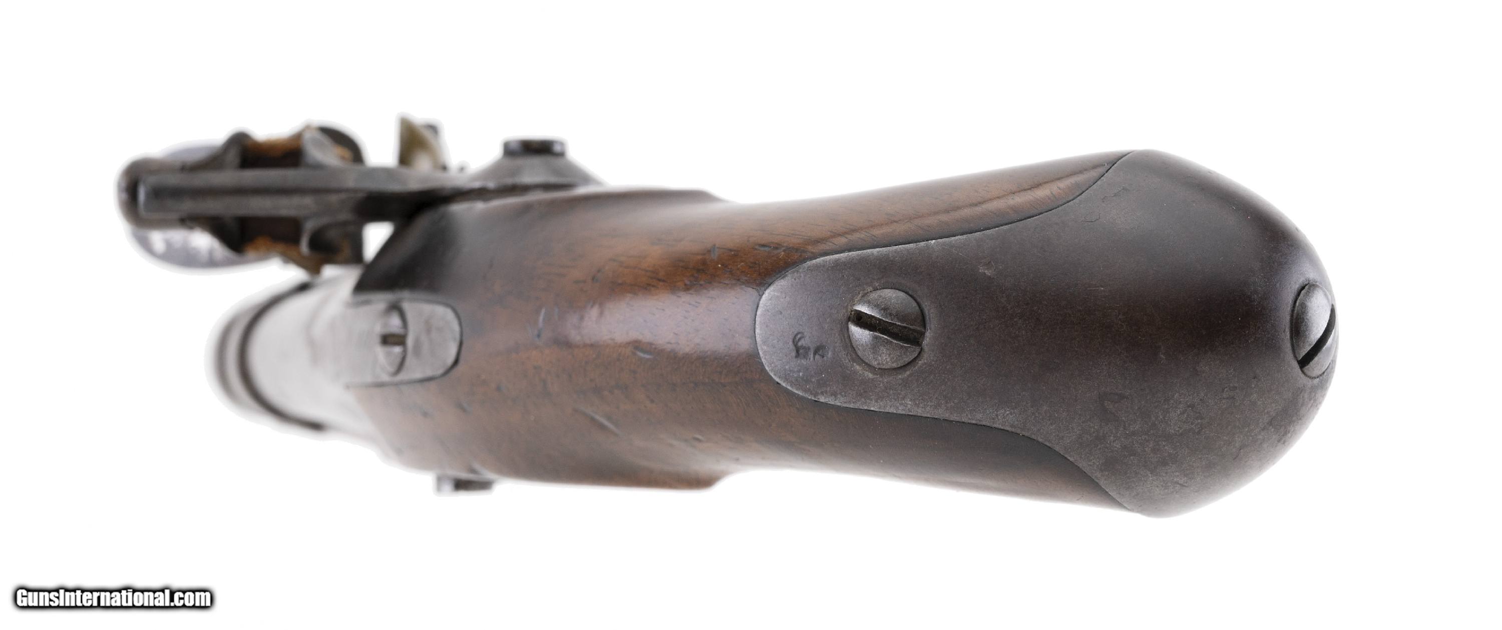 Description: "This nice French Gendarme Model an 9 flintlock pistol is dated 1817. The overall length is approx. 10"". The 5"" round 60 caliber barrel has a fine smooth bore with light roughness. All the metal parts are bright with light spotting and discoloration with the trigger guard and butt cap turned brown. The barrel has an S near the pan with an impressed script P to the rear and C.1817 on the left flat. The barrel tang is marked M, an, 9 (Model Year 9). The lock is marked Manuf. Roy. over de Maubeuge (Royal Manufactory of Maubeuge). There are various inspection and mating marks on other parts. The stock is good with sharp edges, no chips or cracks, medium wear and P.C 1817 and a small inspector's stamp on the left flat. The left grip is stamped with the police unit number, 134. It is equipped with a replacement ramrod. The action functions correctly. This is a very good example of French an 9 Gendarme flintlock pistol. (DALLAS LOCATION) Antique: Yes Price: $1,975.00 Contact Seller |