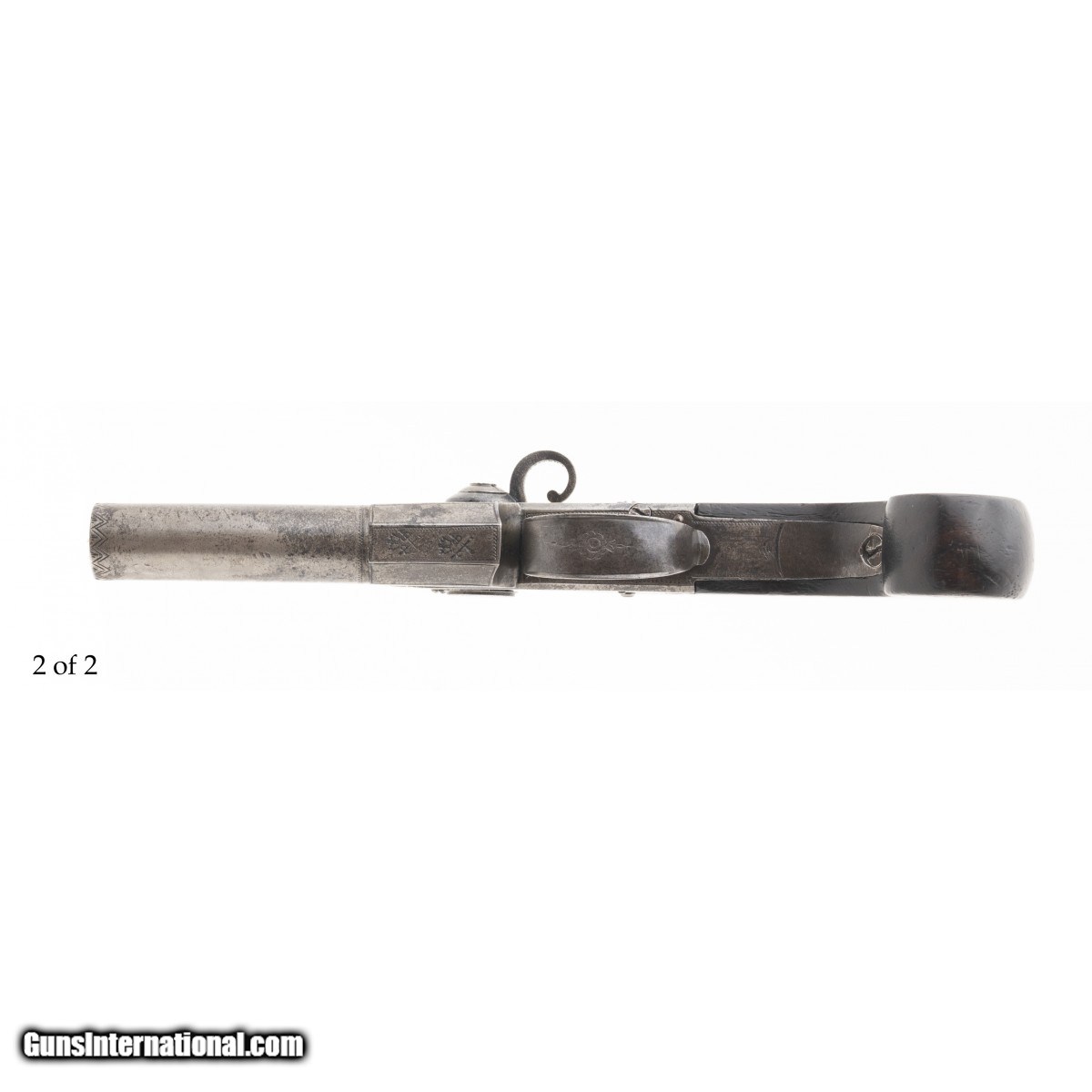 Description: " Manufactured by Wheeler. Both pistols have Birmingham proofs and sliding safeties. Frames are marked ""Wheeler"" on left side and has a panoply of arms, flags, lances, canon and drum. Both pistols are in very good condition and the actions work perfectly including the frizzens. Bores are approximately .45 caliber. An attractive pair. SOLD Antique: Yes |