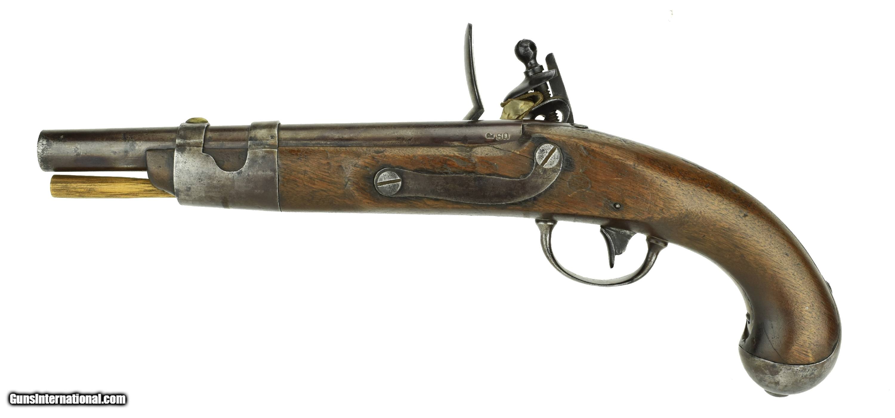 Description: "U.S. 1816 Flintlock pistol by S. North. Gun has seen honest use and is in very good condition. Stock has a visible cartouche and has no chips, cracks or repairs. Barrel markings are excellent. Action works perfectly. Ramrod is an excellent replacement. This is a fine example of an 1816 North. Antique: Yes Price: $2,750.00 Contact Seller |