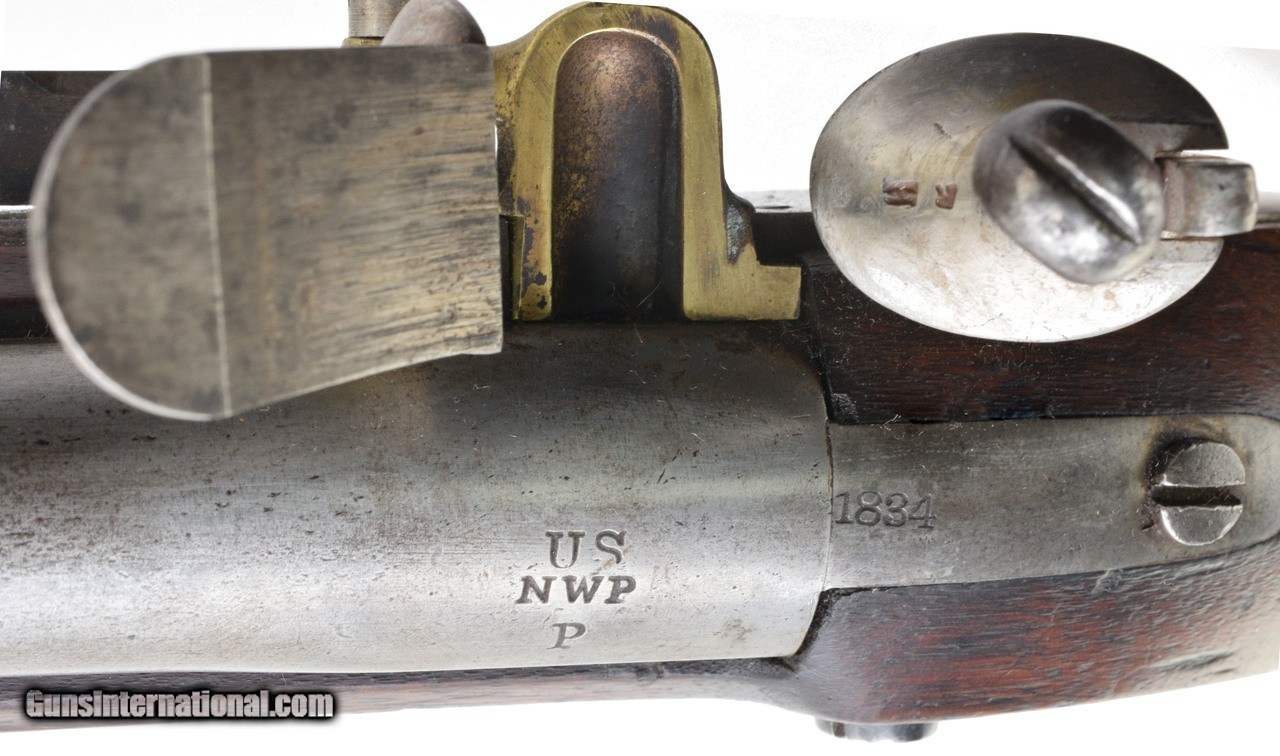 Description: "NSN, circa 1833, .69 caliber, 42"" round smooth bore barrel. U.S. Model 1816 Flintlock Musket “National Armory Bright". Harpers Ferry Arsenal. Dated 1833 on tail of lock and 1834 on breech, plus Tang. This is a Type III made from 1831-1844. This musket is in original flint not a conversion! Rare to find this third type in original flint. Cartouches on stock are perfect. There are some light dings and dents in the stock. No abuse. The numbers PX40ARA are stamped on the lower Tang off the stock. (DALLAS LOCATION) Antique: Yes Price: $5,000.00 Contact Seller |