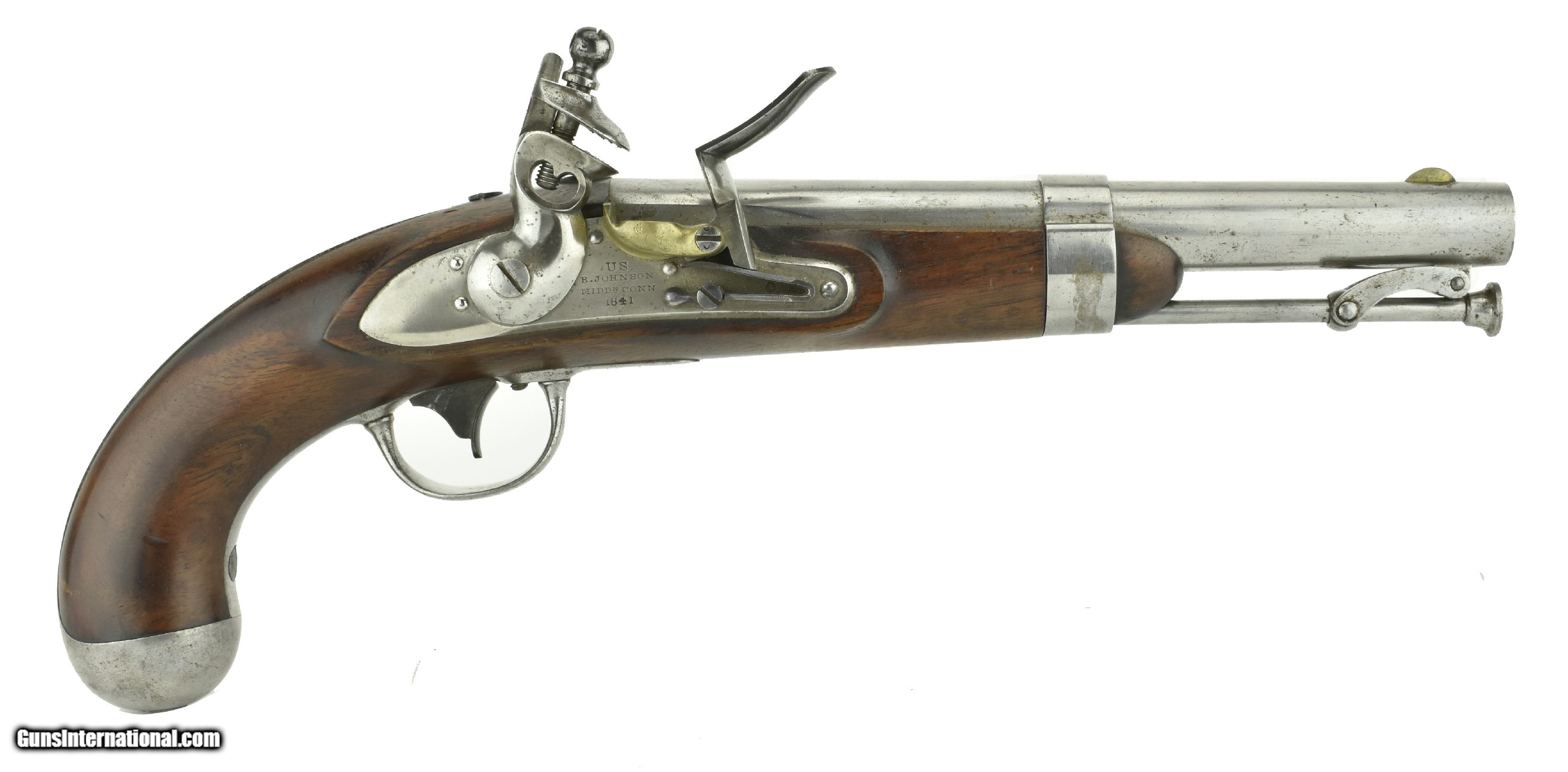 Description: "U.S Model 1836 Flintlock pistol. 1836 Flintlock by R. Johnson. Lock dated 1841. Stock cartouches are perfect. Action works perfectly. Aside from some really minor nicks, this pistol is in near new overall condition. This 1836 model is considered by most U.S Martial collectors as the most eye appealing of the U.S martial pistols. AUSTIN LOCATION. Antique: Yes Price: $3,750.00 Contact Seller |