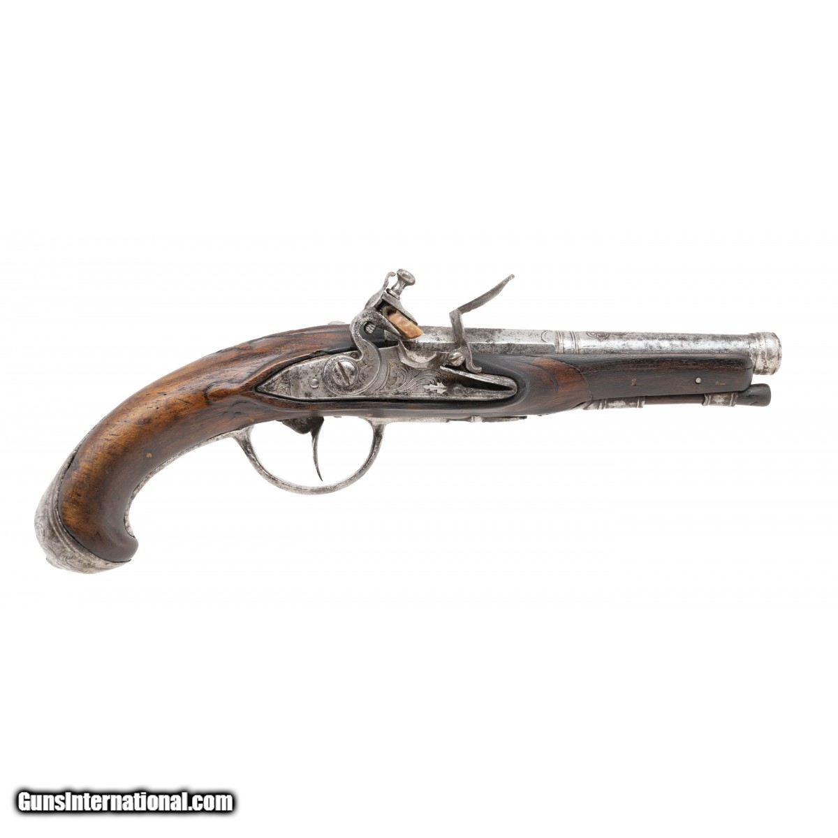 Description: " Circa 1800-1820. Action works properly. Metal has a gray patina with some surface etching. Stock has a repair by ramrod. Lock, trigger guard and butt are engraved with a scroll motif. Reasonably priced. SOLD Antique: Yes |