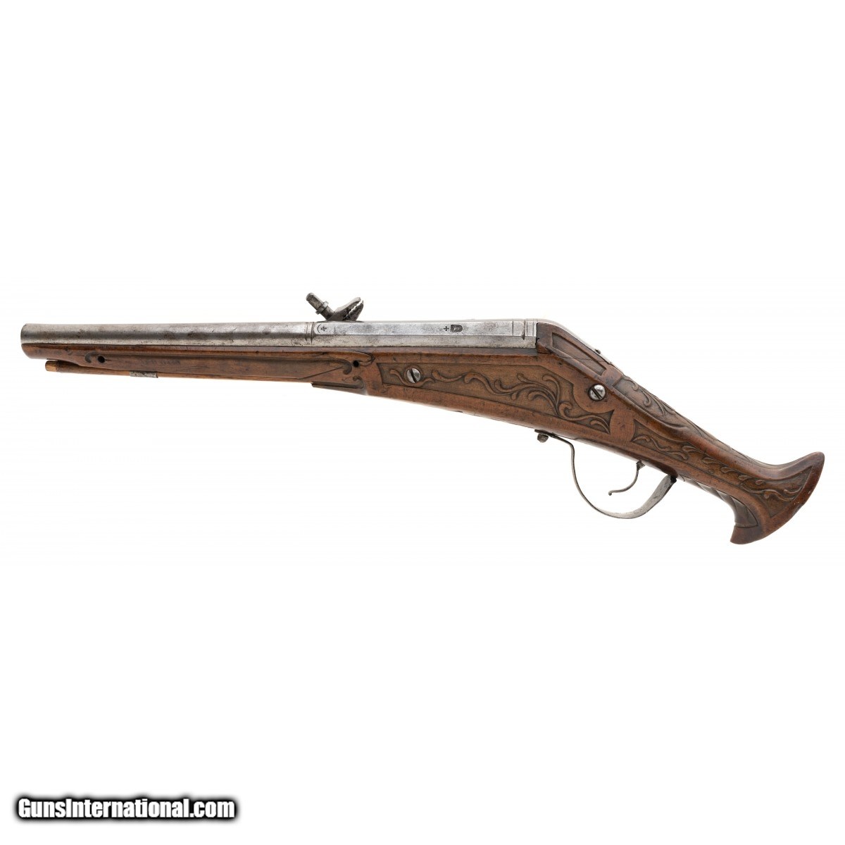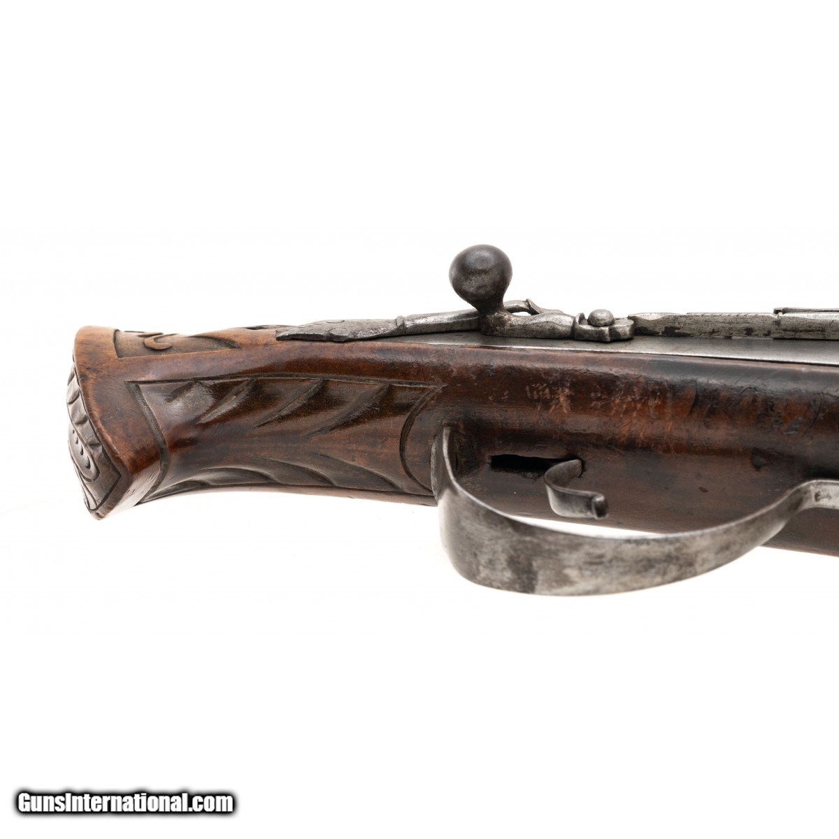 Description: "NSN. Made circa 1570. 58 caliber with a 12 ½" barrel. Very fine condition with especially for the age. Metal has a light gray patina. All markings are nice and sharp. The stock is nicely relief carved and is in very fine condition. SOLD Antique: Yes |