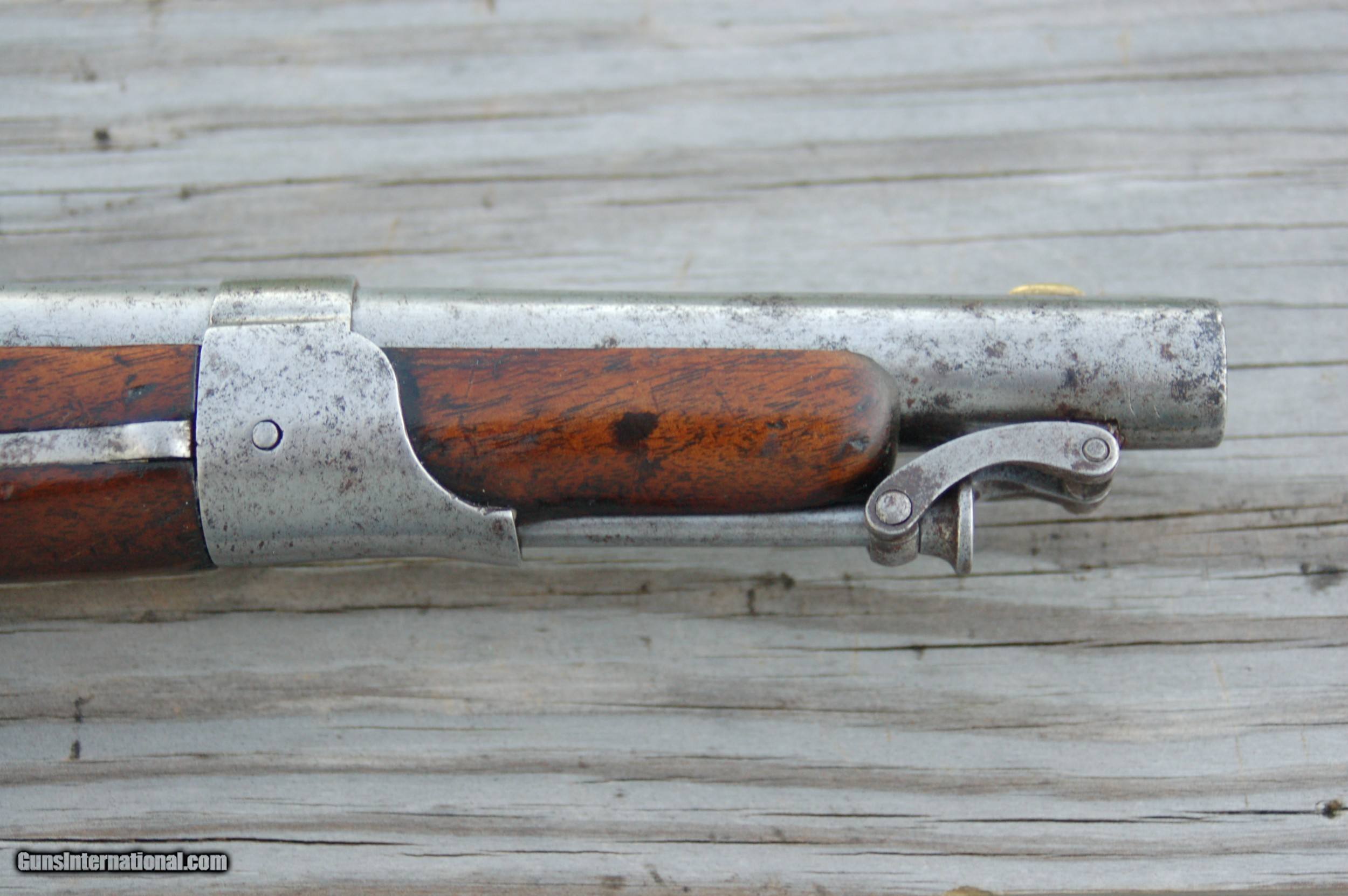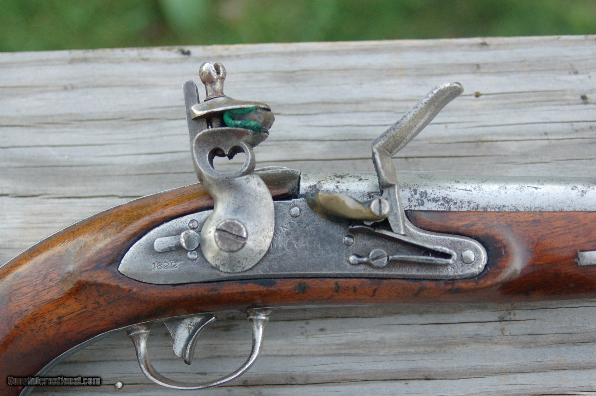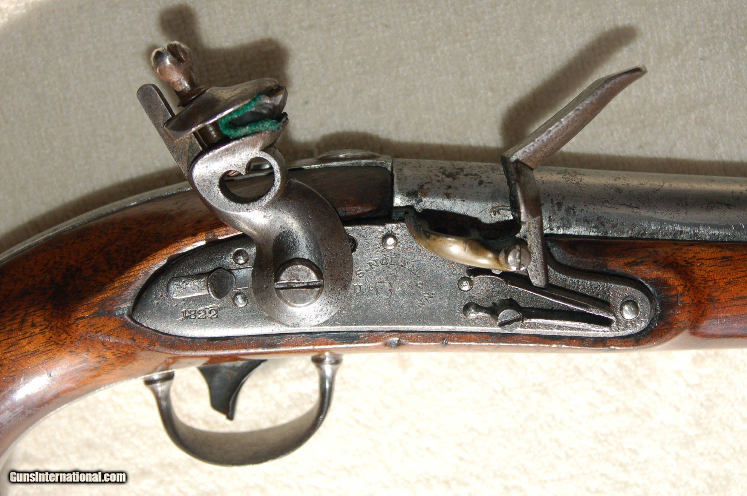 Description: Least expensive 1819 Simeon North flintlock pistol for sale on line, in the best condition, with a solid stock, no reconditioning, etc. Just a fine example of an American-made flintlock pistol. For a 200-year-old pistol it's being sold as is. Let the photographs and the price be your guide. A piece of history in your hand. Shipping and insurance will be at cost. SOLD Antique: Yes Handgun Caliber: .54 Manufacturer: Simeon North Model: 1822 Serial Number: N/A Condition: Good Metal Condition: Good Wood Condition: Good Bore Condition: Good |