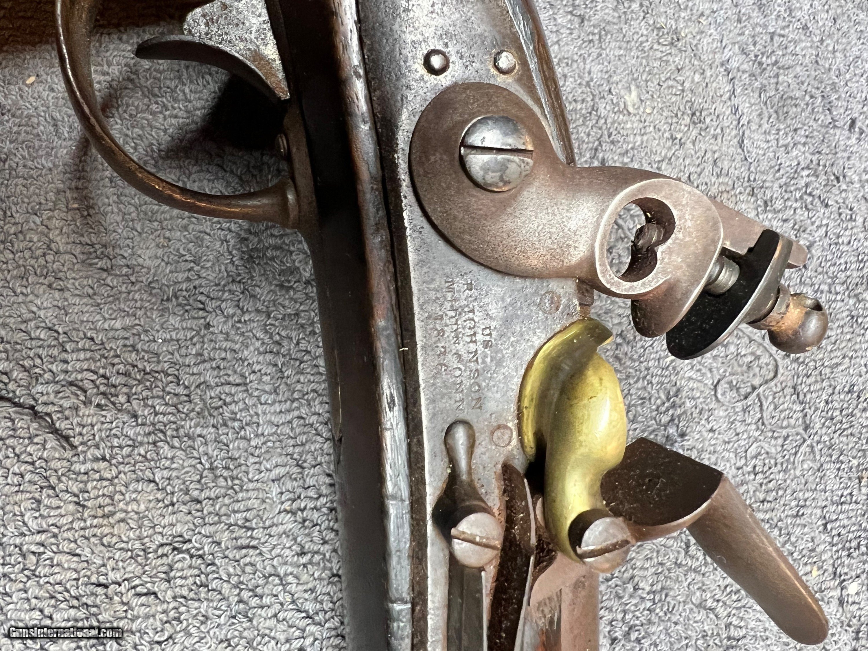 Description: Original 1836 US R Johnson flintlock pistol, good condition, lock and trigger function. Has Not been test fired SOLD Antique: Yes |