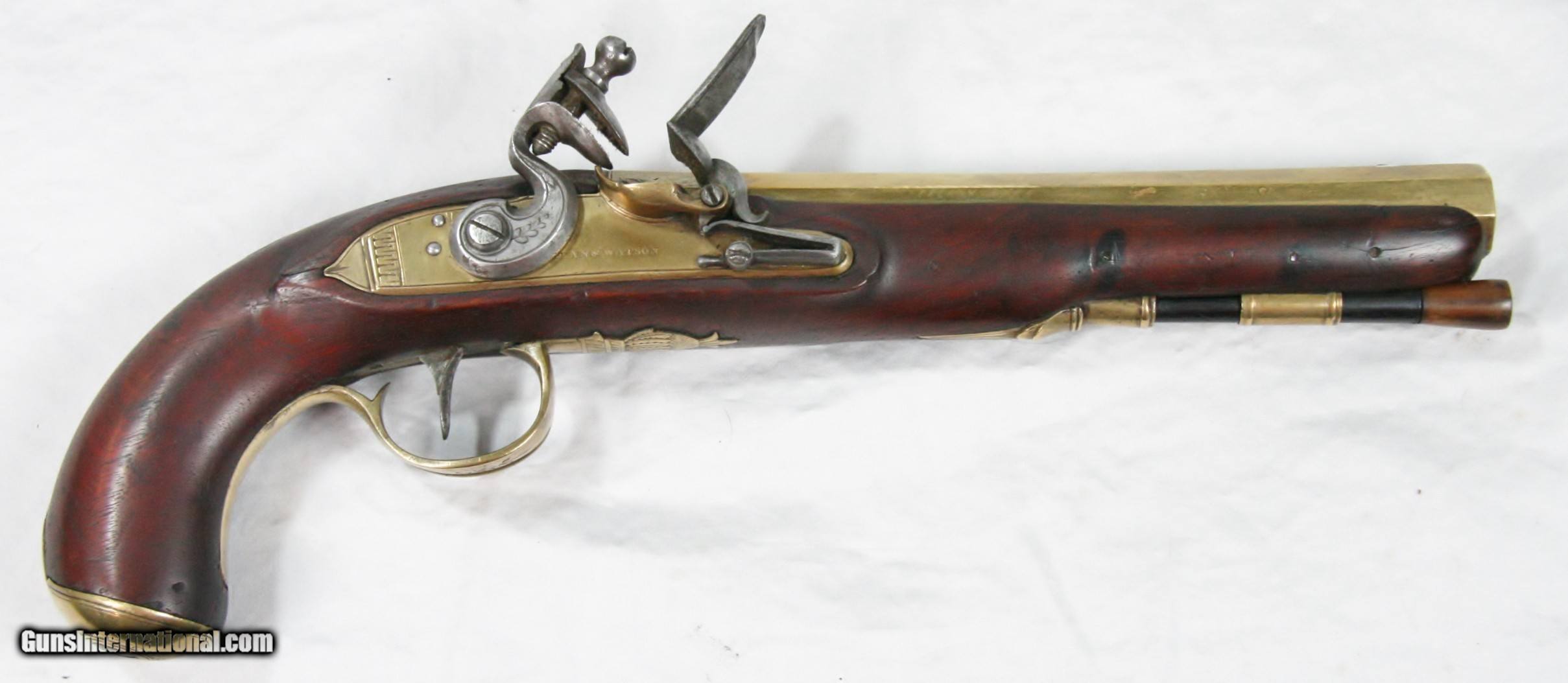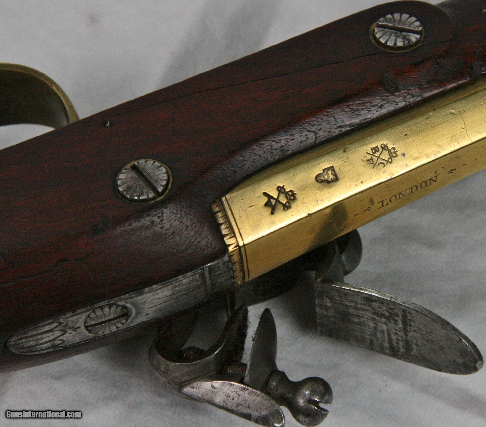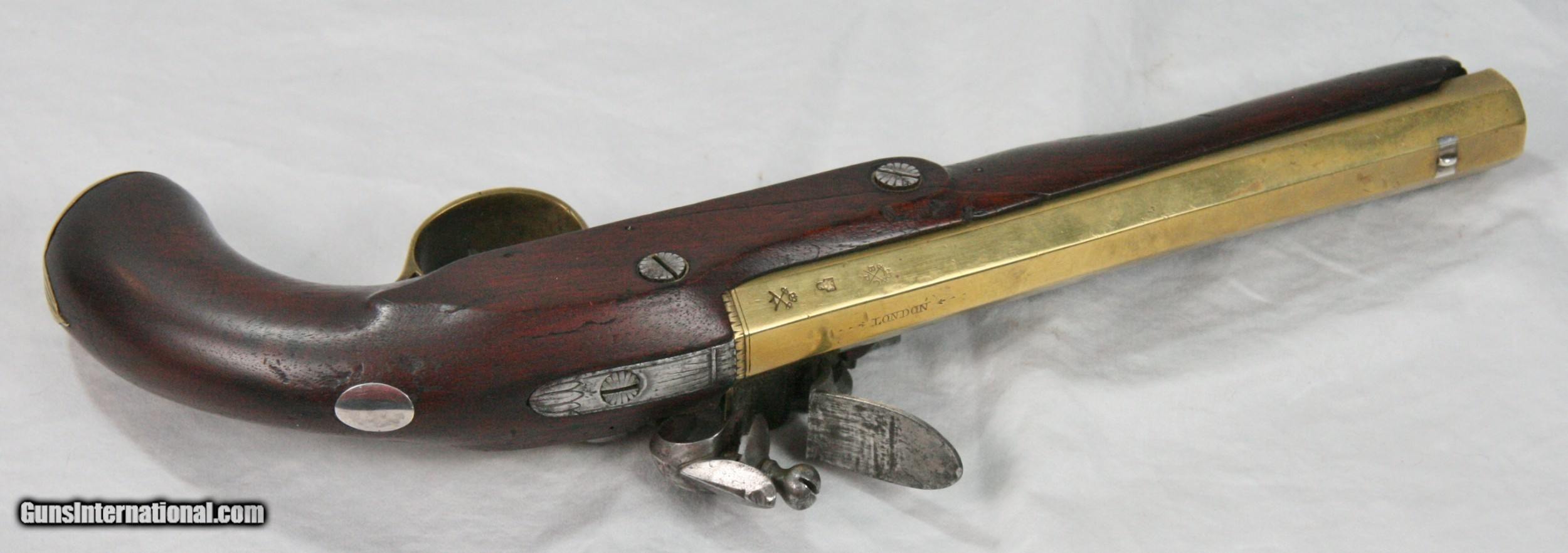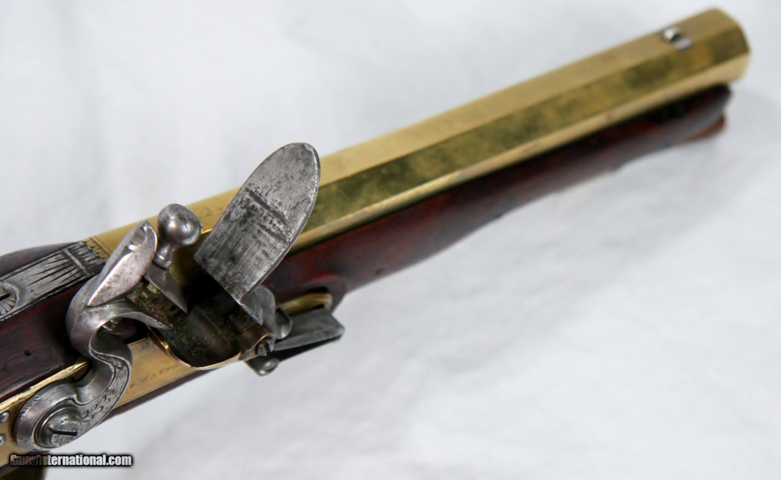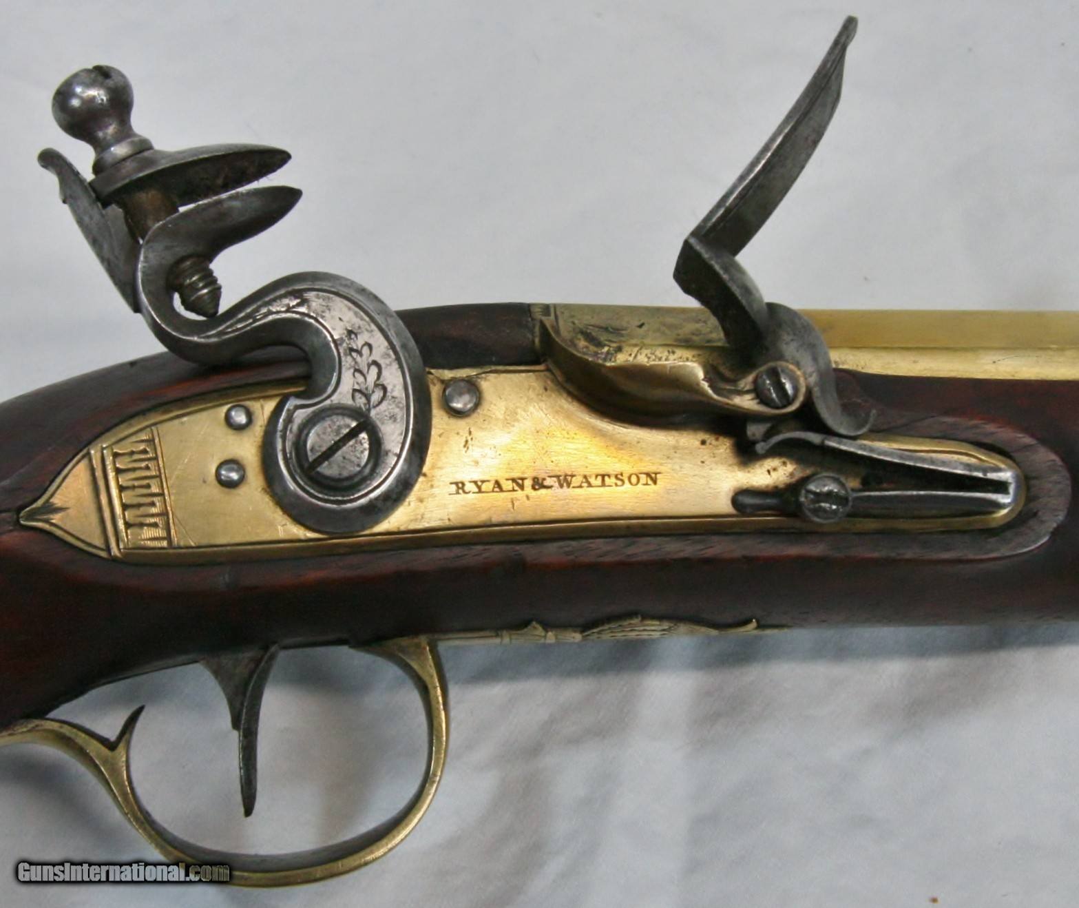 18th C. Flint Lock Pistol, London, Ryan & Watson, Brass