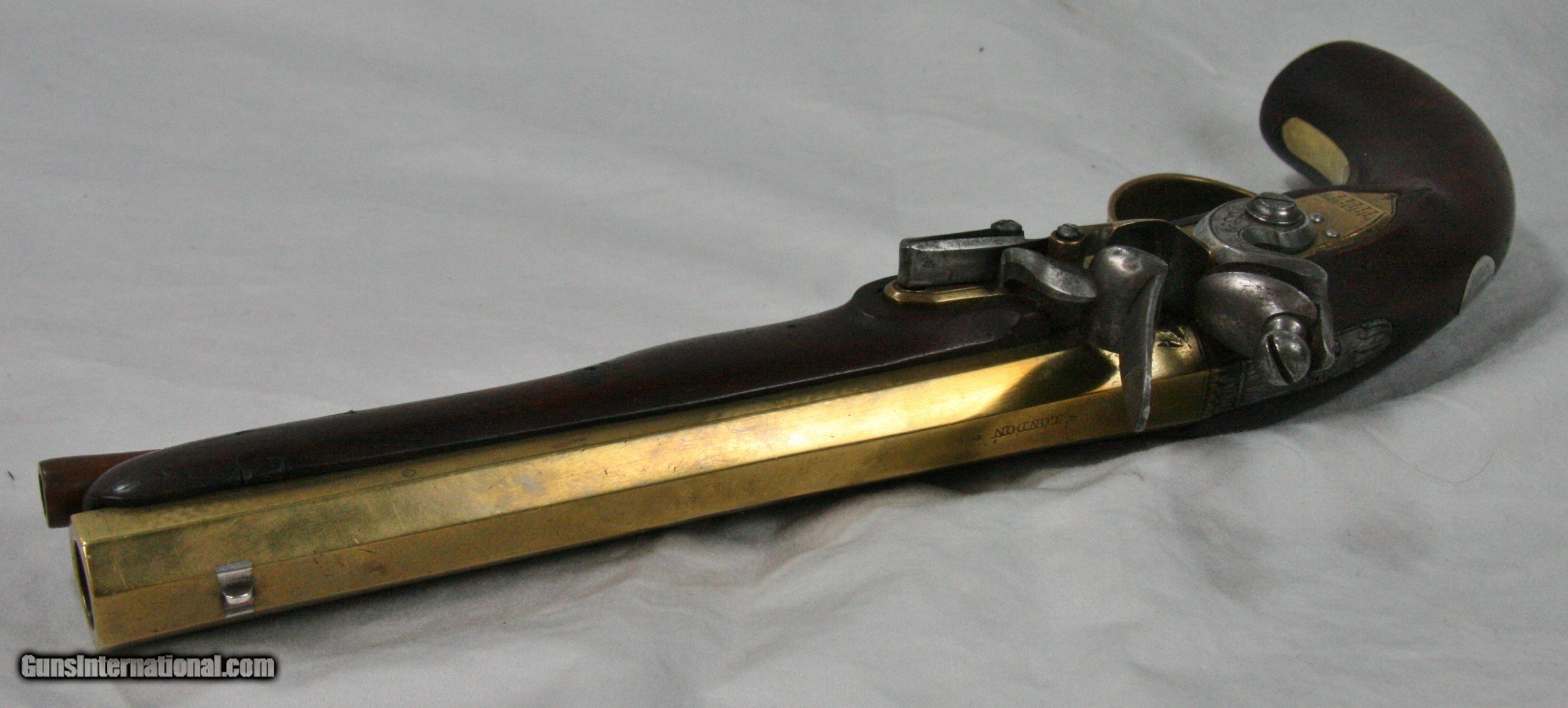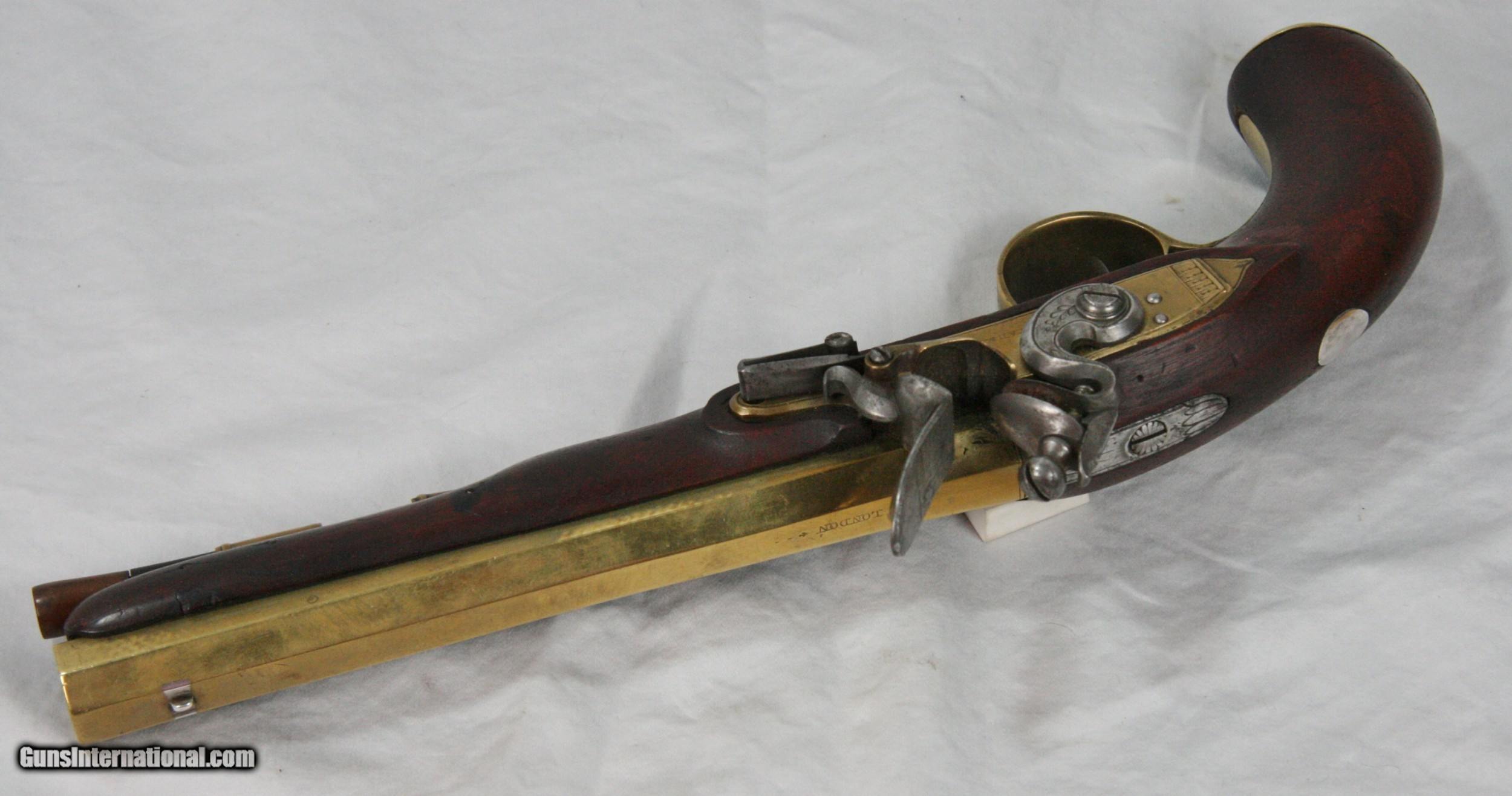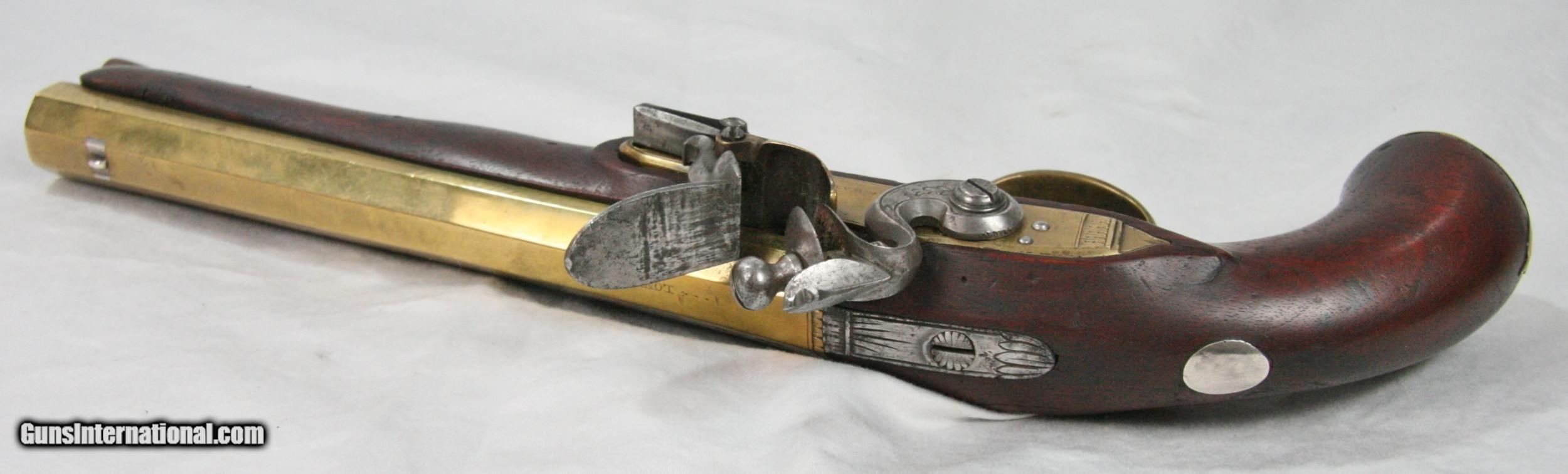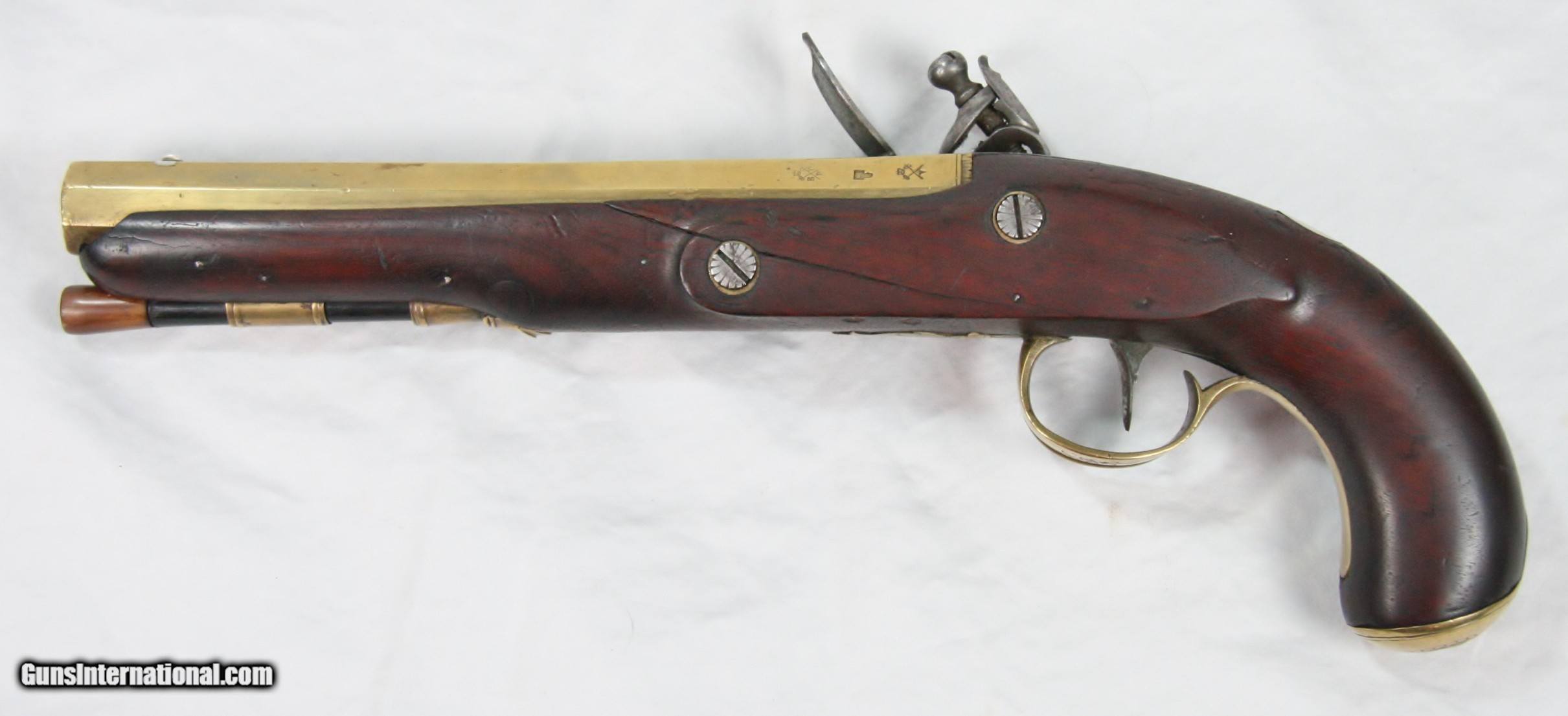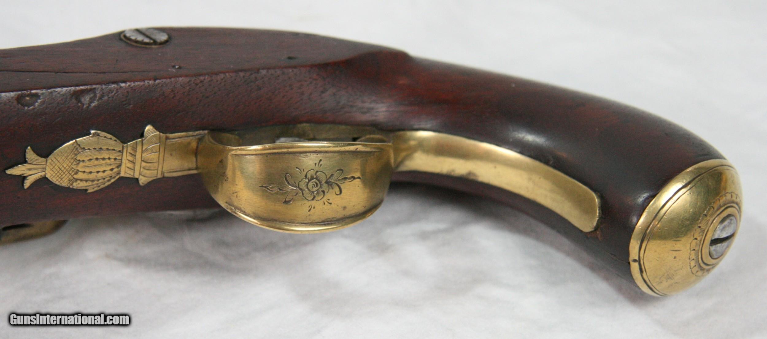 18th C. Flint Lock Pistol, London, Ryan & Watson, Brass