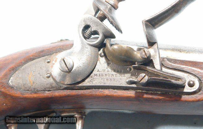 A. WATERS U.S. MODEL 1836 FLINTLOCK PISTOL DATED 1837.