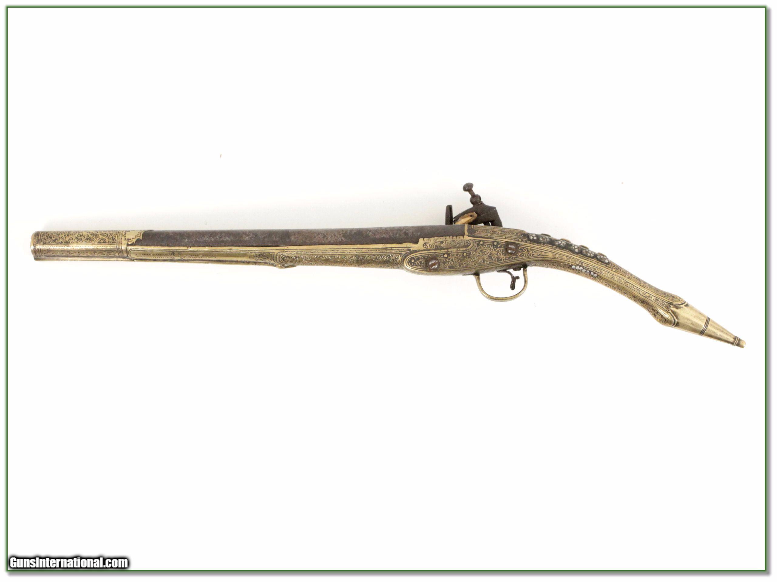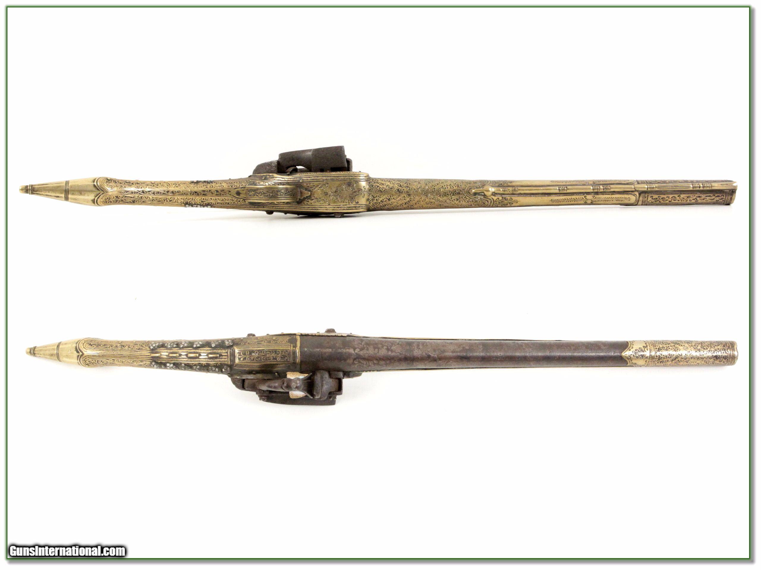 Description: This is a fine example of a 19th century Albanian Rat Tail flintlock. It is extensively decorated with 13in barrel. It is an antique and doesn’t require shipping to a FFL. It was purchase in 2016 for $1800 from Collectors Firearms and is being sold by the estate of the late owner. It will make a fine addition to your collection! I am selling this one on consignment and as such, lay-a-way can’t be used. It does of course have the standard 3-day inspection. Shipping and insurance is $29 or $19 more if you want it shipped in a new Plano hard case. Please email me with any questions or larger pictures. (I now consign quality firearms only 10%! Let me know if you have any you would like to sell!) 17-0312 Payment: Payment is by Money Order, Cashiers Check or Personal Check. I can now also accept MasterCard and Visa with a 3% convenience fee. PayPal can be used for some items but never firearms. Please let us know if you would like to pay via PayPal. Shipping: The shipping charge will be listed in each description. It is $39 for most long guns and $29 for most handguns. Some heavy guns or those insured for over $2000 will be higher. Shipments to Alaska and Hawaii are higher because air shipment is required. Most firearms are shipped on Tuesday and Thursday and usually in 5 days of receipt of payment. We package all shipments carefully and insure them. For long guns you can purchase a new Plano case for $19. They now cost us $22 when buying 100 at a time. Optics are shipped Priority Mail and most other non-firearm shipments are shipped First Class. Returns: Our return policy is simple. If for any reason you are not pleased with your purchase, you may return your item for a full refund of purchase price. Ammunition cannot be returned. It is important to us that you are happy. Guns cannot be fired or dissembled before returning them and they must be returned in the same condition as received. Notification of a return must occur with-in 3 days of receipt at your dealer. Shipping, convenience and dealer fees are not refundable and are the responsibility of the buyer. Lay-a-way: If needed, we offer a 60 day lay-a-way option on most firearms. It is 1/3 now, 1/3 in 30 days and 1/3 in 60 days. Lay-a-way firearm sales are final and if not completed the first payment cannot be returned. Consigning your firearms with Shooting Investments: We will help you get top dollar for your firearms. While most local guns shops charge 20% or more, our fee is only 10% with a minimum of $75. At your local gun shop it might take months to sell. Selling on-line provides instant access to thousands of interested buyers. You won’t find any other on-line dealer willing to sell your firearms for only 10% or listing every gun on 3 separate s. Selling through an House typically costs the seller 15% and the buyer an addition 15% (so 30%) and you have to wait several months to sell and longer to receive funds. If properly priced, we will sell your firearms in a few weeks. Send us an email or give us a call and we’ll explain how easy it is for you to get top dollar. Trading: Trading for use is really just buying your gun to re-sell. If you have a gun you want to trade, please email a picture and we will let you know what we can give or it. You will always get more if we sell it for you on consignment. Help for California Buyers: We are happy to ship to California. It is the buyer’s responsibility to make sure any item you buy is legal in your state. We are also happy to help with your purchase of a firearm from someone other than us. If you see a gun you would like to buy but the seller can’t or won’t ship to California they can ship to use and we’ll then ship it to your California dealer. The cost for this service is only $30 + shipping. Let us know if we can help! SOLD Antique: Yes |