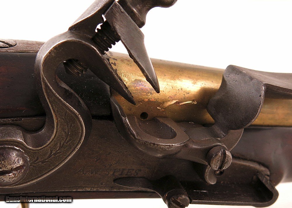 Description: Antique AW Spies London New York Brass Flintlock Pistol. Very nice condition. Frizzen pan cover is a little loose. See photos for details. SOLD Antique: Yes |