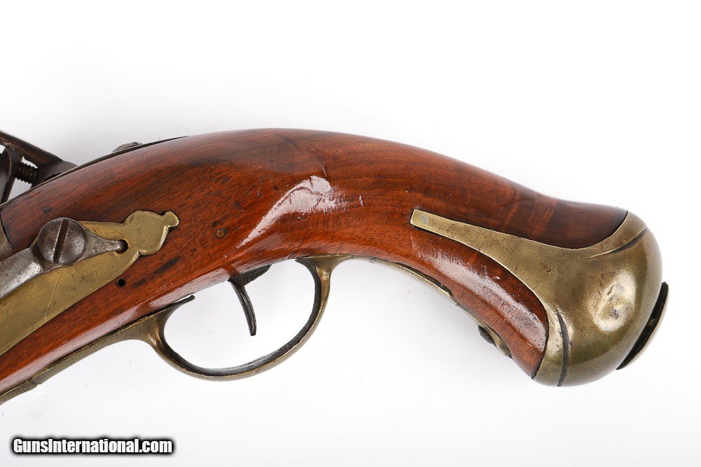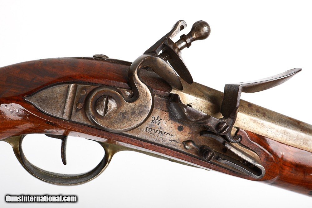 Antique French Dragoon Martial Flintlock Pistol by Jourjon, with Belt Hook