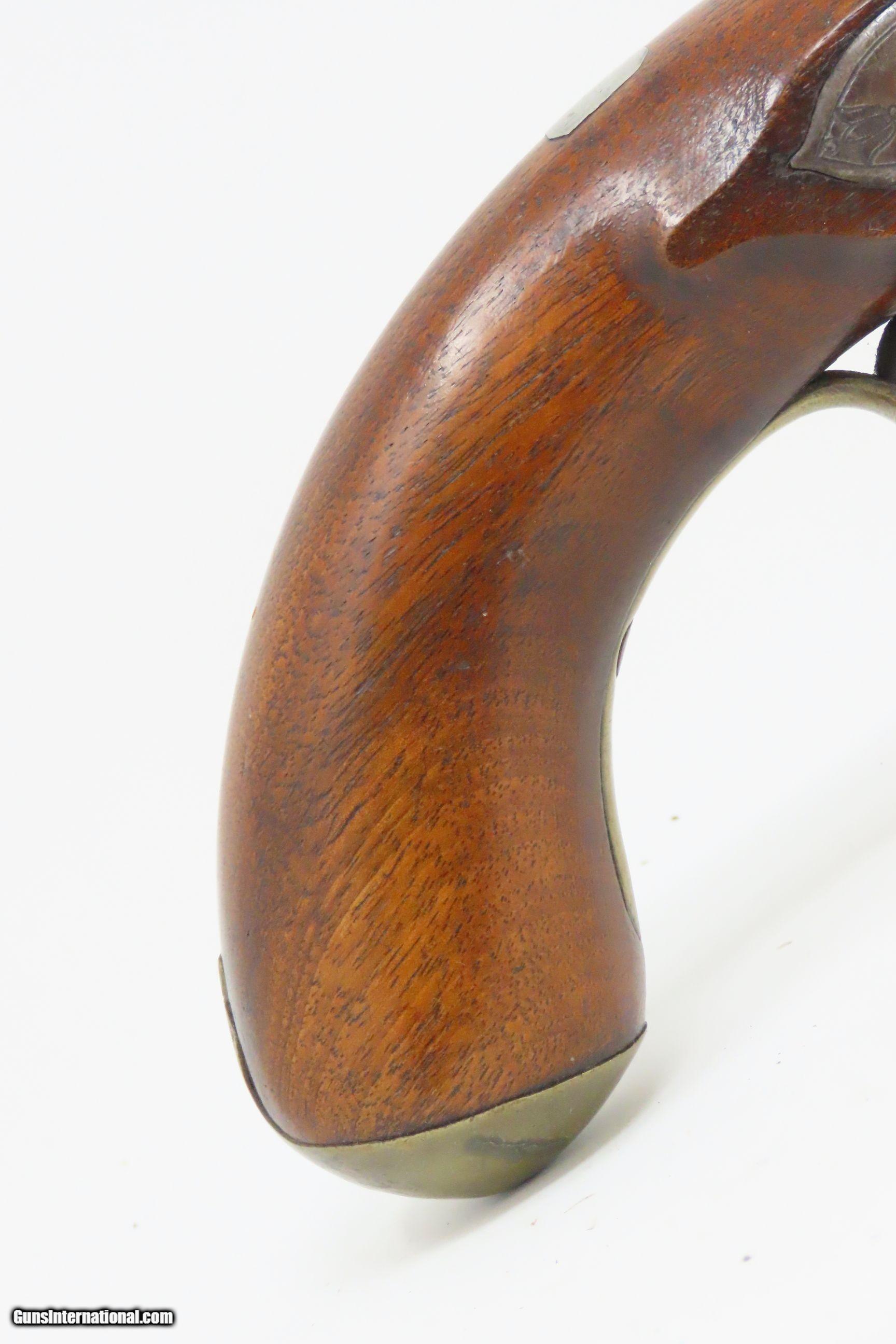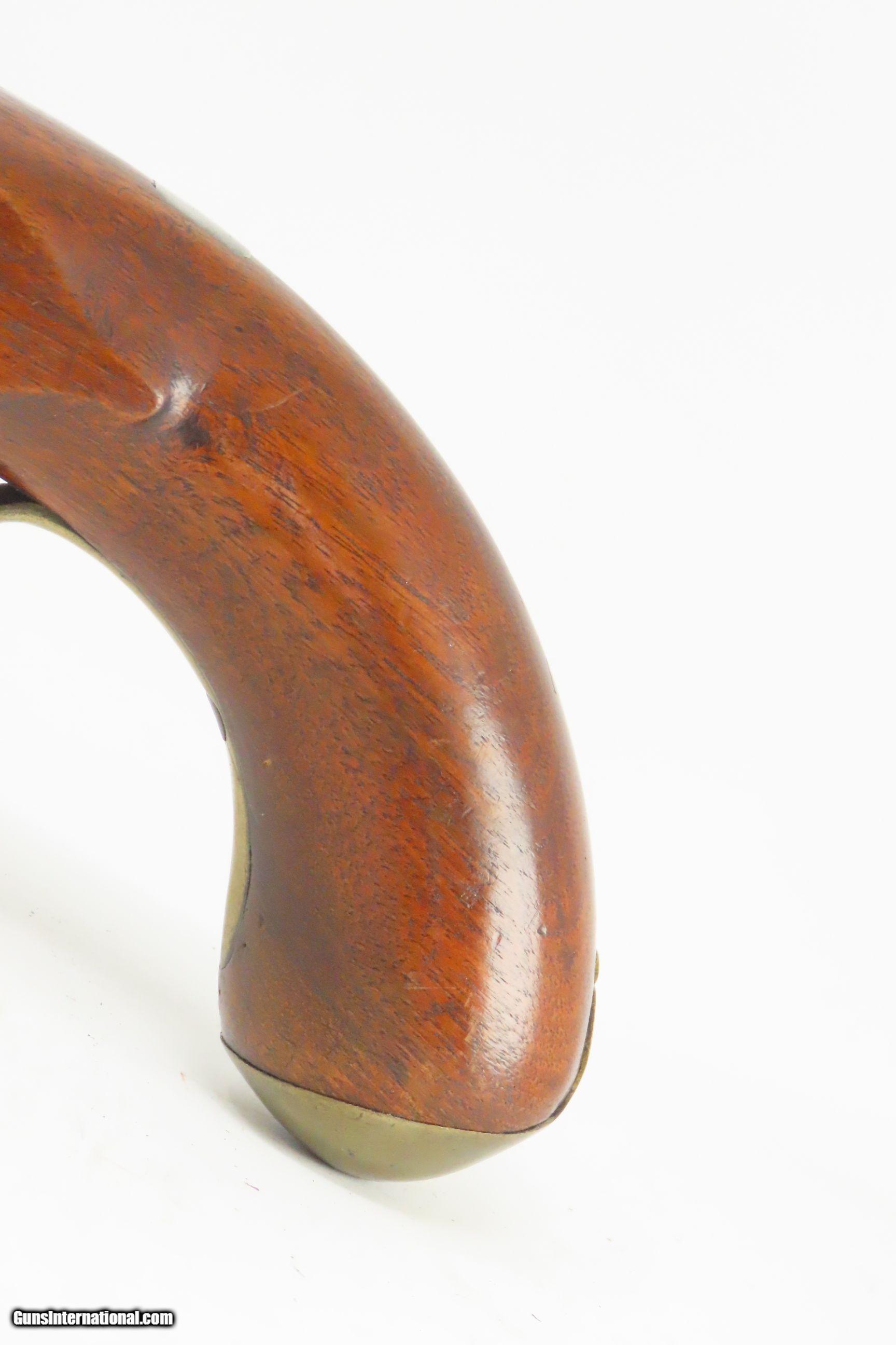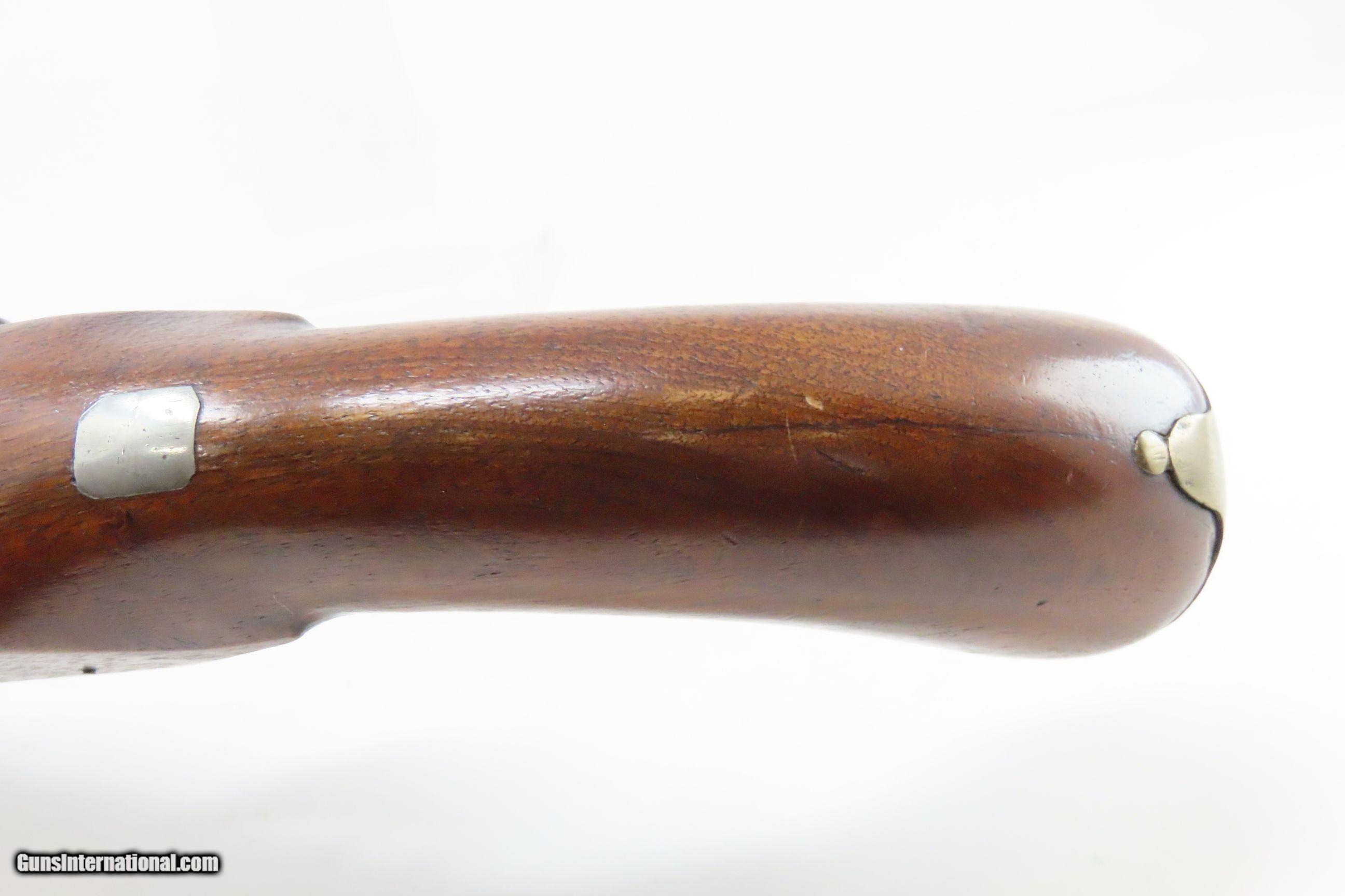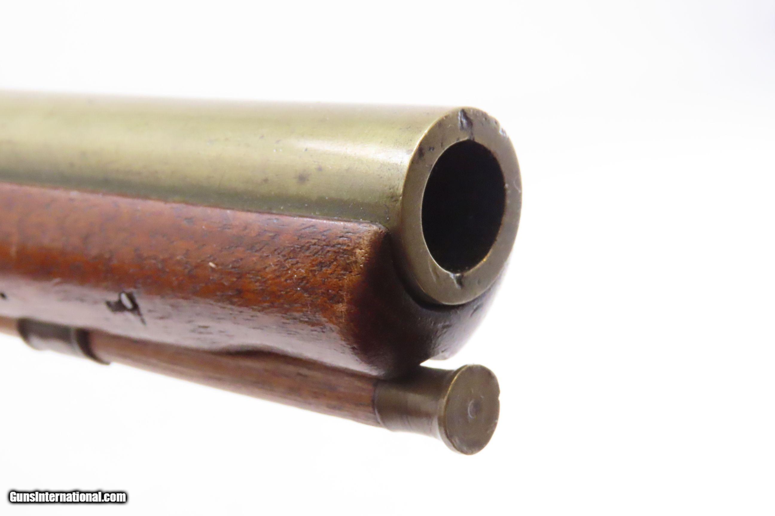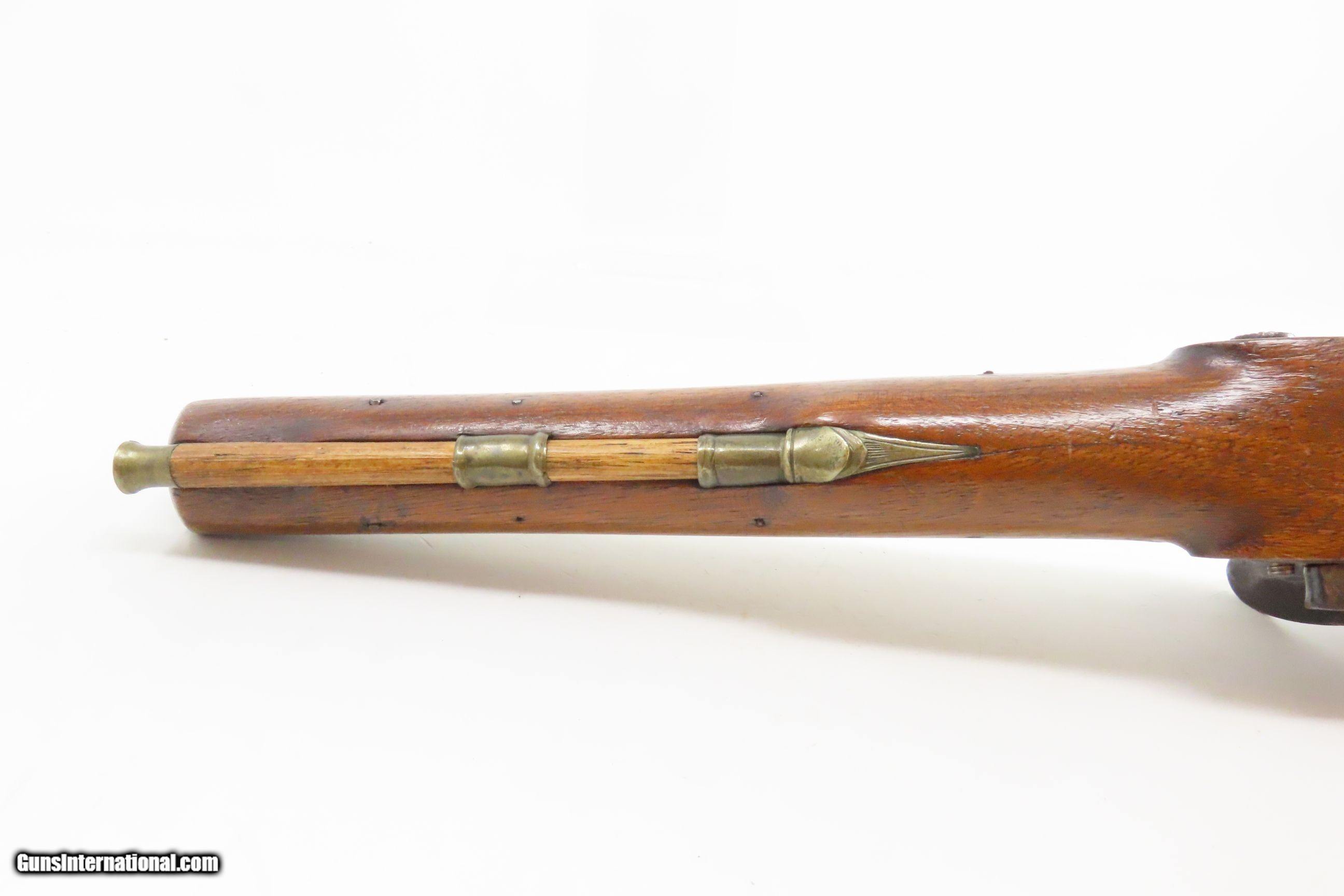 Description: Antique SHARPE of LONDON Brass Barrel .55 Cal Flintlock INDIAN TRADE Pistol British with Birmingham Proofs & Lightly Engraved Here we present an antique Sharpe Flintlock Trade Pistol, made circa 1815 in Birmingham, England. This London Gun maker "SHARPE" was in business from around 1800 until 1840. He initially contracted with the Hudson Bay Company to supply these good quality Flintlock pistols that were traded to the Indigenous Indians in exchange for fur pelts that were eagerly desired in the European Fashion Trade. The Hudson Bay company was founded in May of 1670 primarily serving in the fur trading industry in its early years and has continued for 350 years to present day in London, England. This pistol is a size typically worn on the belt. The overall condition is very good. Original finish. The action is excellent and will spark. The bore is smooth with a patina. There is a short, immovable split behind the ramrod tube; otherwise solid. A very handsome and solid piece! Own the original! This is a legitimate antique and not a reproduction. Barrel is 10 inches. Caliber: .55 Flintlock Overall condition as seen in photos. Very Fast. Very Safe. FREE SHIPPING WORLDWIDE. Delivered directly to your door by express mail! Guaranteed AUTHENTIC & Includes CERTIFICATE OF AUTHENTICITY. ancestryguns $1700 #228551 SOLD Antique: Yes |