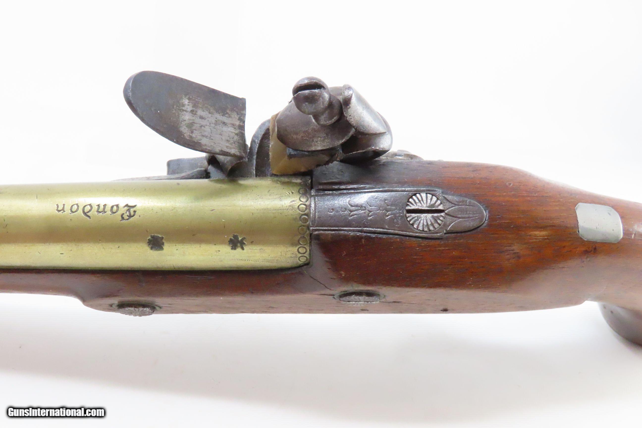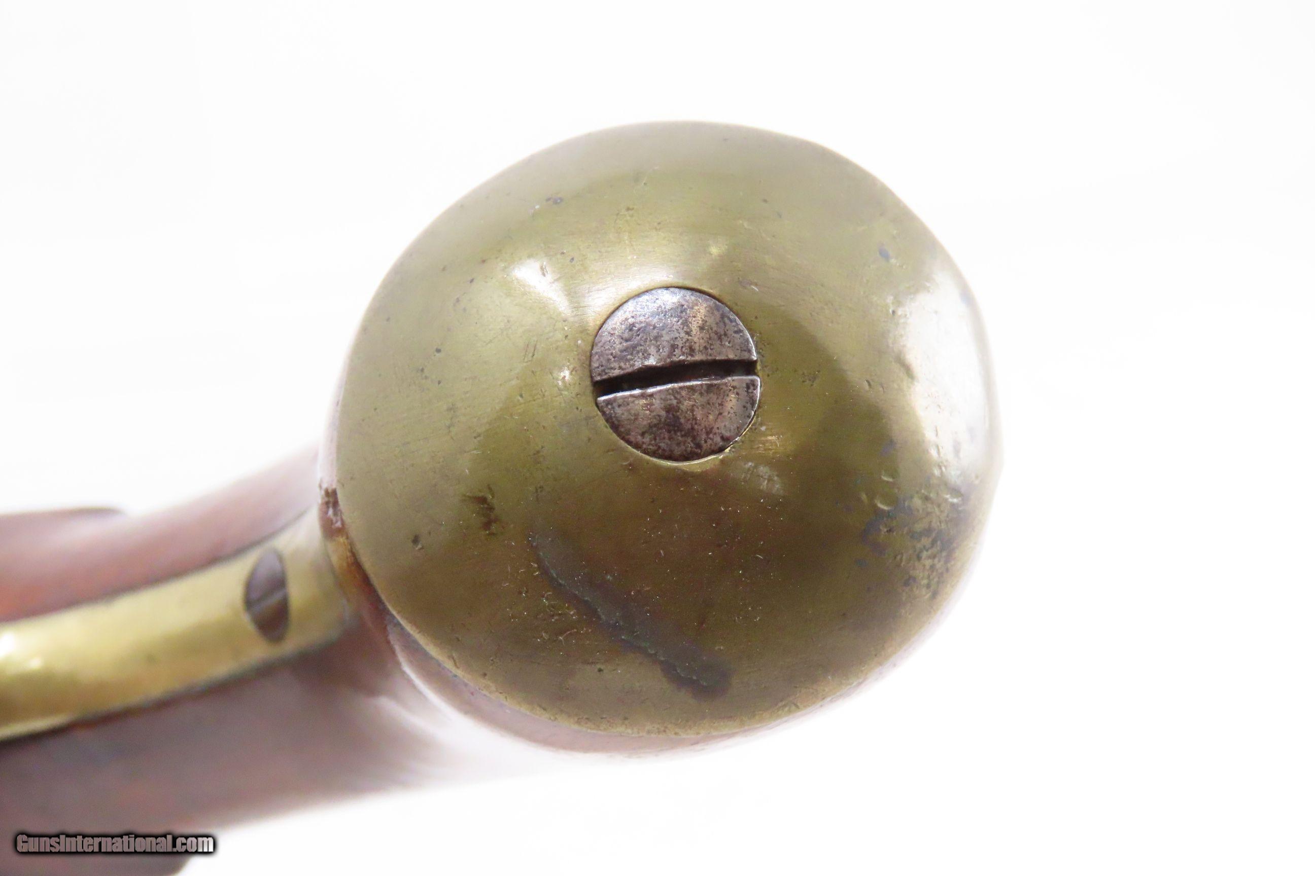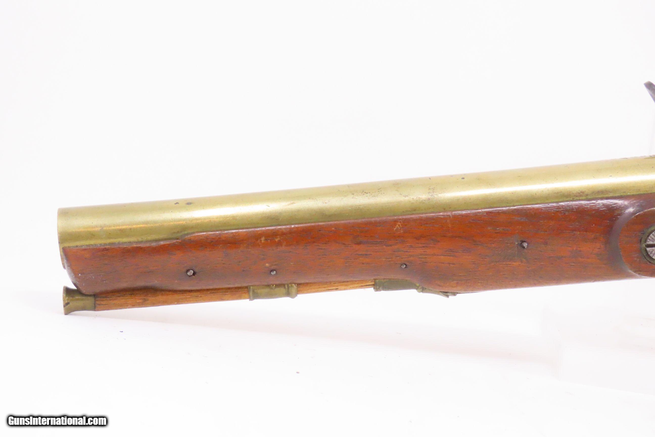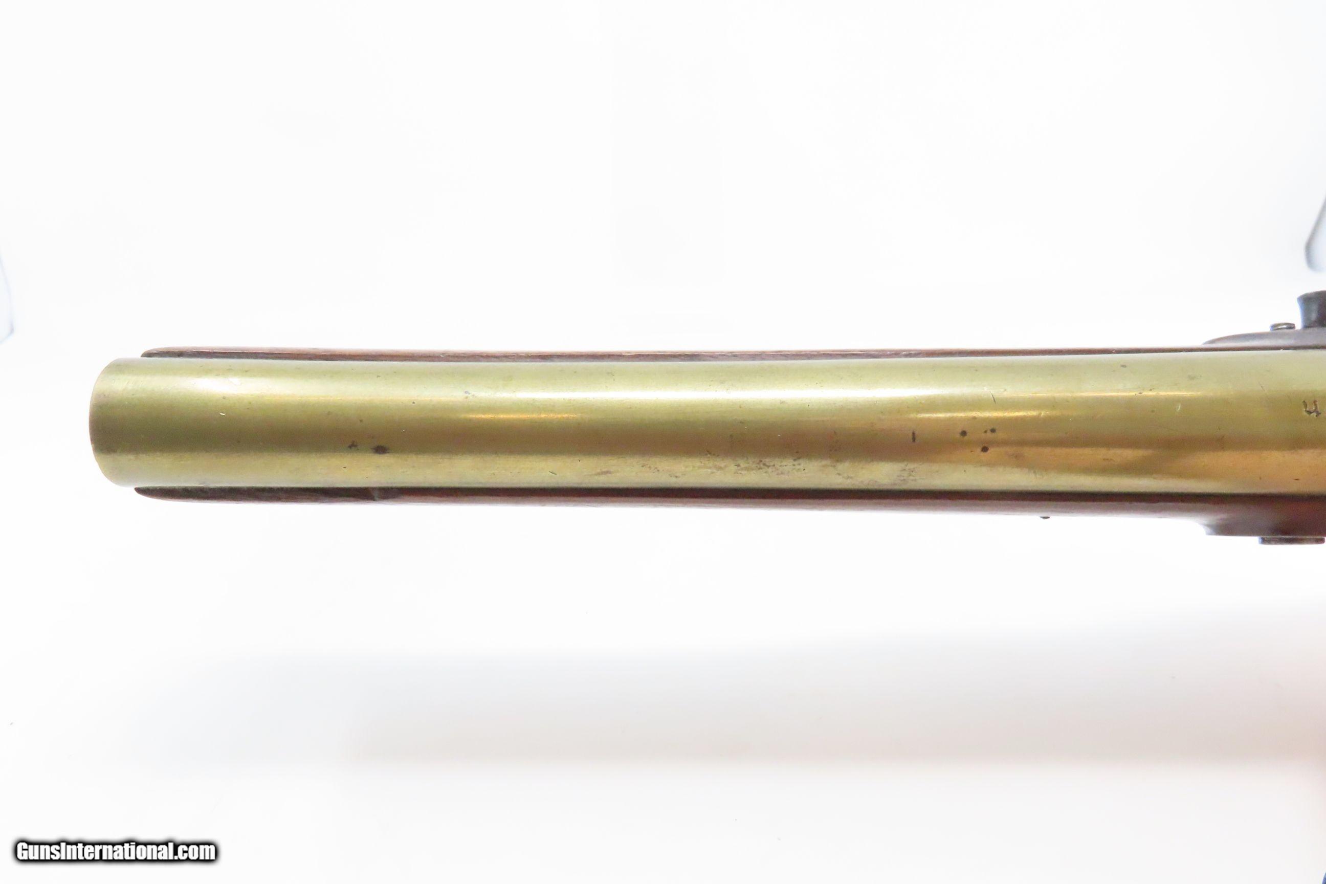 Antique SHARPE of LONDON Brass Barrel .55 Cal Flintlock INDIAN TRADE Pistol British with Birmingham Proofs & Lightly Engraved