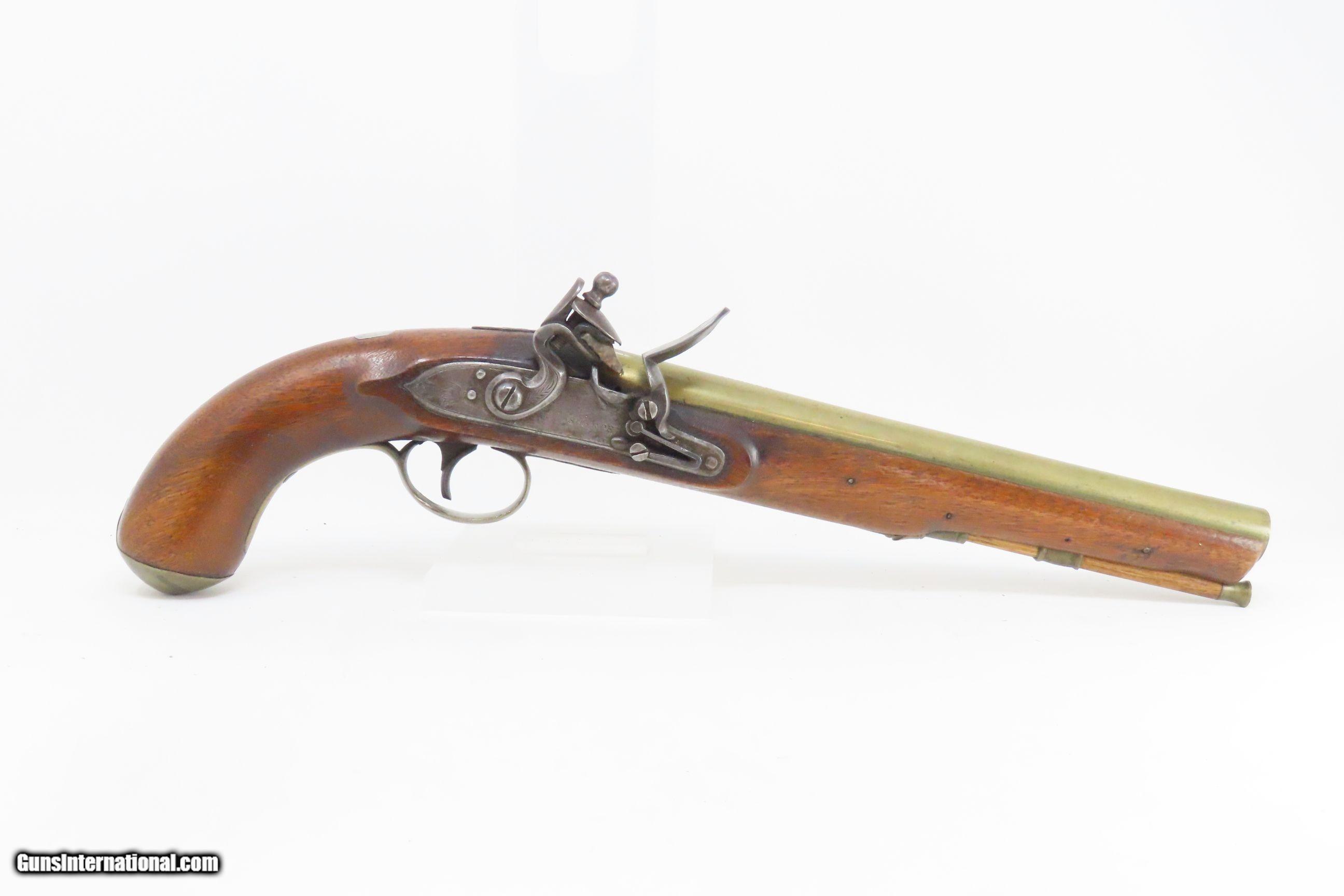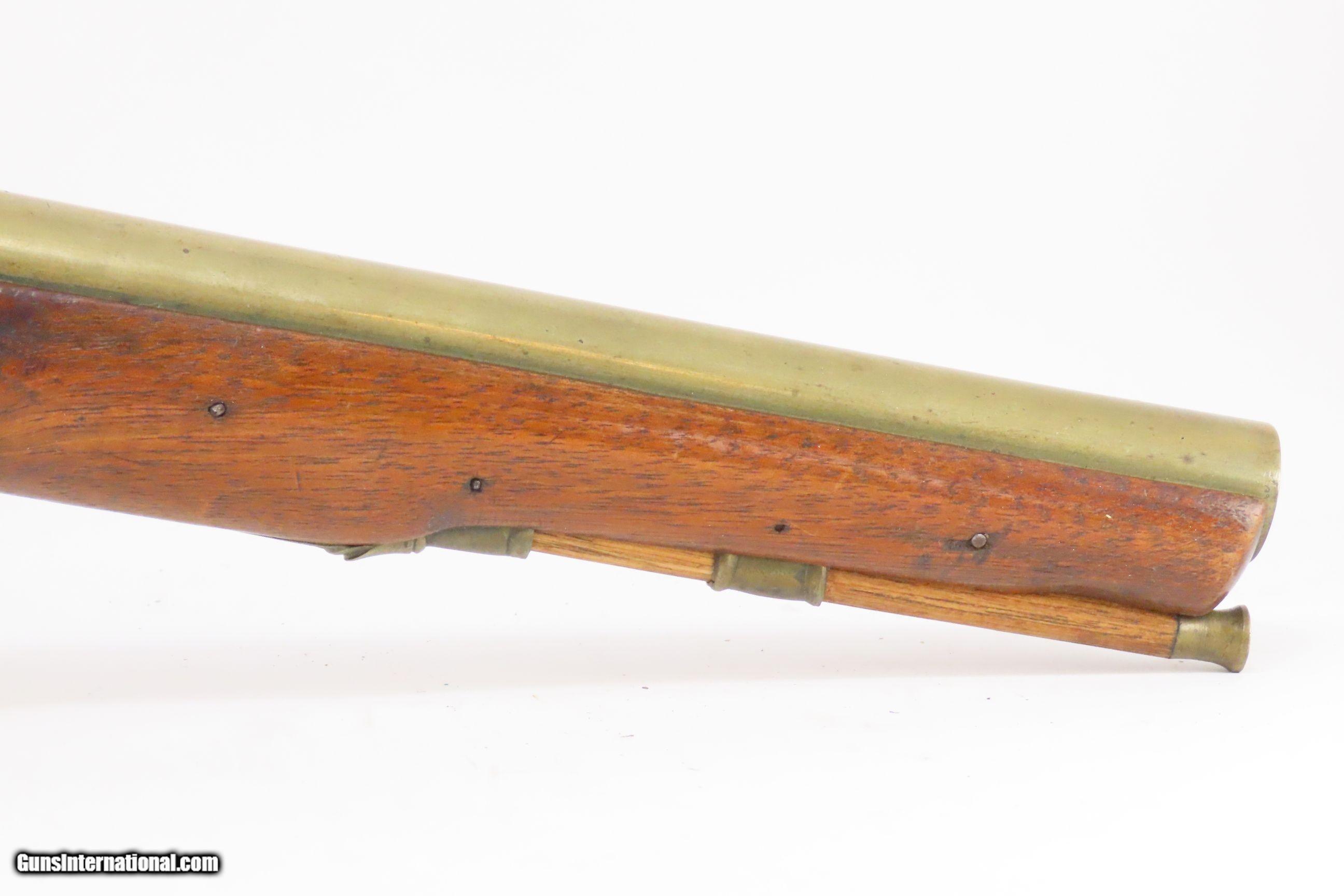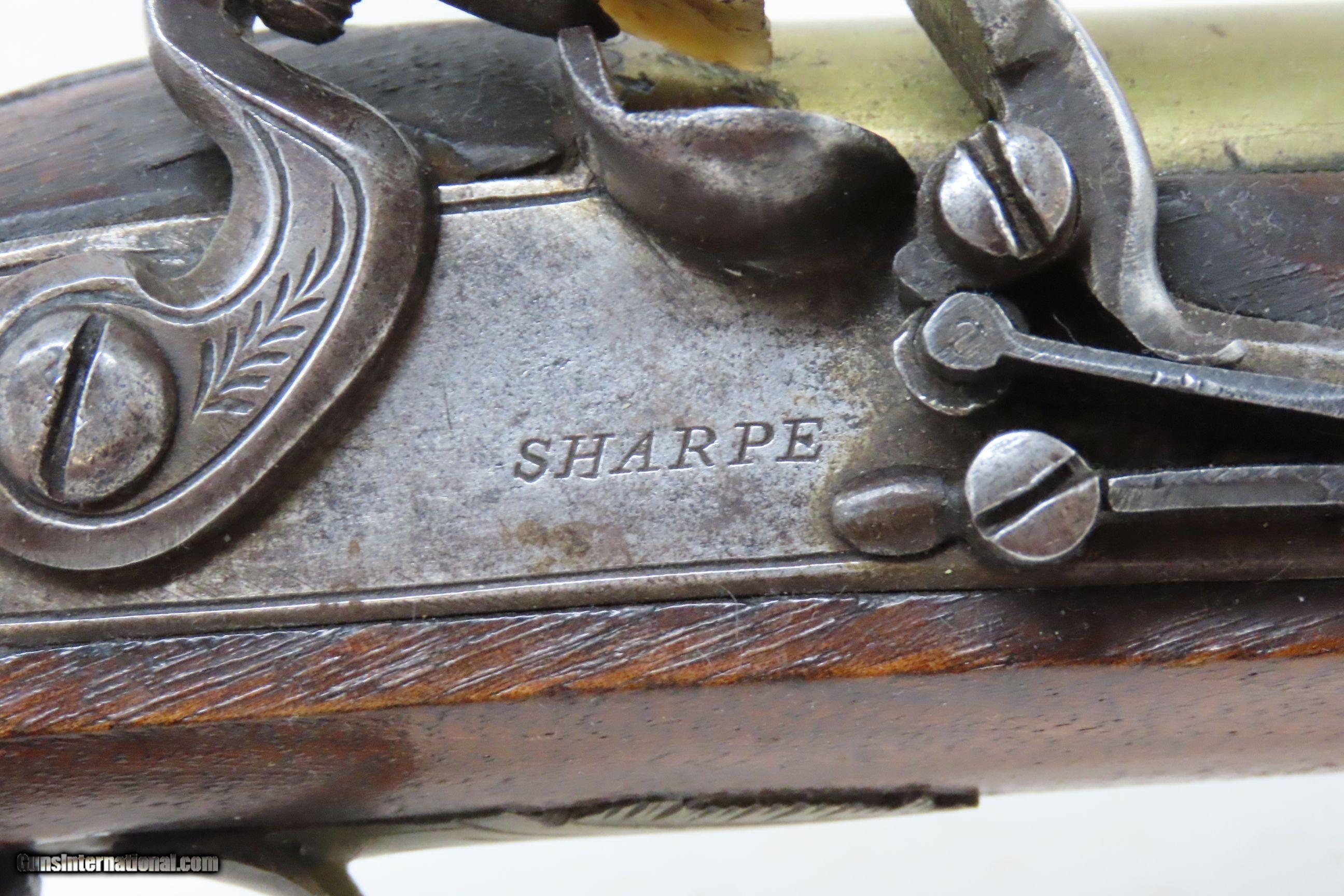 Antique SHARPE of LONDON Brass Barrel .55 Cal Flintlock INDIAN TRADE Pistol British with Birmingham Proofs & Lightly Engraved