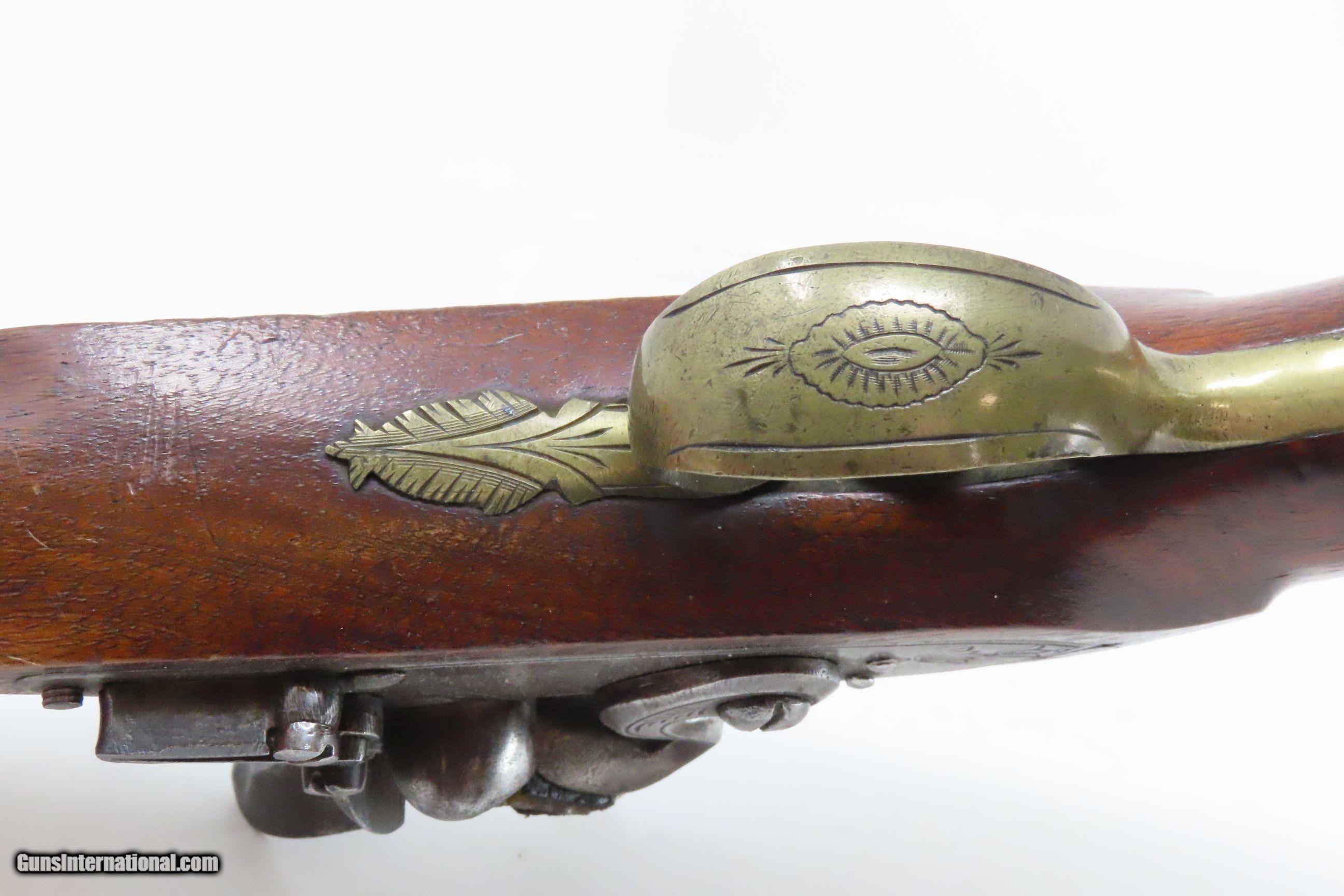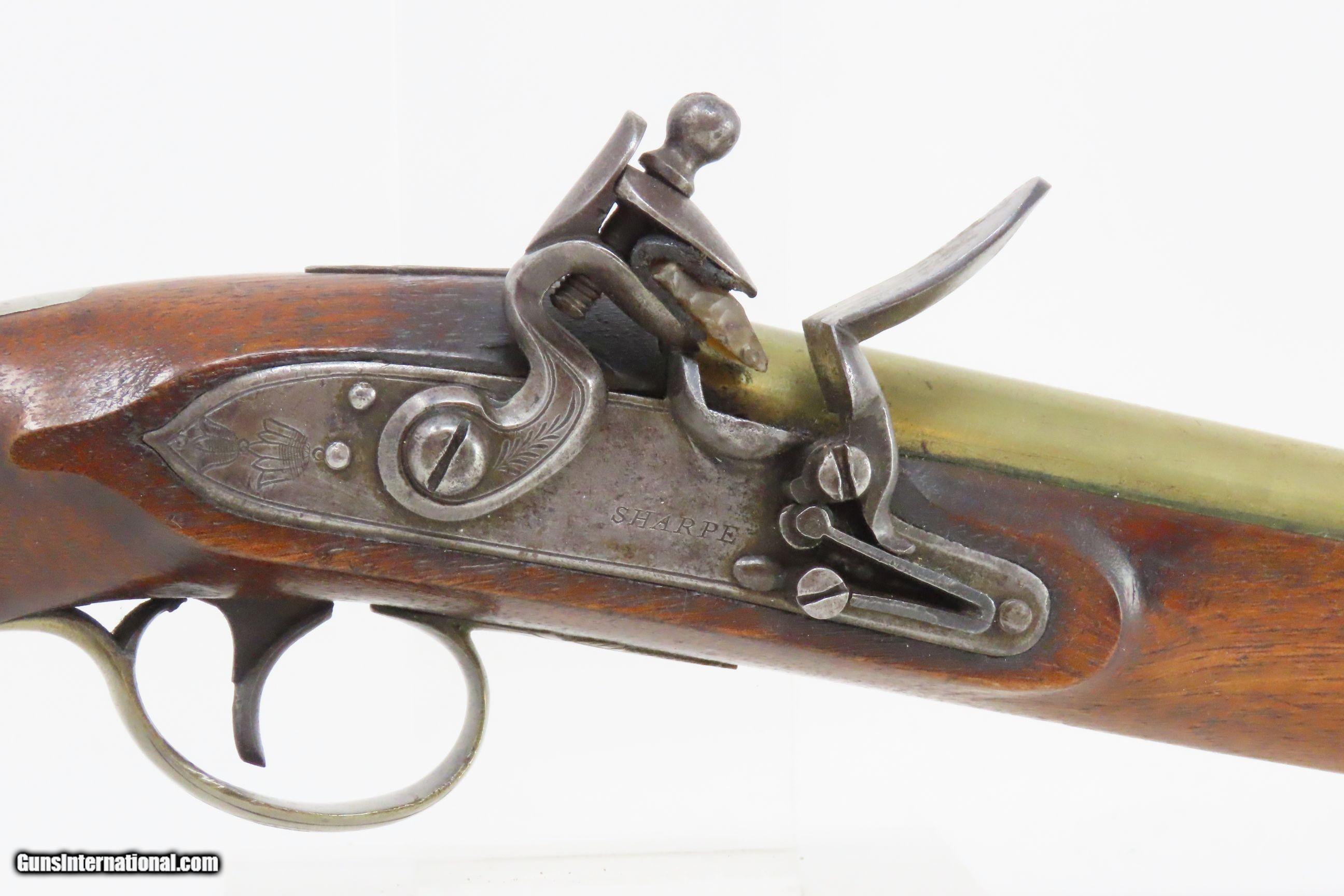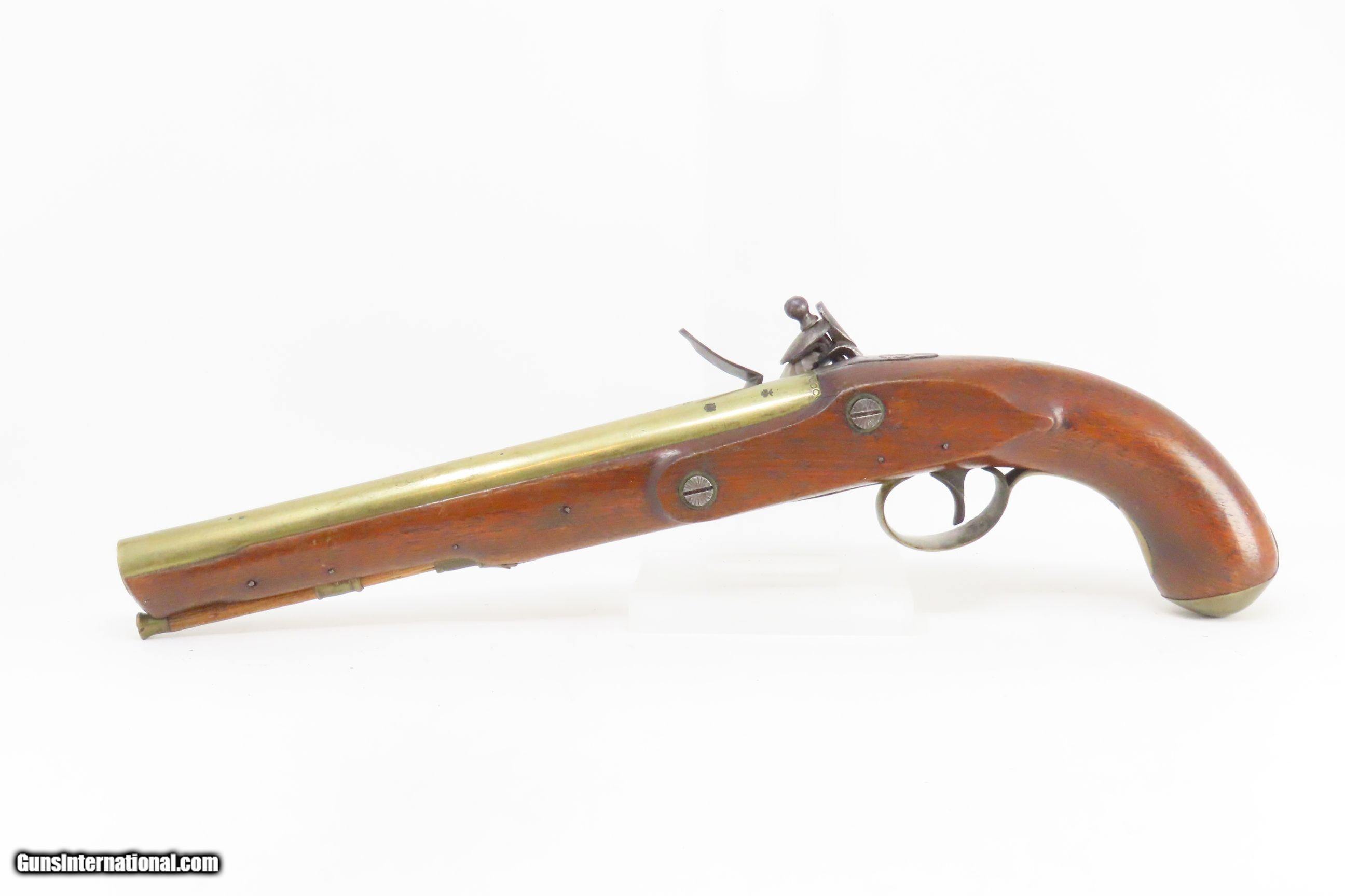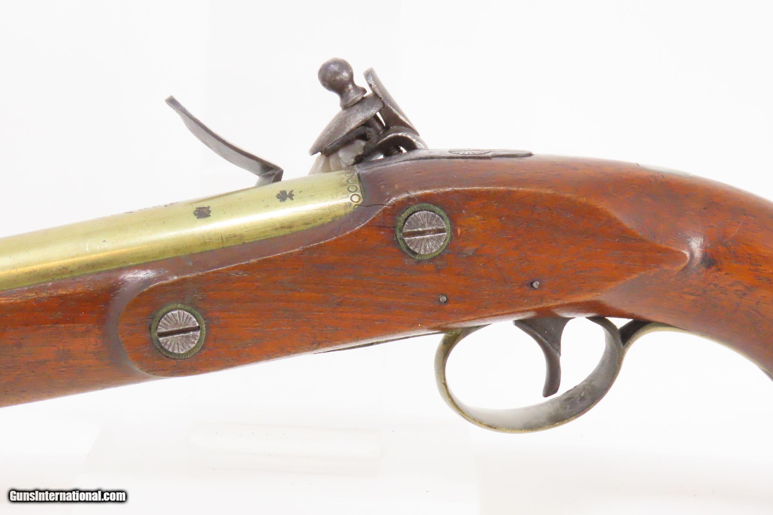 Antique SHARPE of LONDON Brass Barrel .55 Cal Flintlock INDIAN TRADE Pistol British with Birmingham Proofs & Lightly Engraved