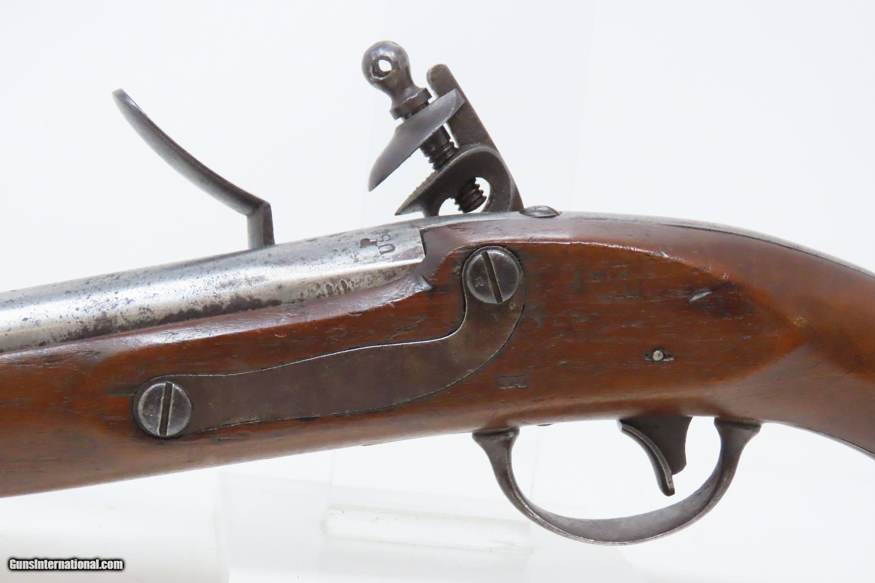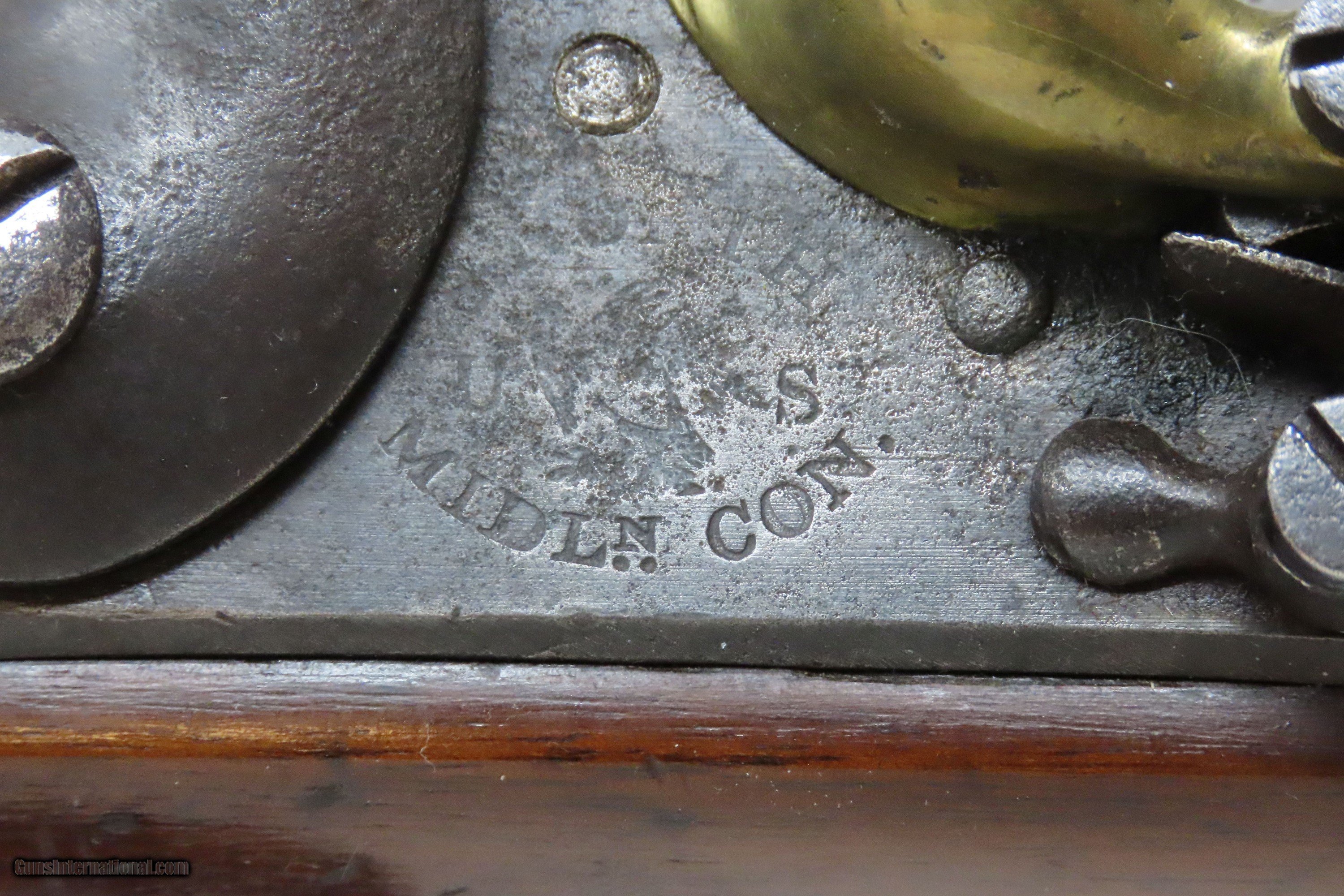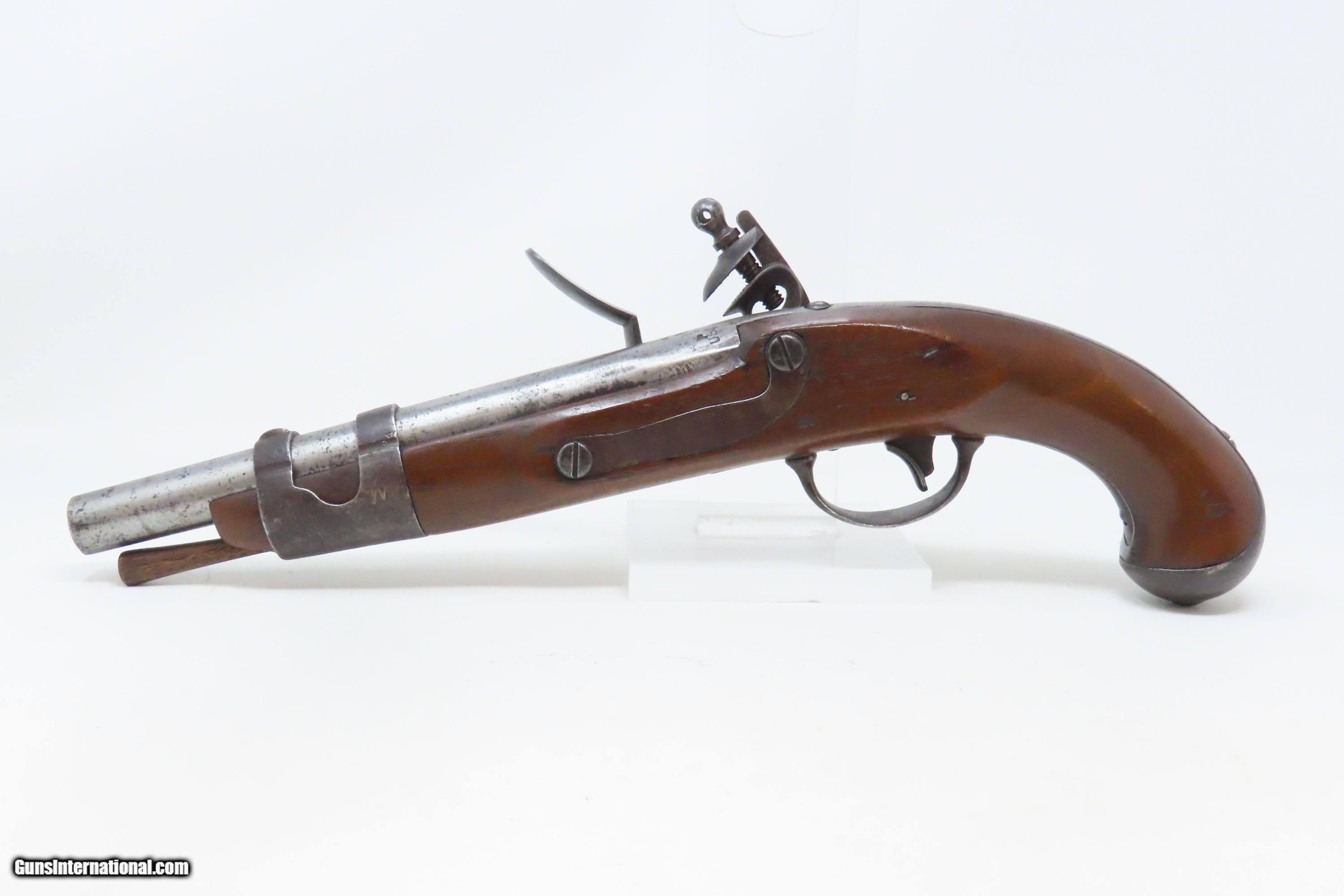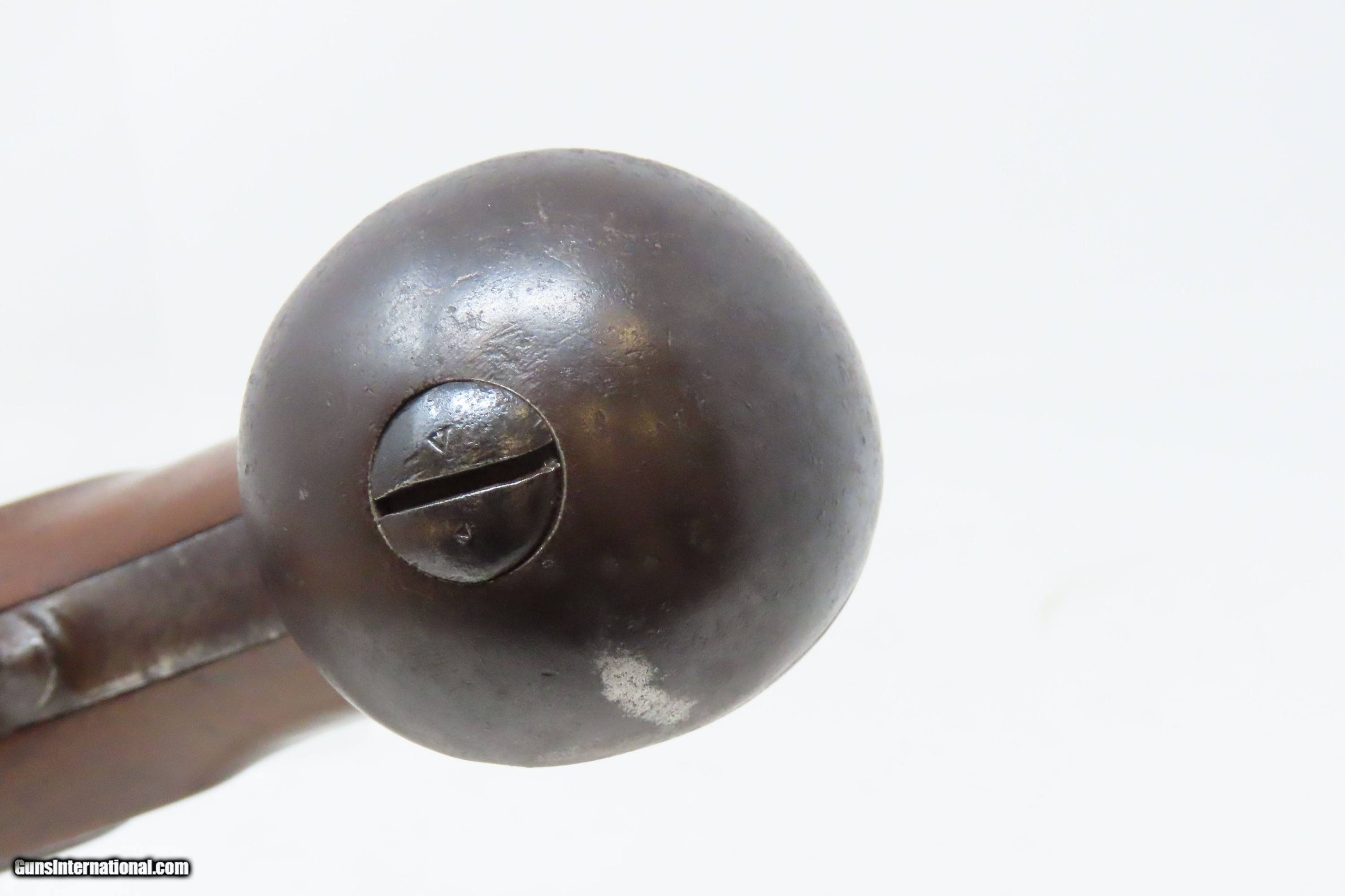 Description: Antique SIMEON NORTH U.S. M1816 .54 Military FLINTLOCK Pistol KIT CARSON U.S. CONTRACT Early American Army & Navy Sidearm Here we present an antique Simeon North U.S. Contract Model 1816 Flintlock Pistol, manufactured between 1817-20 in Middletown, Connecticut. 19,374 of these were made for the U.S. military. Many were updated to the much more reliable percussion system in the 1830s. The service life was quite long for this pistol. The famous scout and Indian fighter Kit Carson fought with one of these, still in its original flintlock form, during the Mexican-American War from 1846-48. Even though percussion arms, including pistols, had been adopted by the U.S. in the 30s, it was not unusual for flintlocks to still be in use. Primary conflicts that would have involved this piece during its service life were the Seminole Wars, the Pawnee Expedition, the Mexican-American War and even the American Civil War. The lock is marked “S. NORTH, US, MIDL. CON.”. along with the Federal Eagle. The barrel is also marked “US”. This example also has a cartouche on the left stock flat. Though many of these pistols were converted to percussion, here is a true survivor in its original flintlock form. The overall condition is very good. The action is strong. The bore is smooth and patinated. The walnut stock is who and solid and has good, clear inspection markings. Own the original! This is a legitimate antique and not a reproduction. Barrel is 9 inches. Caliber: .54 Flintlock Overall condition as seen in photos. Very Fast. Very Safe. FREE SHIPPING WORLDWIDE. Delivered directly to your door by express mail! Guaranteed AUTHENTIC & Includes CERTIFICATE OF AUTHENTICITY. ancestryguns $2800 #233043 SOLD Antique: Yes |