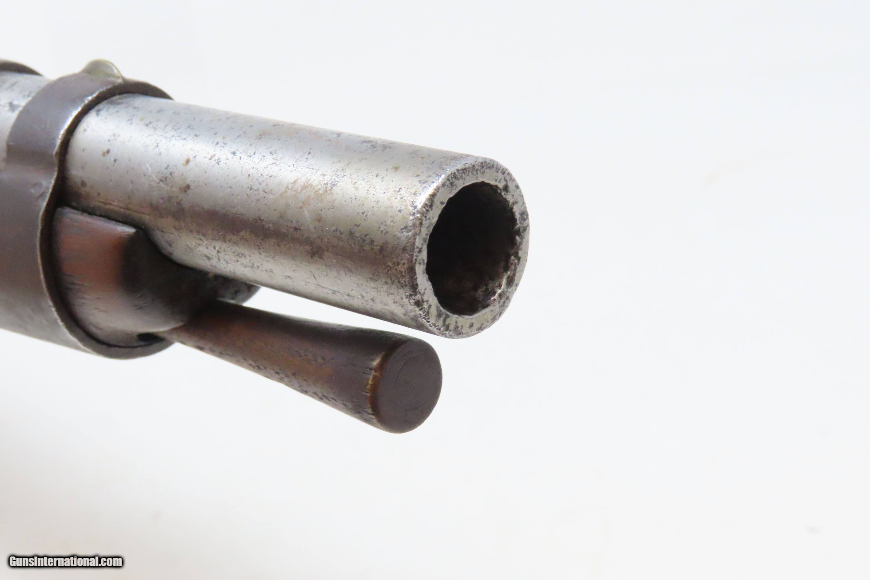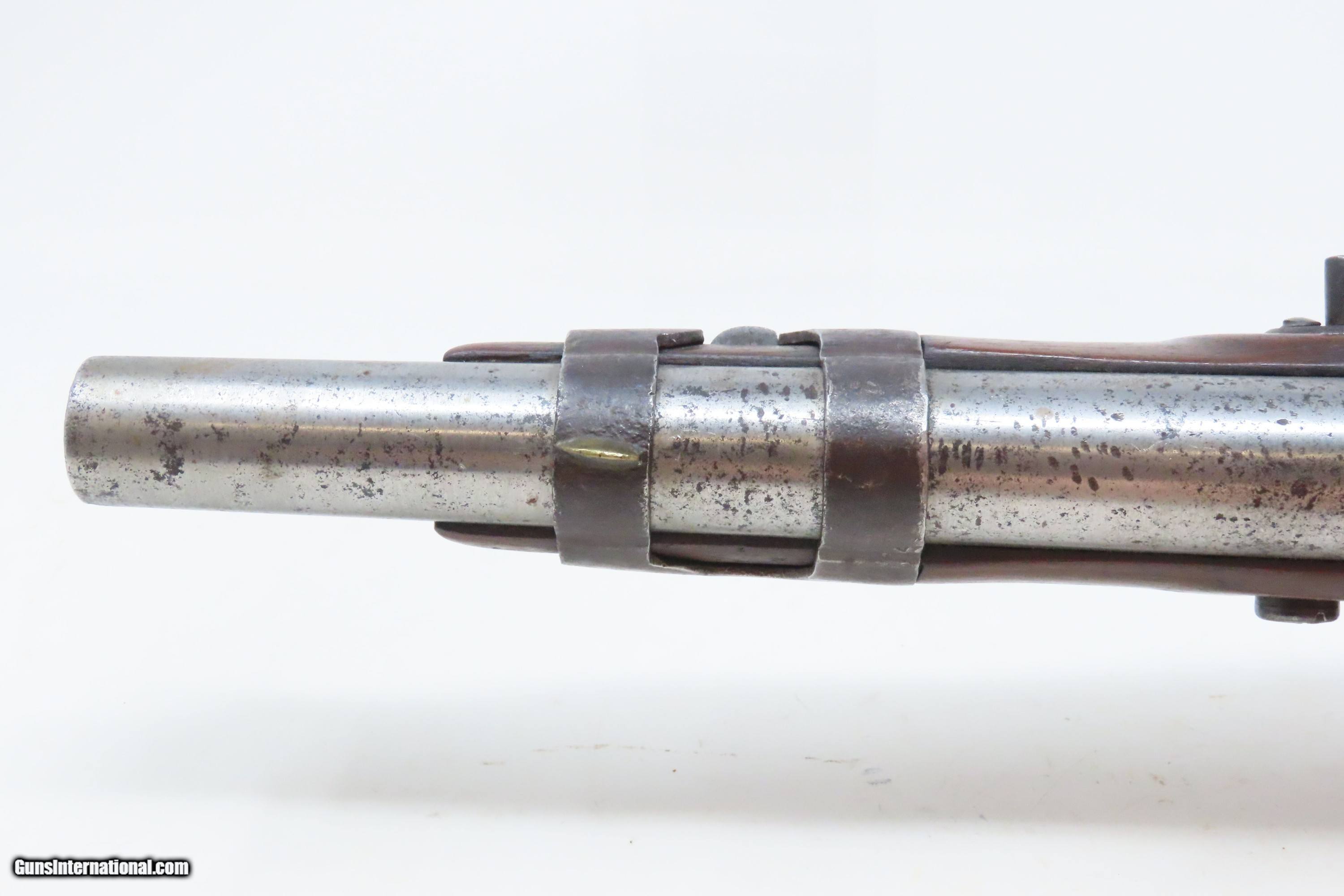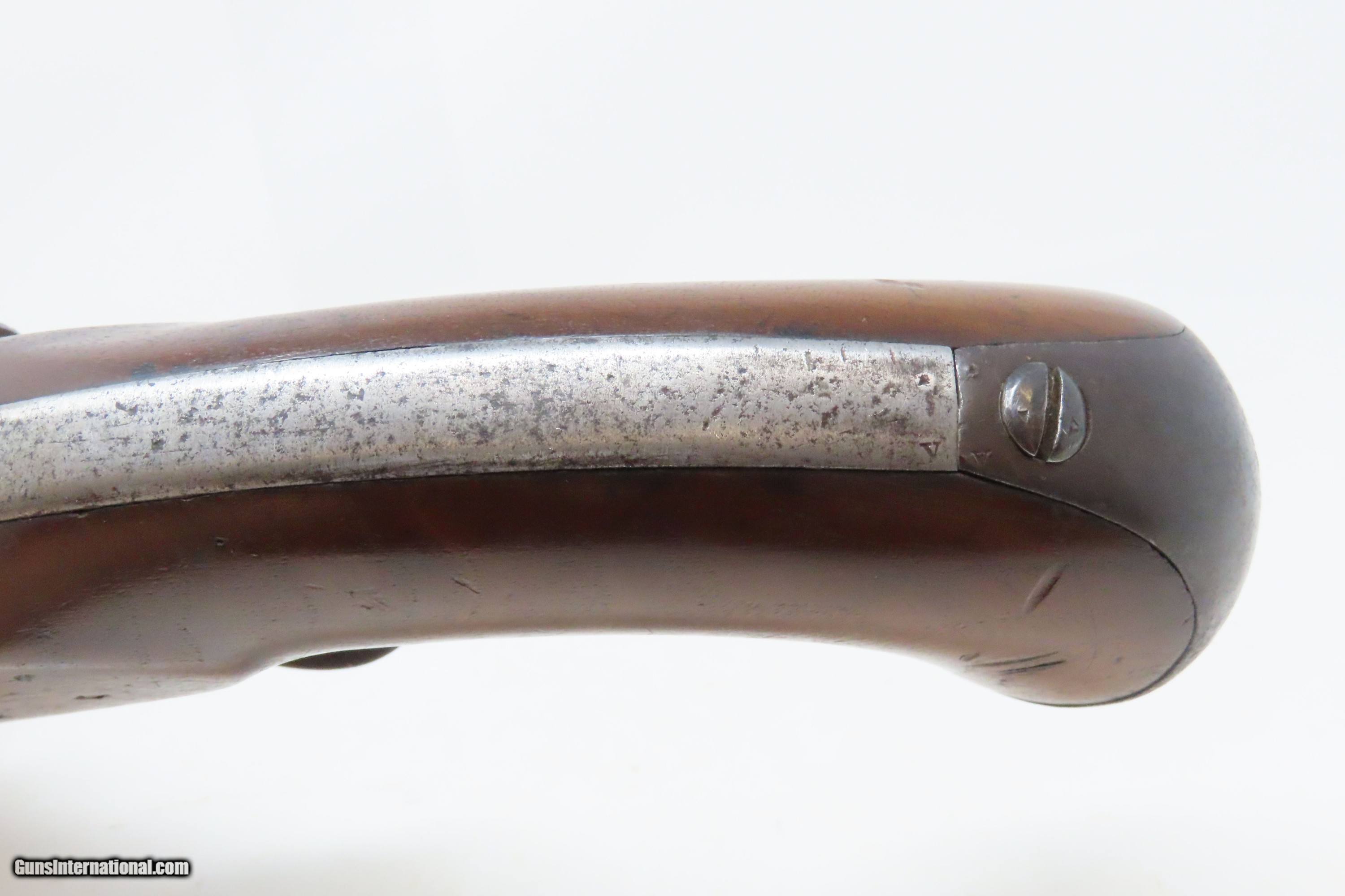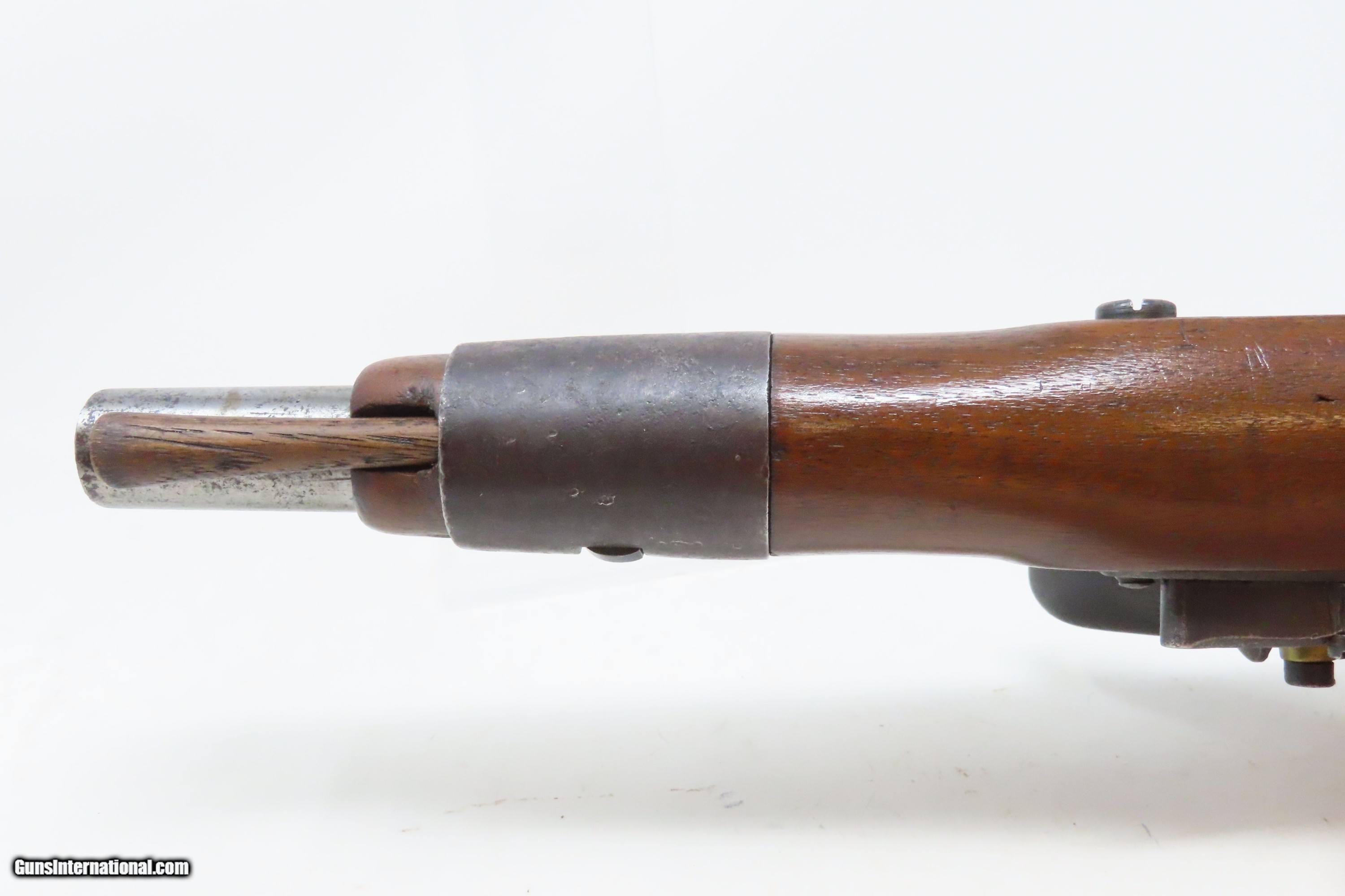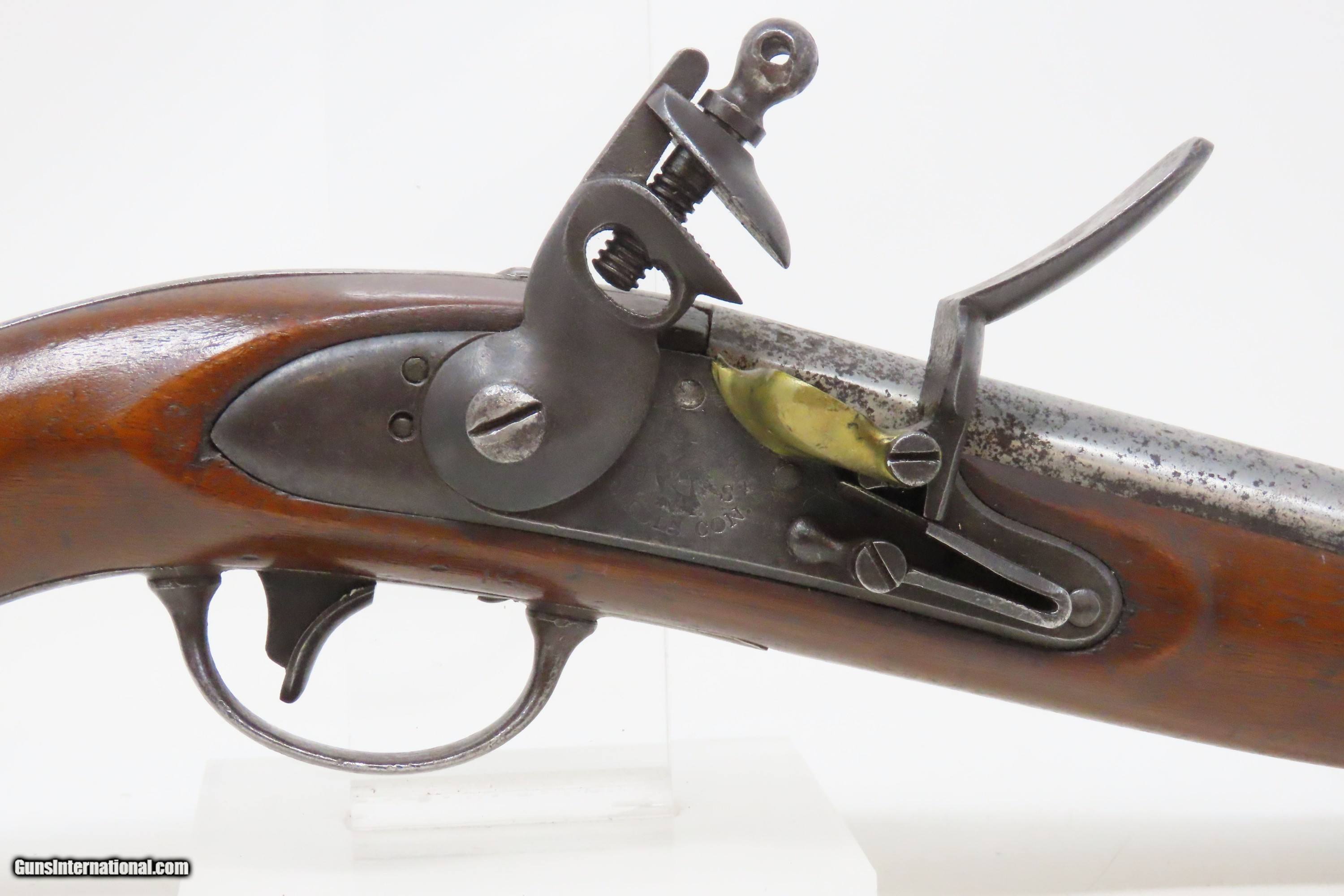 Description: Antique SIMEON NORTH U.S. M1816 .54 Military FLINTLOCK Pistol KIT CARSON U.S. CONTRACT Early American Army & Navy Sidearm Here we present an antique Simeon North U.S. Contract Model 1816 Flintlock Pistol, manufactured between 1817-20 in Middletown, Connecticut. 19,374 of these were made for the U.S. military. Many were updated to the much more reliable percussion system in the 1830s. The service life was quite long for this pistol. The famous scout and Indian fighter Kit Carson fought with one of these, still in its original flintlock form, during the Mexican-American War from 1846-48. Even though percussion arms, including pistols, had been adopted by the U.S. in the 30s, it was not unusual for flintlocks to still be in use. Primary conflicts that would have involved this piece during its service life were the Seminole Wars, the Pawnee Expedition, the Mexican-American War and even the American Civil War. The lock is marked “S. NORTH, US, MIDL. CON.”. along with the Federal Eagle. The barrel is also marked “US”. This example also has a cartouche on the left stock flat. Though many of these pistols were converted to percussion, here is a true survivor in its original flintlock form. The overall condition is very good. The action is strong. The bore is smooth and patinated. The walnut stock is who and solid and has good, clear inspection markings. Own the original! This is a legitimate antique and not a reproduction. Barrel is 9 inches. Caliber: .54 Flintlock Overall condition as seen in photos. Very Fast. Very Safe. FREE SHIPPING WORLDWIDE. Delivered directly to your door by express mail! Guaranteed AUTHENTIC & Includes CERTIFICATE OF AUTHENTICITY. ancestryguns $2800 #233043 SOLD Antique: Yes |