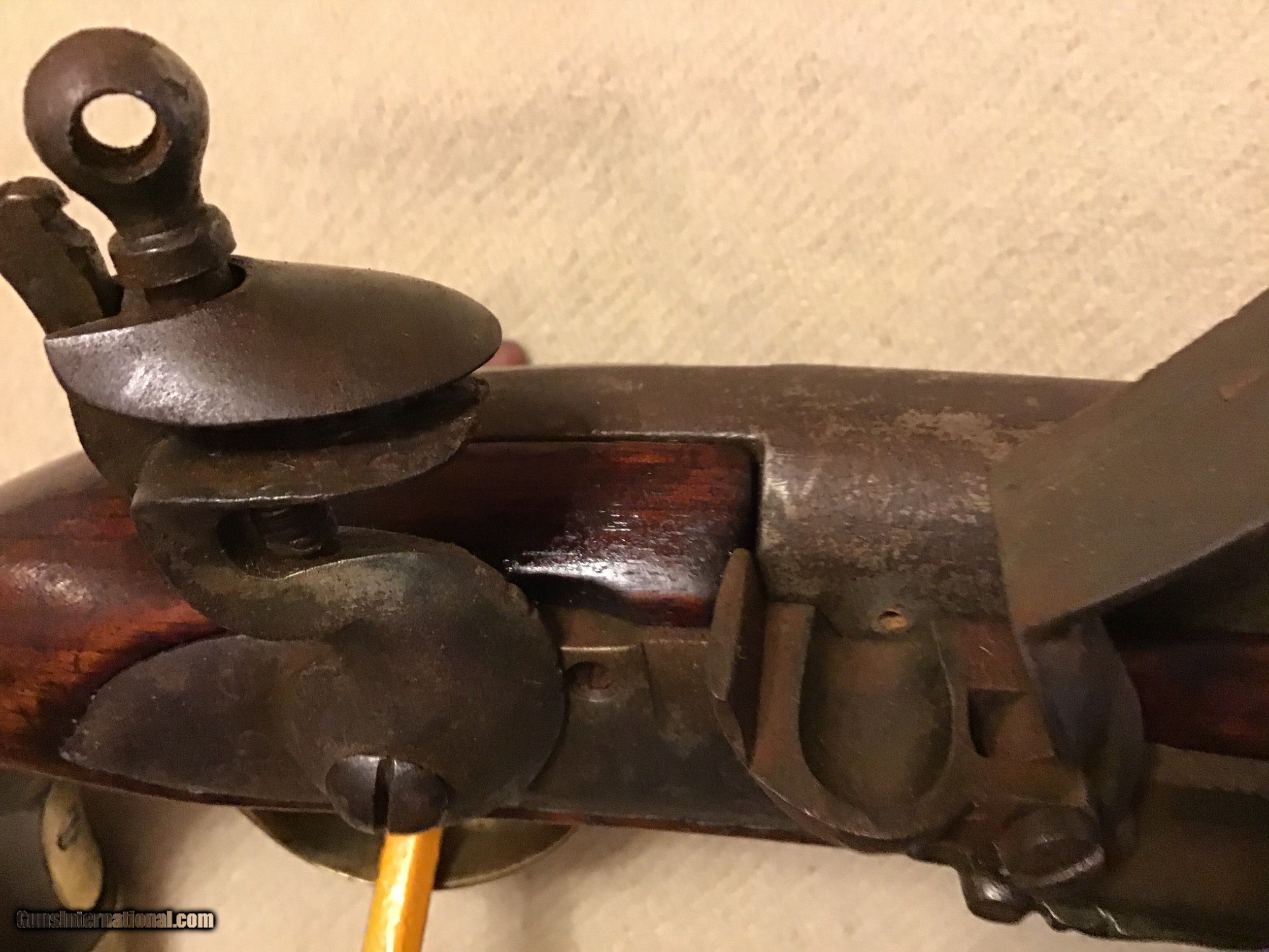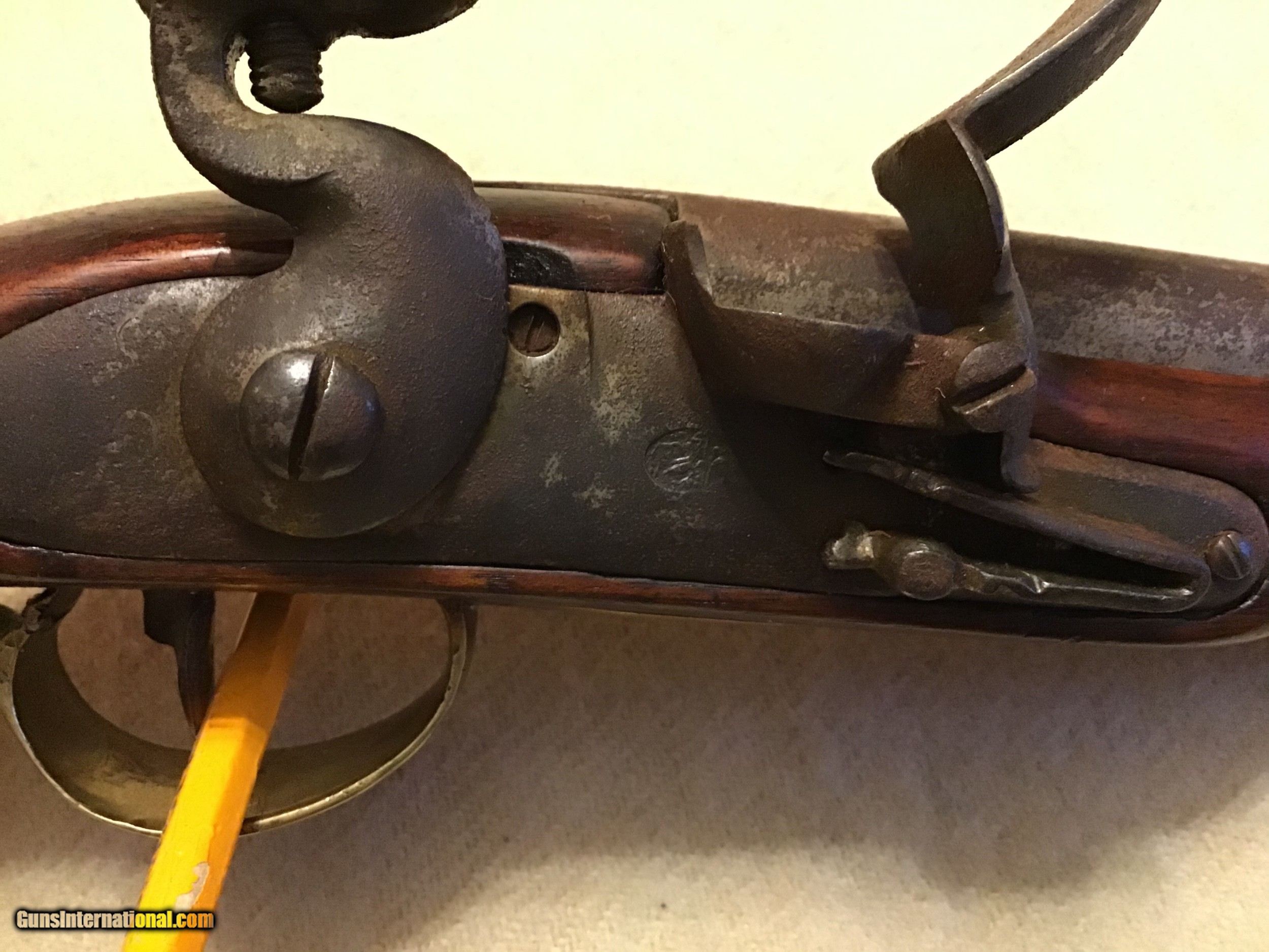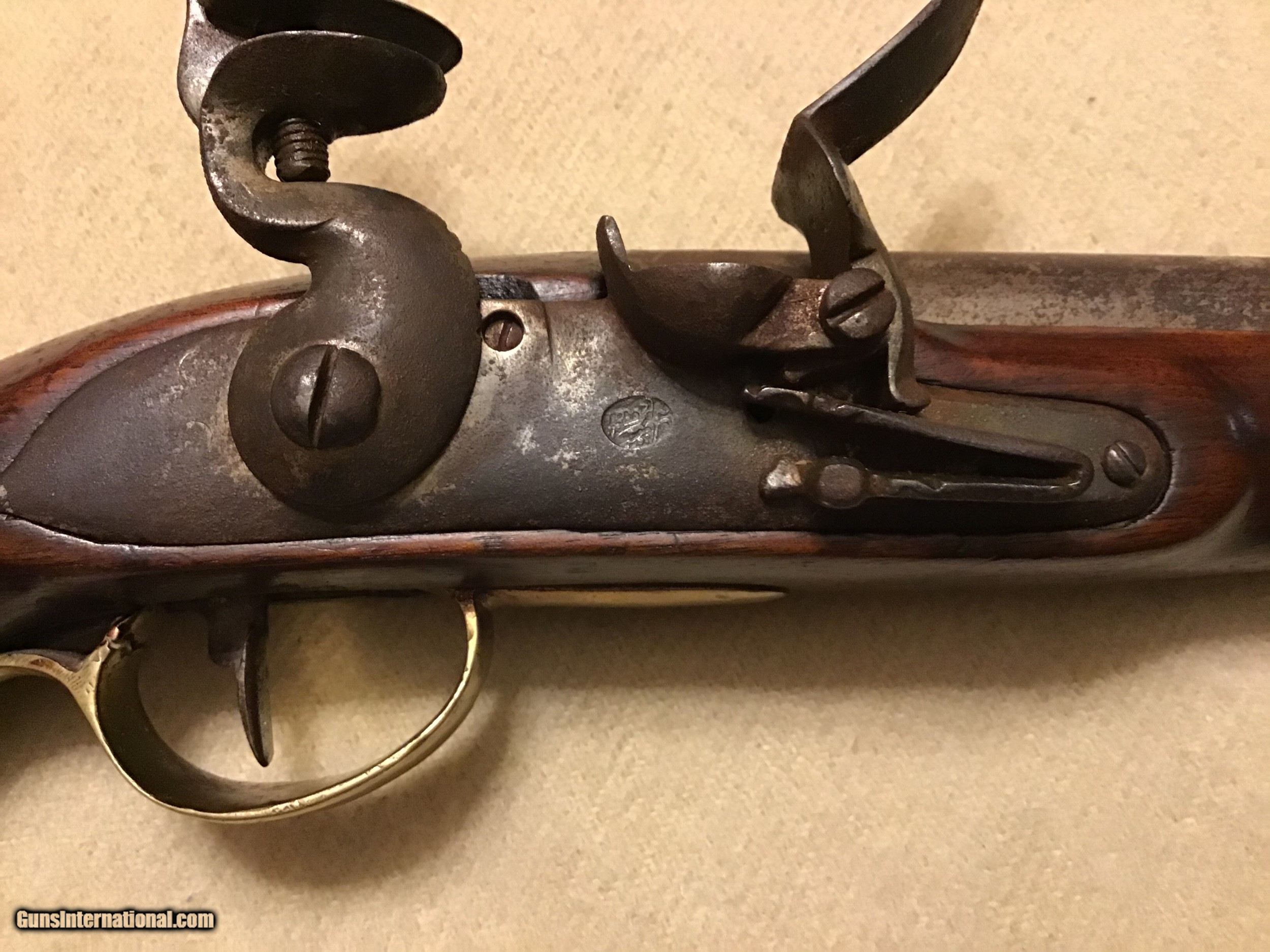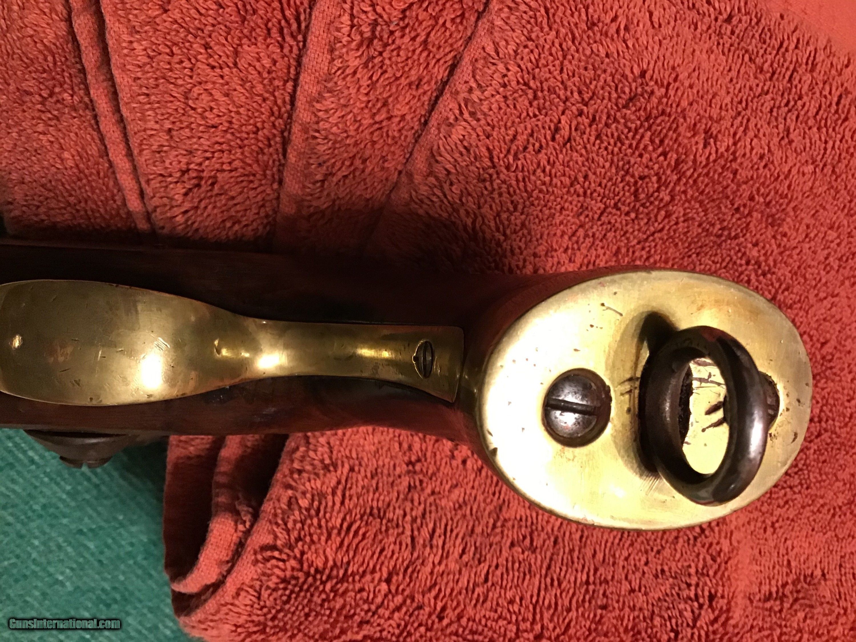 Description: On Hold Sale Pending. This is a good Belgian flintlock cavalry horse pistol circa 1790-1820. Total length 15.5", barrel length 9"s long with a bore of approximately 67-69 caliber and has a brown patina. Pistol has brass regulation period hardware and butt cap with the lanyard loop. Flintlock lock works fine and has a marking stamped into the middle of the llock which I believe is a Belgian mark. The stock is good but has a well done wood piece replaced on the back side (see photos). A great piece of military history. Feel free to contact me with any questions chriskobberdahl2gmail or 218-839-9272. SOLD Antique: Yes Manufacturer: Belgian Model: Horse pistol Condition: Good Metal Condition: Good Wood Condition: Good |