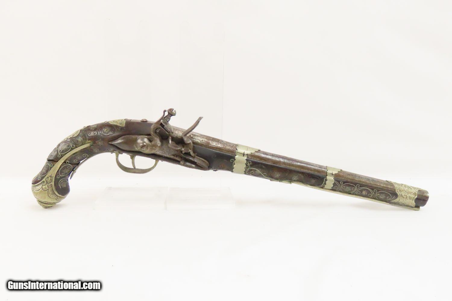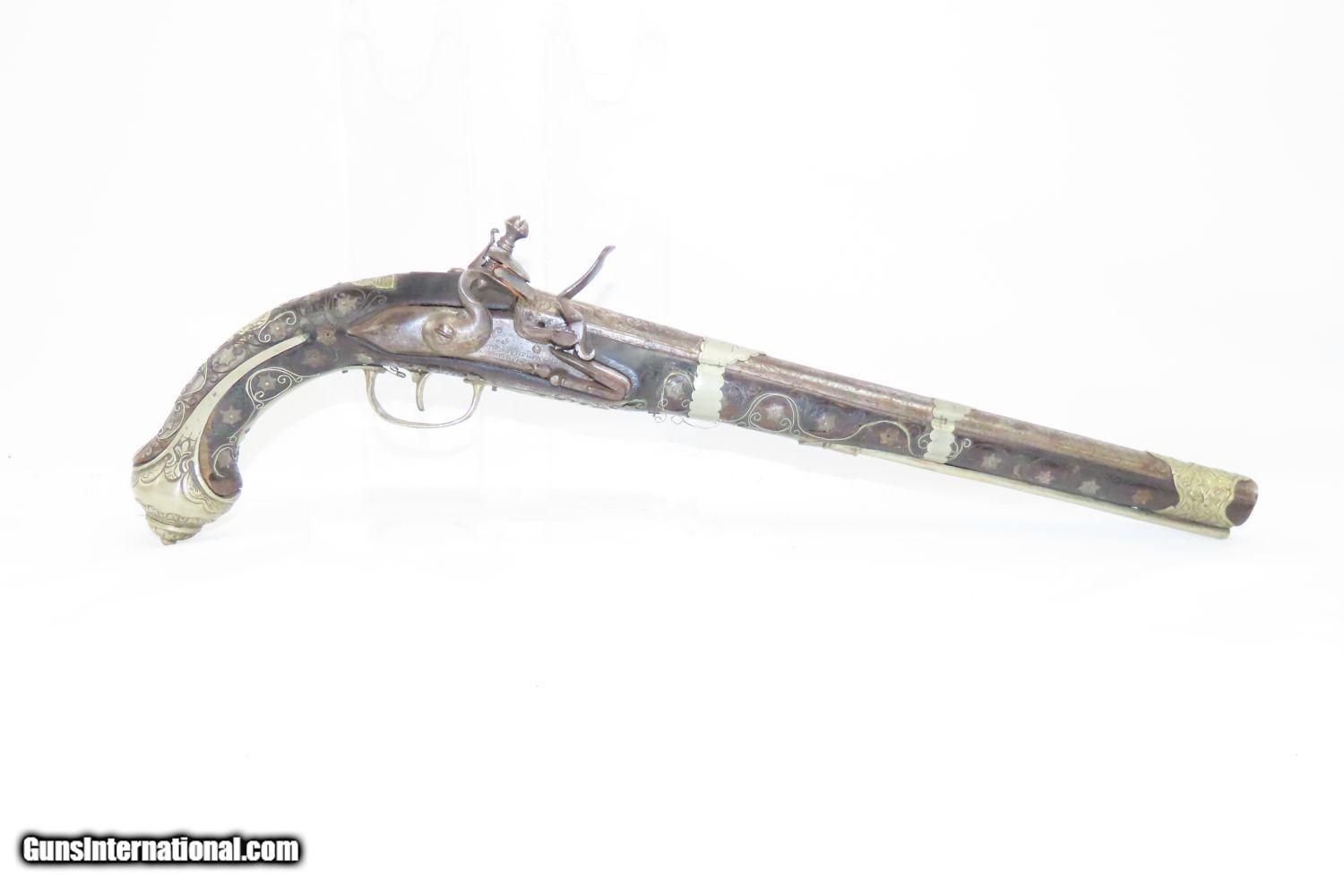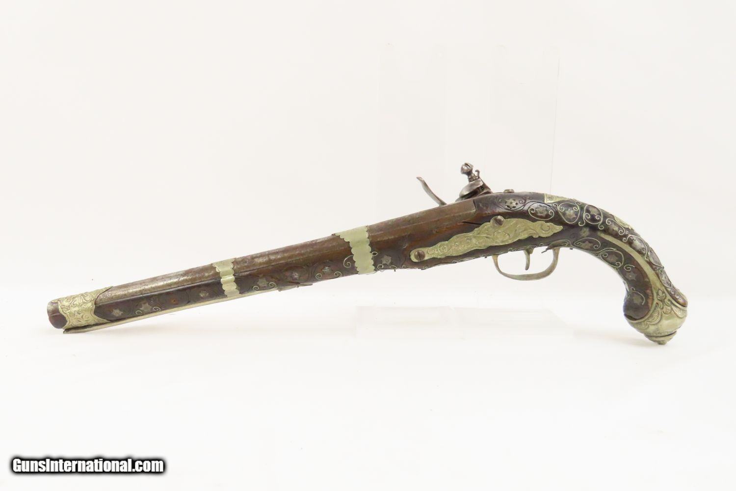 BRACE of ORNATE Antique OTTOMAN Flintlock Pistols Pair PIRATE Mediterranean Late-18th / Early 19th Century Pistols