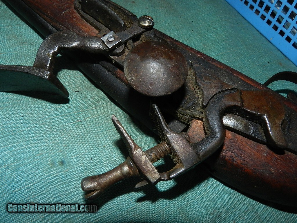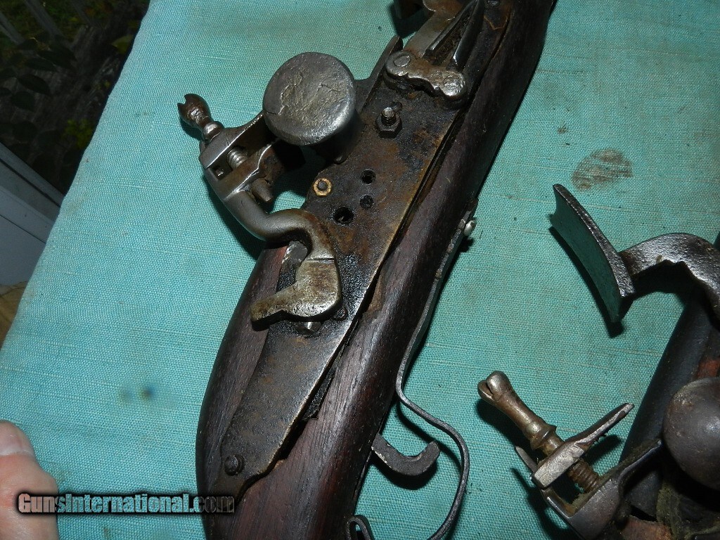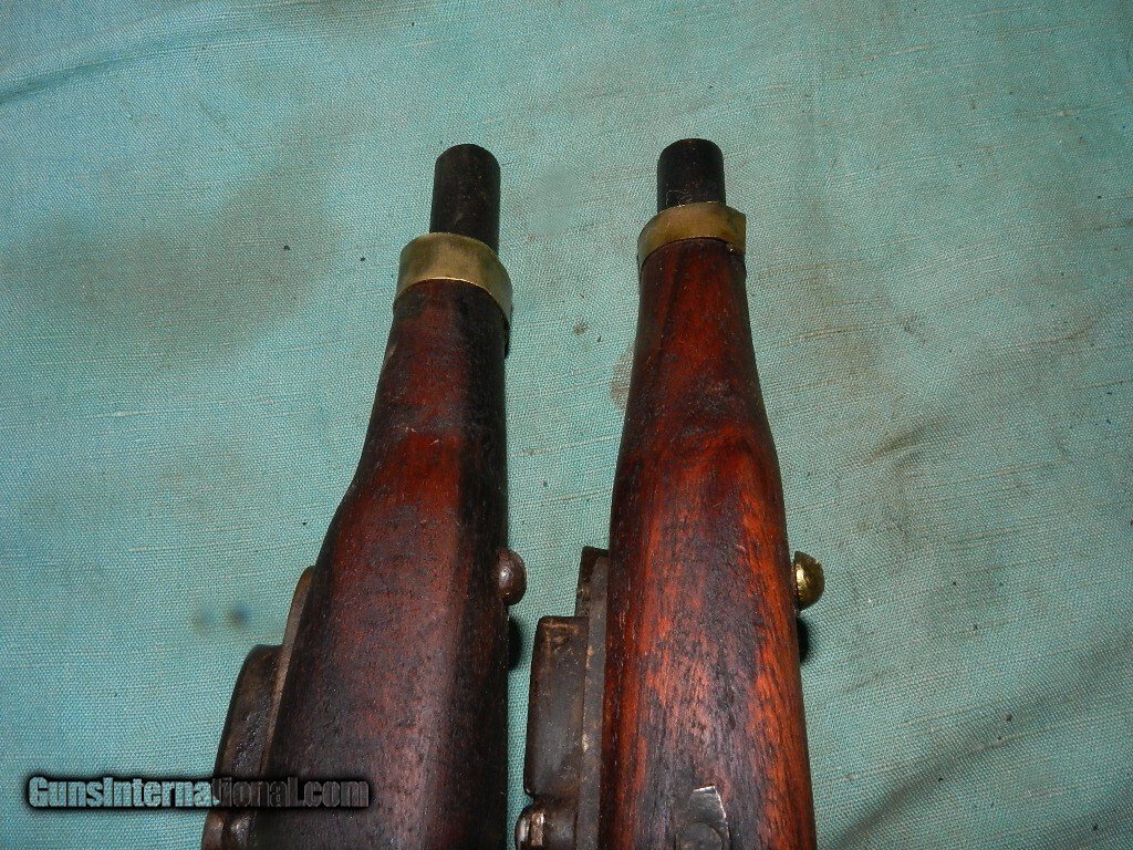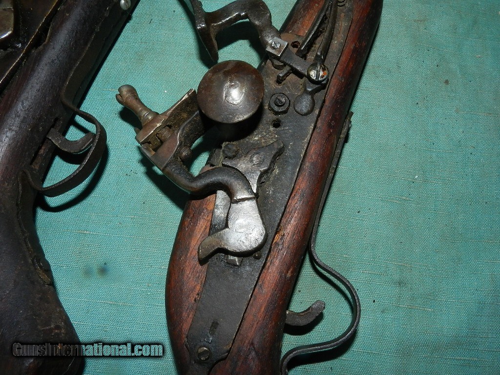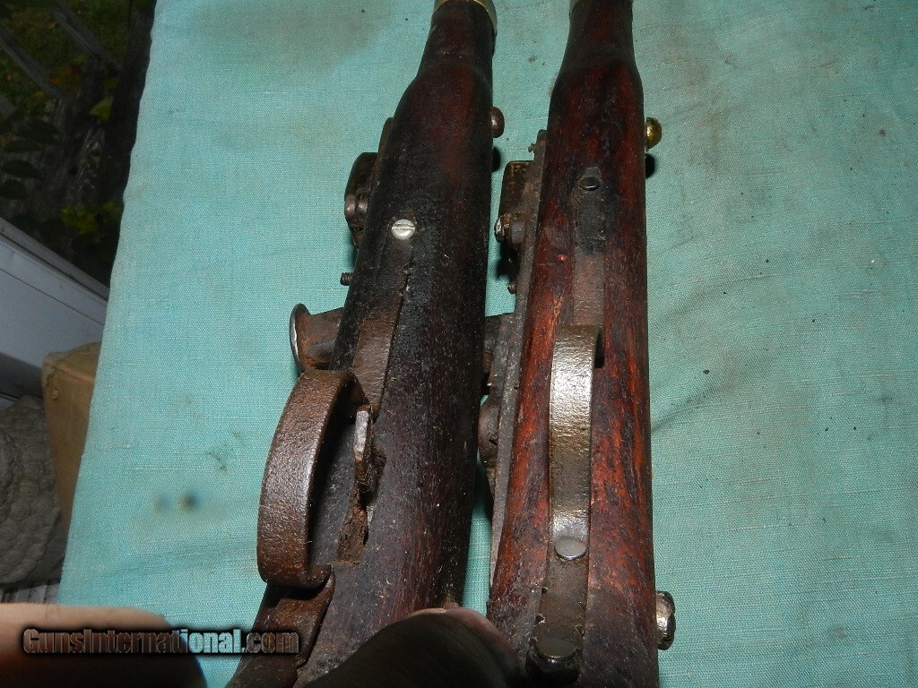 Description: A pair of cnapaunce like flintlock pistols of early times, not working locks and to be fired,Early weapon workmanship with crude made wood stocks and brass barrel bands. Because of age many repairs of changed parts may have been added or replaced. Measuring about 16" long with a round barrel of about 9" The rtoich hole of barrels not found so they were replaced, and locks may have internal parts missing. I have not taken these apart or tried to fix.. Making a man cave great Pirate display. Some of the first firearms were snapaunce before dof locks or then flintlocks. sold as is. thanks. When buying a gun if intending to shoot it, always have it examined by a competent gunsmith before shooting. To buy a gun from me you must get a direct email for me, with details, and shipping cost. We don’t have a web site .I prefer money orders or a check. Item ships when funds come in. I try to keep guns affordable, which means I make less money than most dealers. You won’t get altitude sickness, or nose bleed, with my prices! I consistently have the best selection of older guns If you attempt to buy, you must still contact us for details . Best to email to buy. Sometimes a local person can stop buy and purchase before the gun is removed. Sometimes not home to get calls. Some guns are required shipment to a gun dealer near you for a transfer to you when it arrives. Otherwise many older or black powder guns ship to your door. With the widest selection of older guns at great prices, We don’t have a store, and sell on the internet only. I’m easy to get along with. Thank You Antique: Yes Price: $395.00 Contact Seller |