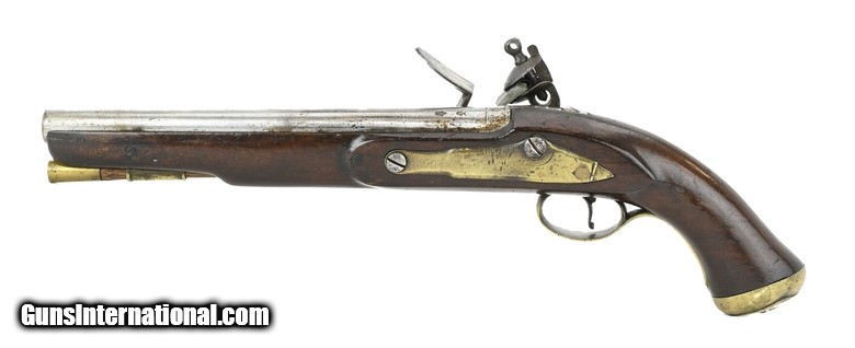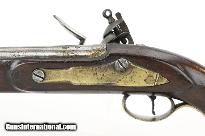 Description: British Light Dragoon Flintlock Pistol. Lock has the “Crown GR” mark and the tail of the lock is marked Tower. Bore caliber .56. Barrel length 10”, overall length 16”. Action works perfectly. SOLD Antique: Yes |