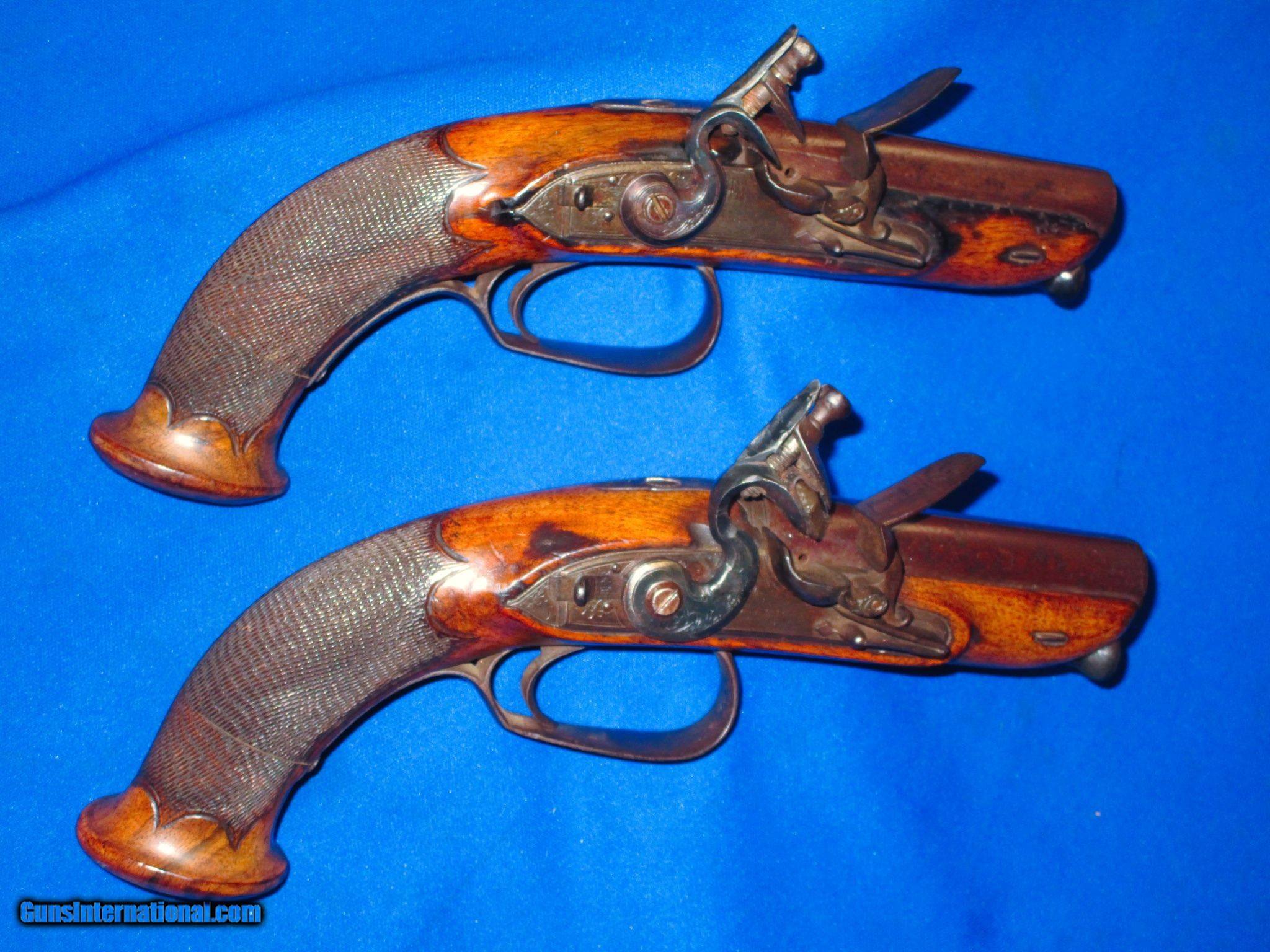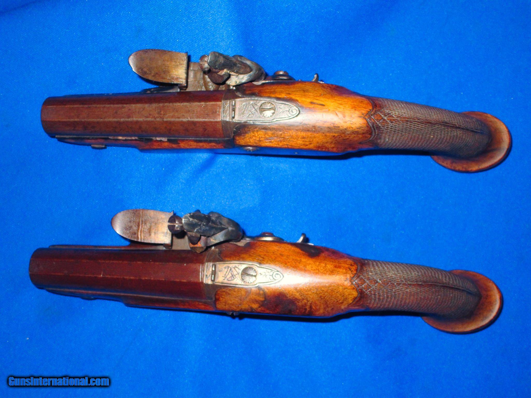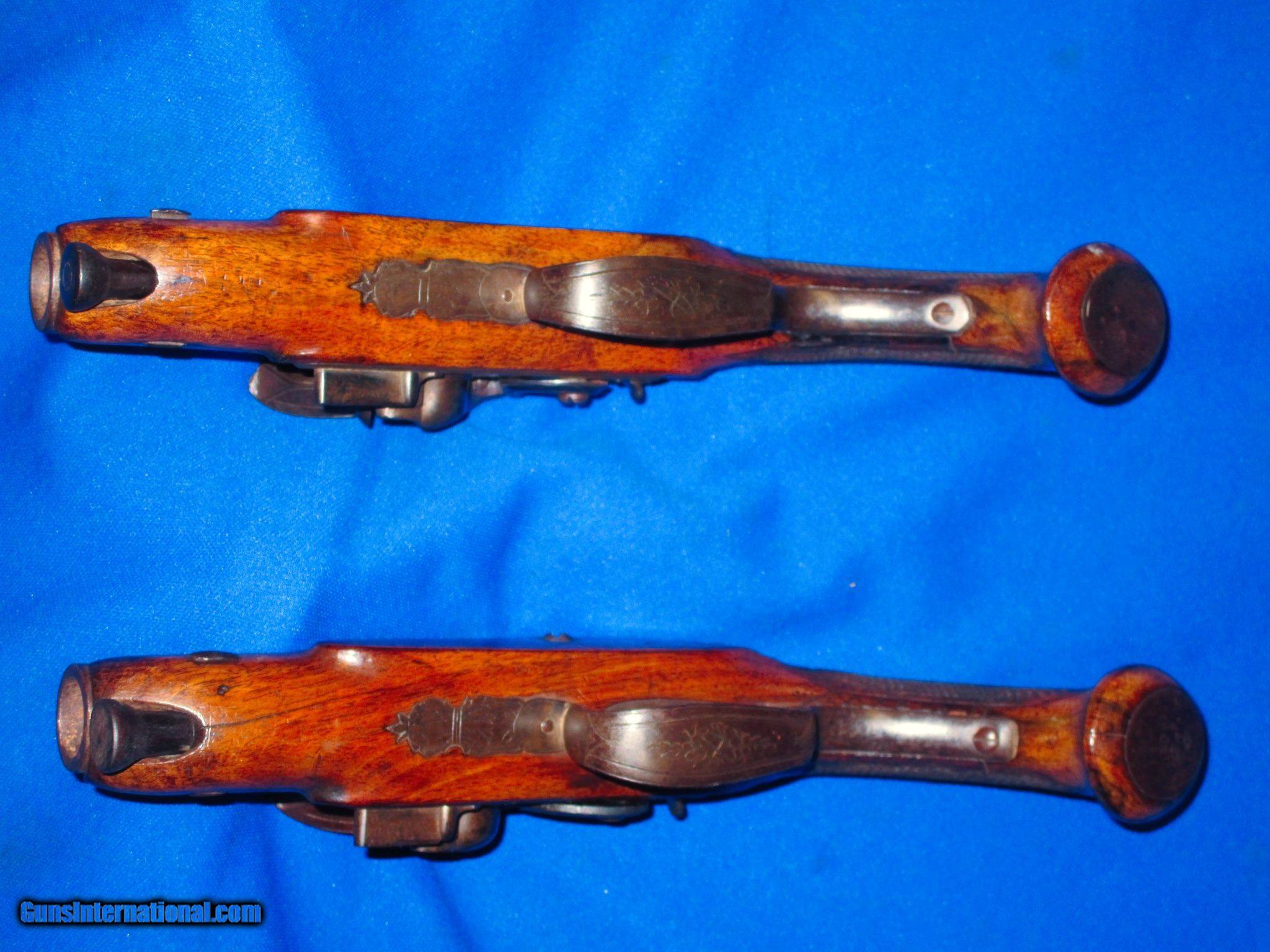 Early 1700's To 1800's Pair Of Large Bore Flintlock Pistols By "ROSSER