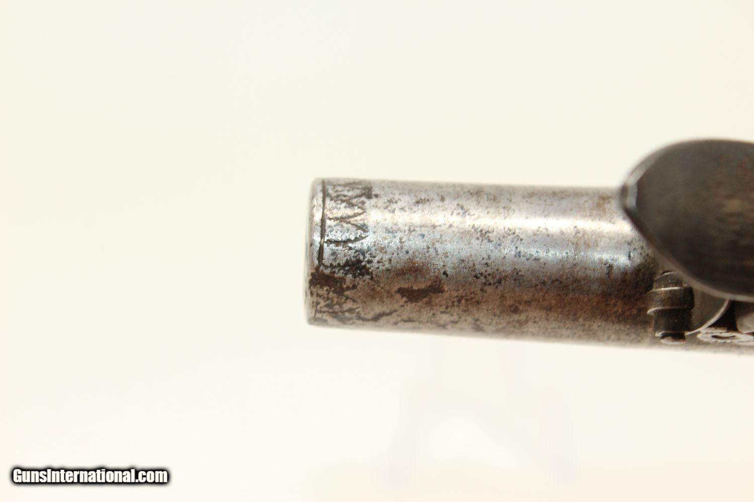 Description: ENGLISH Antique J. CLAY FLINTLOCK Pocket Pistol Early 19th Century Conceal Carry Gun Here we present an antique J. Clay Flintlock Pistol, made circa 1820 in Birmingham, England. This type of pistol was very popular from the 18th and into the 19th Centuries, in Europe, as well as the colonies. It could be stowed in the top of a boot, the belt, waistband or in a pocket. It was of course, made primarily for self-defense, and very well would tell stories if it could. Much happened in Britain, in its colonies and abroad during this period. This specimen is marked “J. CLAY” and “LONDON” on the frame. Clay is known to have made flintlock pistols during the 1820s. The rifled barrel twists off, making loading a much easier task than jamming a ball down the muzzle. This allowed the shooter to use a larger diameter ball, creating a better gas seal for more efficiency from a small gun. The underside of the frame is proofed with post-1813 proof marks. The overall condition is very good. The iron parts have a gray patina. The markings are clear. The wood grip is in good shape. The bore is smooth and dark. The action is strong and crisp. Own the original! This is a legitimate antique and not a reproduction. Barrel is 1-9/16 inches. Caliber: .47 Overall condition as seen in photos. Very Fast. Very Safe. FREE SHIPPING WORLDWIDE. Delivered directly to your door by express mail! Guaranteed AUTHENTIC & Includes CERTIFICATE OF AUTHENTICITY. ancestryguns $1150 #190410 SOLD Antique: Yes |