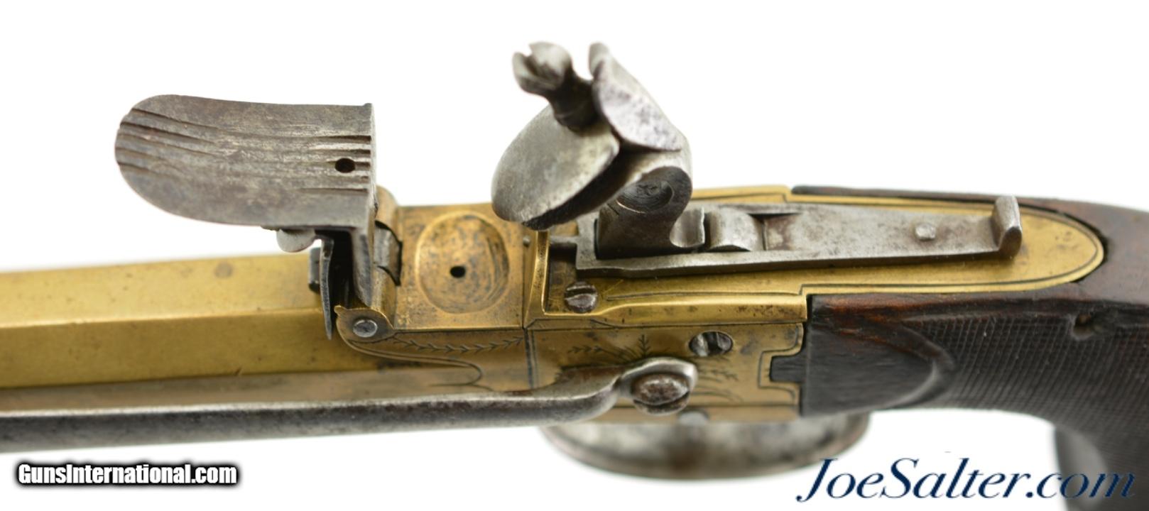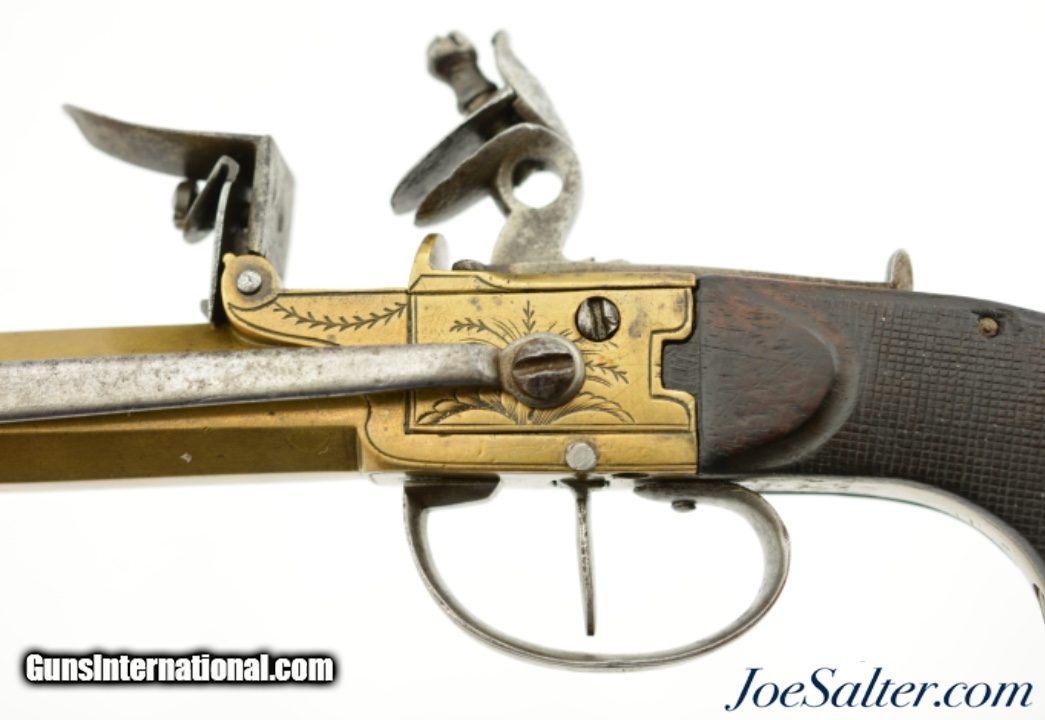 European Brass-Framed Flintlock Pistol With Snap Bayonet