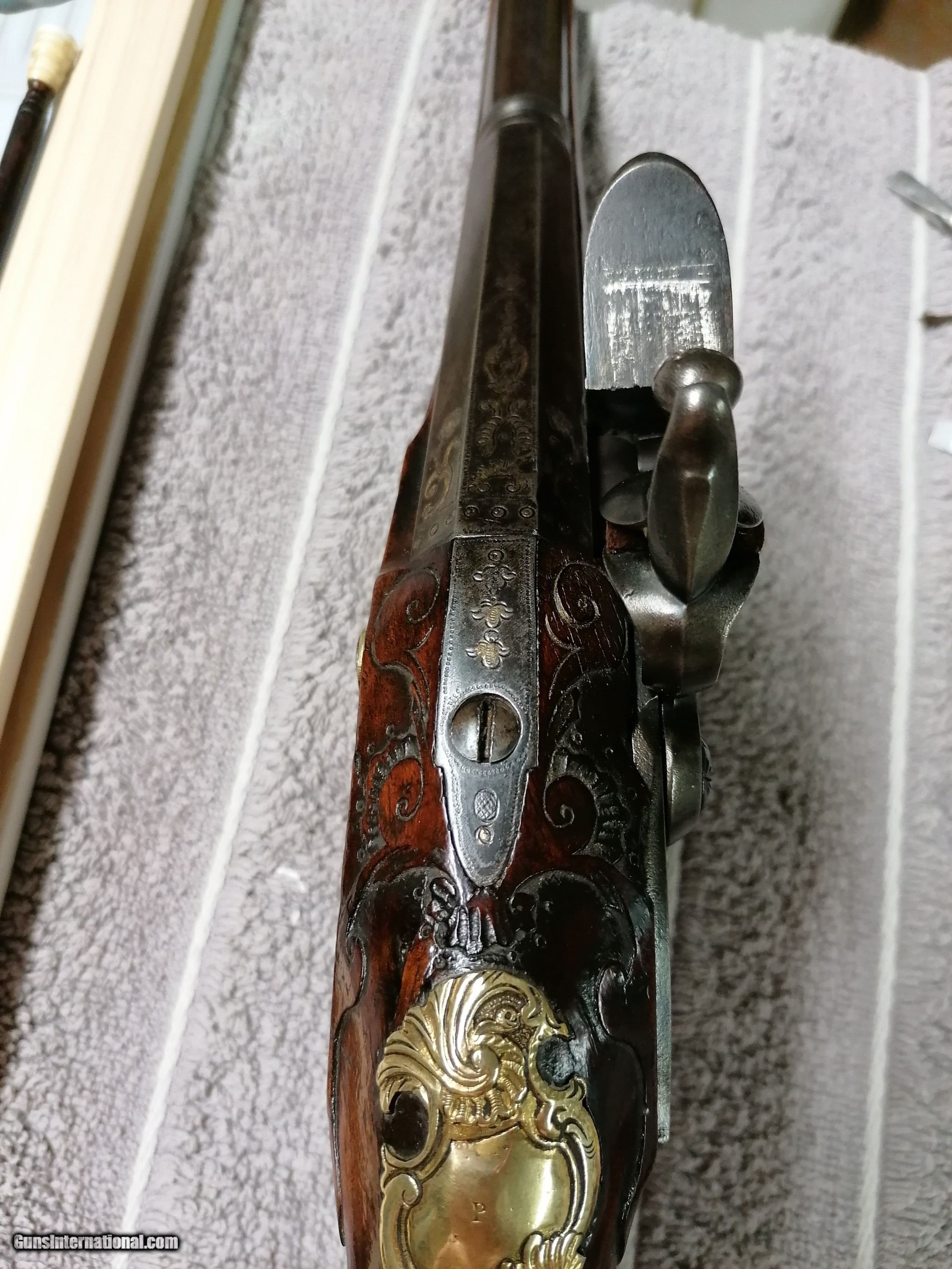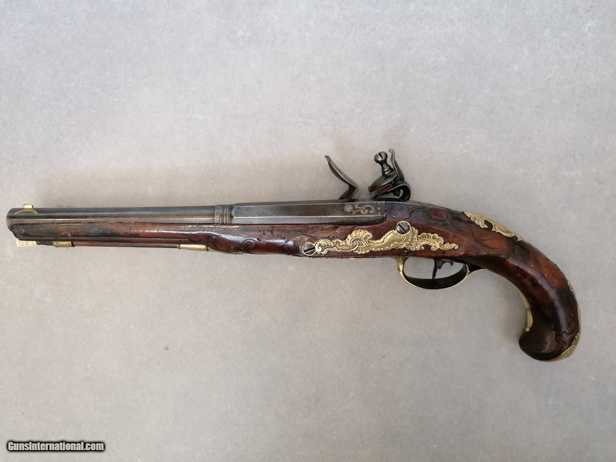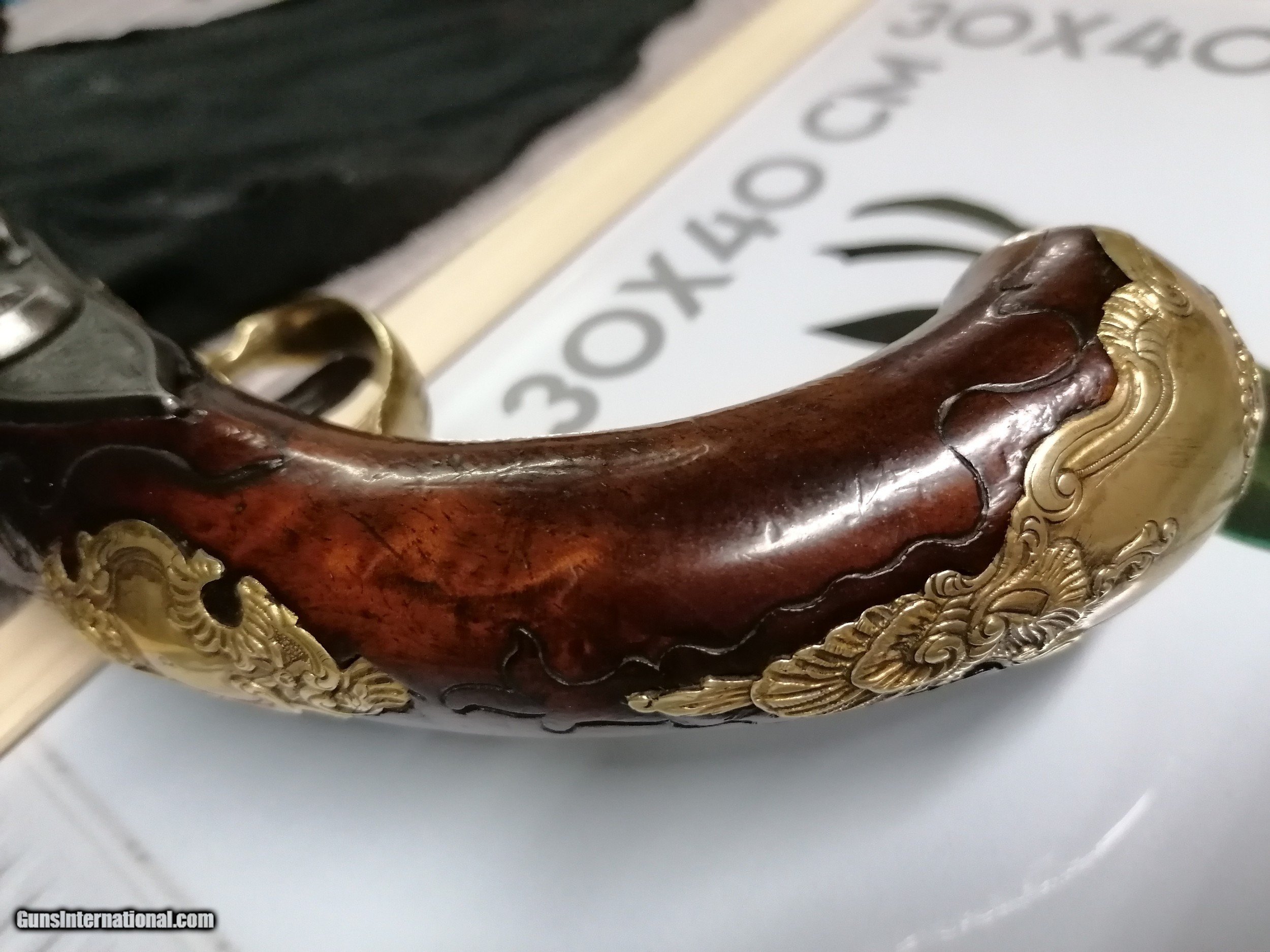 Description: Flintlock pistol end of XVIII century Expertised by Liege museum of weapons expert Copper ornament Butt in walnut wood Ivory at the end of the stick From Royal family Hesse-Philippsthal heritage Very good condition Shipping cost around 70 US Dollars from my place to your adress in USA Delivery time around 1 week with tracking number Do not hesitate asking me for further details (shipment,payment, pictures)! SOLD Antique: Yes |