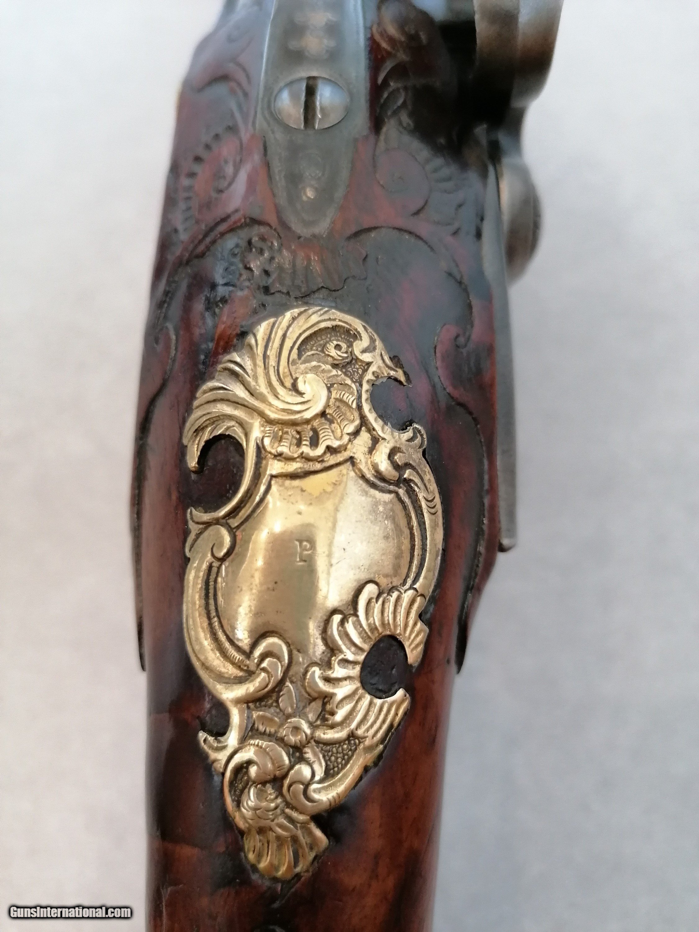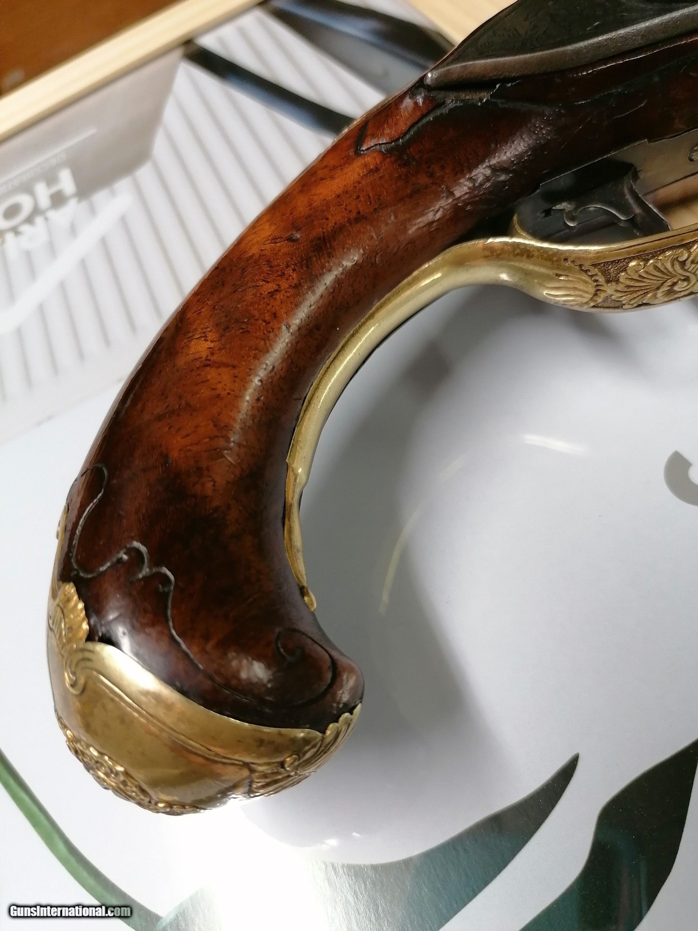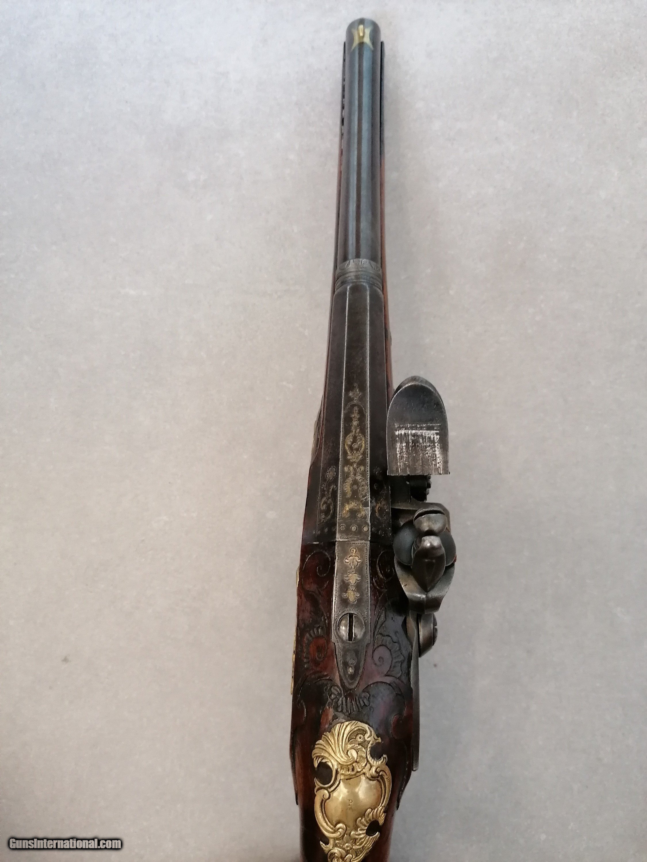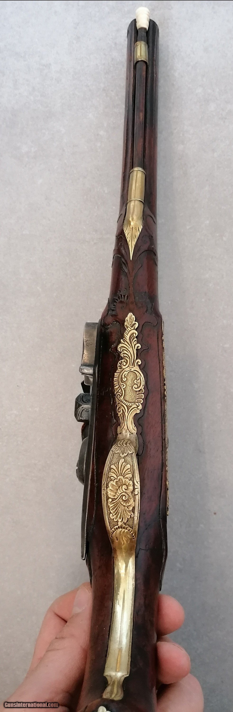 Description: Flintlock pistol end of XVIII century Expertised by Liege museum of weapons expert Copper ornament Butt in walnut wood Ivory at the end of the stick From Royal family Hesse-Philippsthal heritage Very good condition Shipping cost around 70 US Dollars from my place to your adress in USA Delivery time around 1 week with tracking number Do not hesitate asking me for further details (shipment,payment, pictures)! SOLD Antique: Yes |