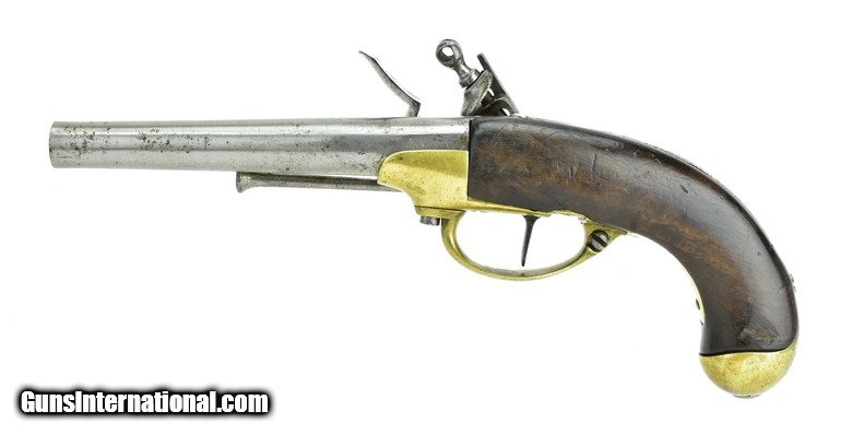 Description: French Model 1777 Charlesville Flintlock Pistol. Very nice sharp gun! Metal has been cleaned. Backstrap has an area of pitting. Grips are very good. Belt hook is missing. SOLD Antique: Yes |