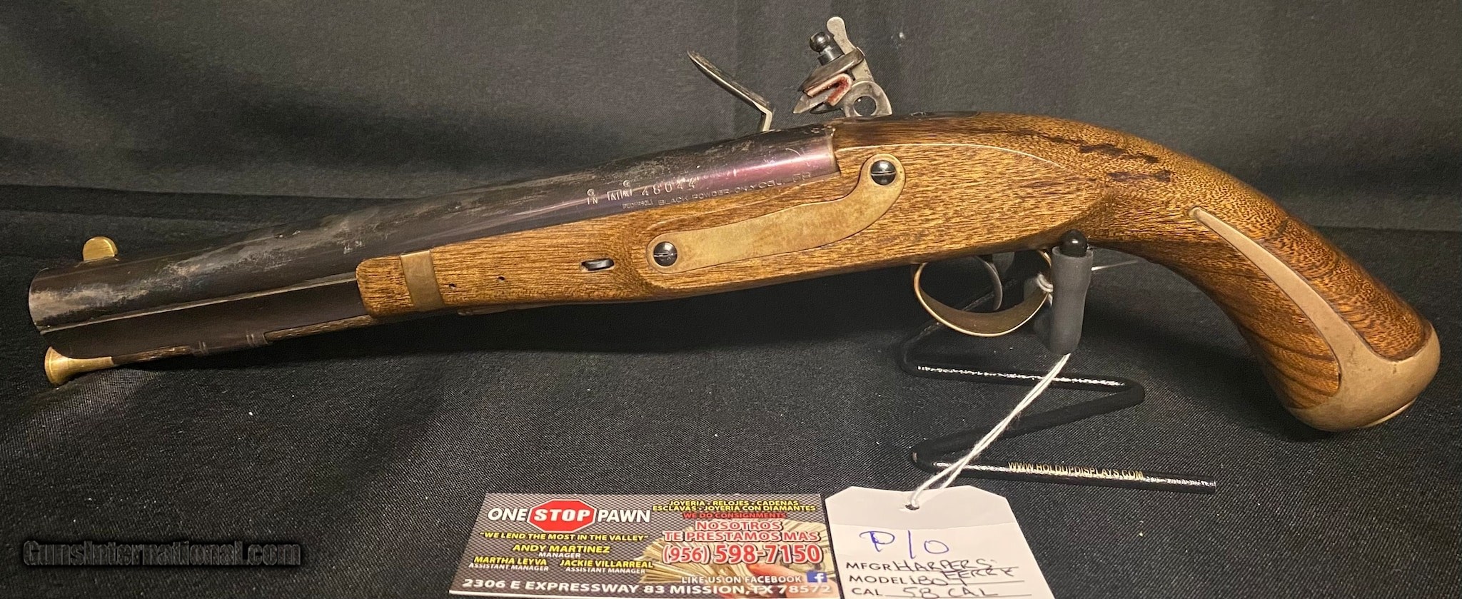 Description: Guns Listing ID: 672907 .58 CAL PRE-OWNED NO BOX BLACK POWDER PISTOL SOLD Antique: Yes Manufacturer: HARPERS FERRY Model: 1807 Caliber Info: .50 BMG BLACK POWDER Condition: Used - Non-Certified Barrels: 10 BARREL Finish: WOOD GRIPS/BLUED STEEL |
