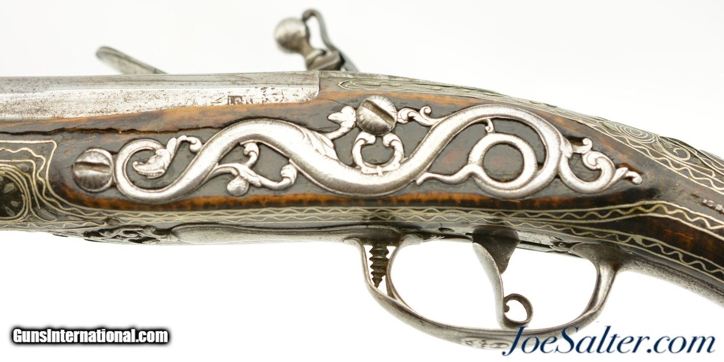 Interesting Pair of Highly Embellished 20-Bore Pistols Purportedly by Robert Delany ca. 1720