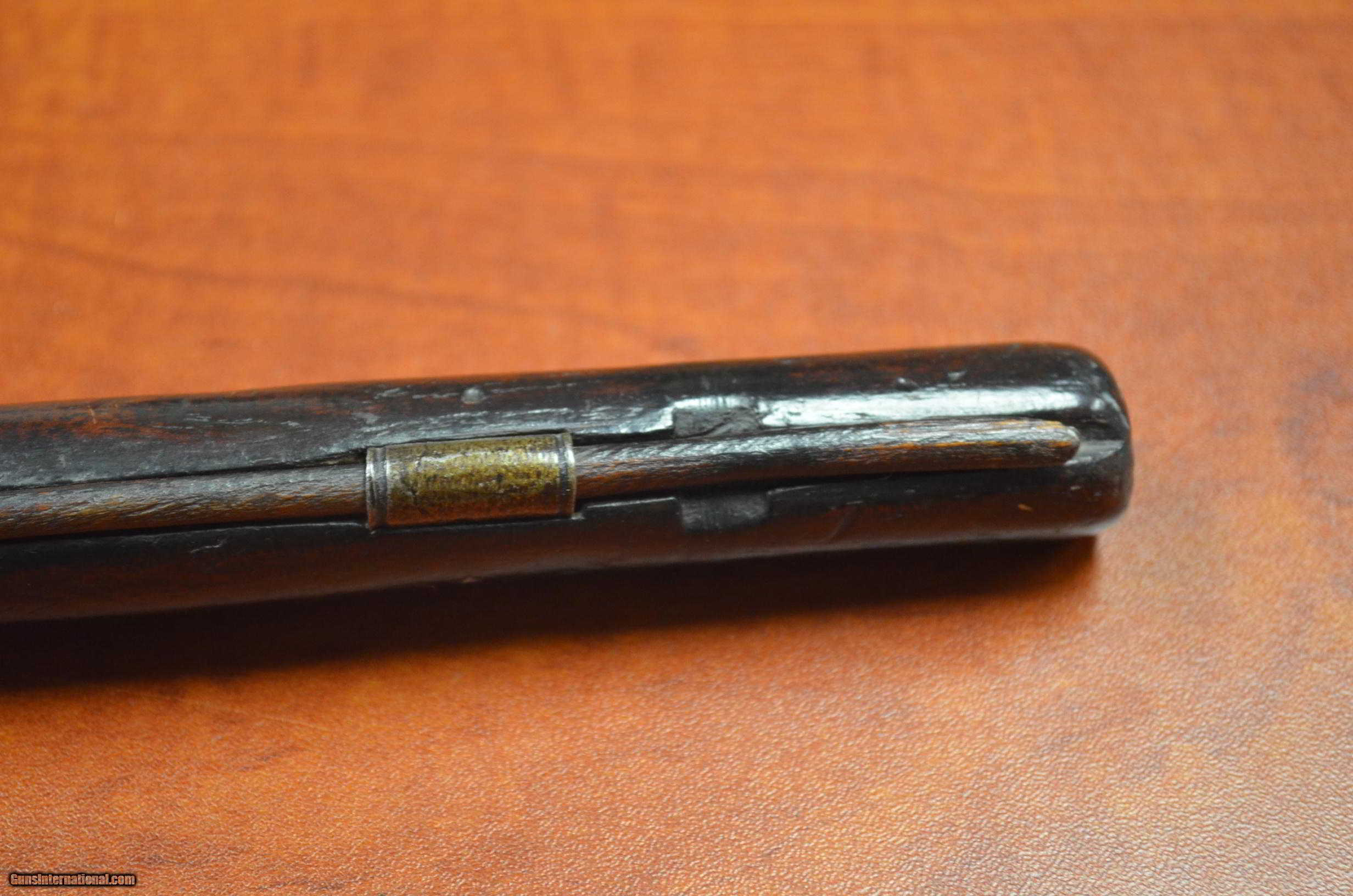 Description: Flintlock pistol 10” barrel- This pistol is an Antique Flintlock pistol made in either Spain or Italy in the 18th century. The pistol has ornate engraving and fittings along with custom wood work and designs. Pistol is original with wear from use. Please send all inquiries to hggiheritageguild or call and ask for Tom in sales at 610.258.5500 Tuesday through Friday 10am-5pm and Chris Monday 10am-5pm. All guns subject to sale in our retail location. SOLD Antique: Yes Manufacturer: Italian or Spain Model: Flintlock |