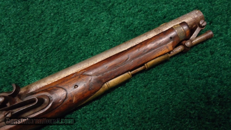Description: 10-3/4" bbl in 71 cal. Some proof marks on the bbl. Not sure of the origin. On the bottom of the trigger guard is a bunch of letters which may be able to be deciphered. Mostly rusty on the bbl inside and out. The brass furniture has a nice aged look. Wood is worn in places but overall good cond. Swivel ram rod is present. Hammer and frizzen springs are good. Unfortunately part of hammer and screw is missing. VG wall hanger or conversation piece for the mantel. Leroy Merz Antique Firearms specializes in antique and vintage Winchesters and other fine American firearms. Since 1965 Mr. Merz has taken part in the world of firearms and has been a contributor to many well known reference books. Just recently we mailed the 124th edition of our privately-published catalog. We have hundreds of additional guns in every price range at our home online. Search for Merz Antiques in google. SOLD Antique: Yes |