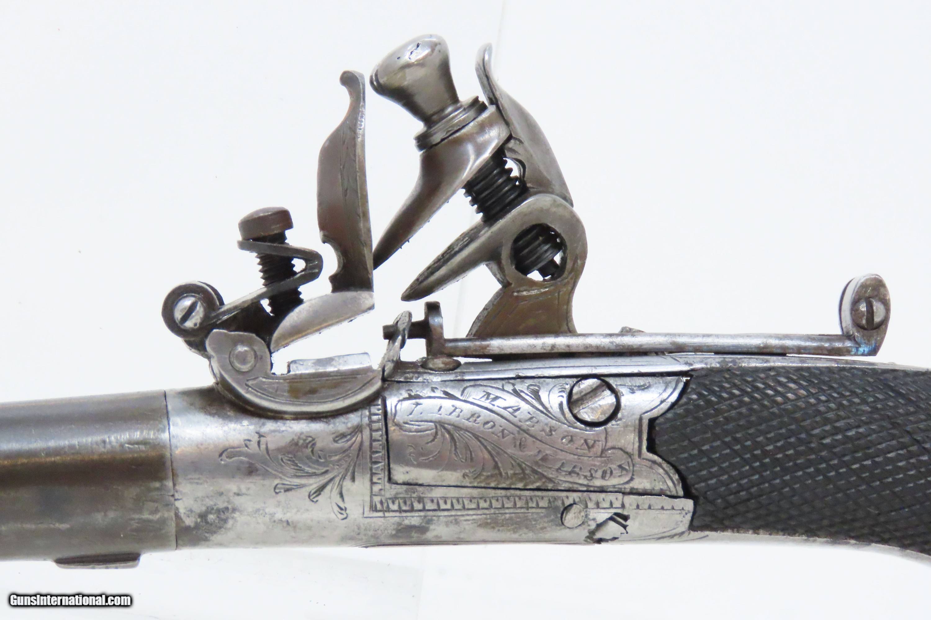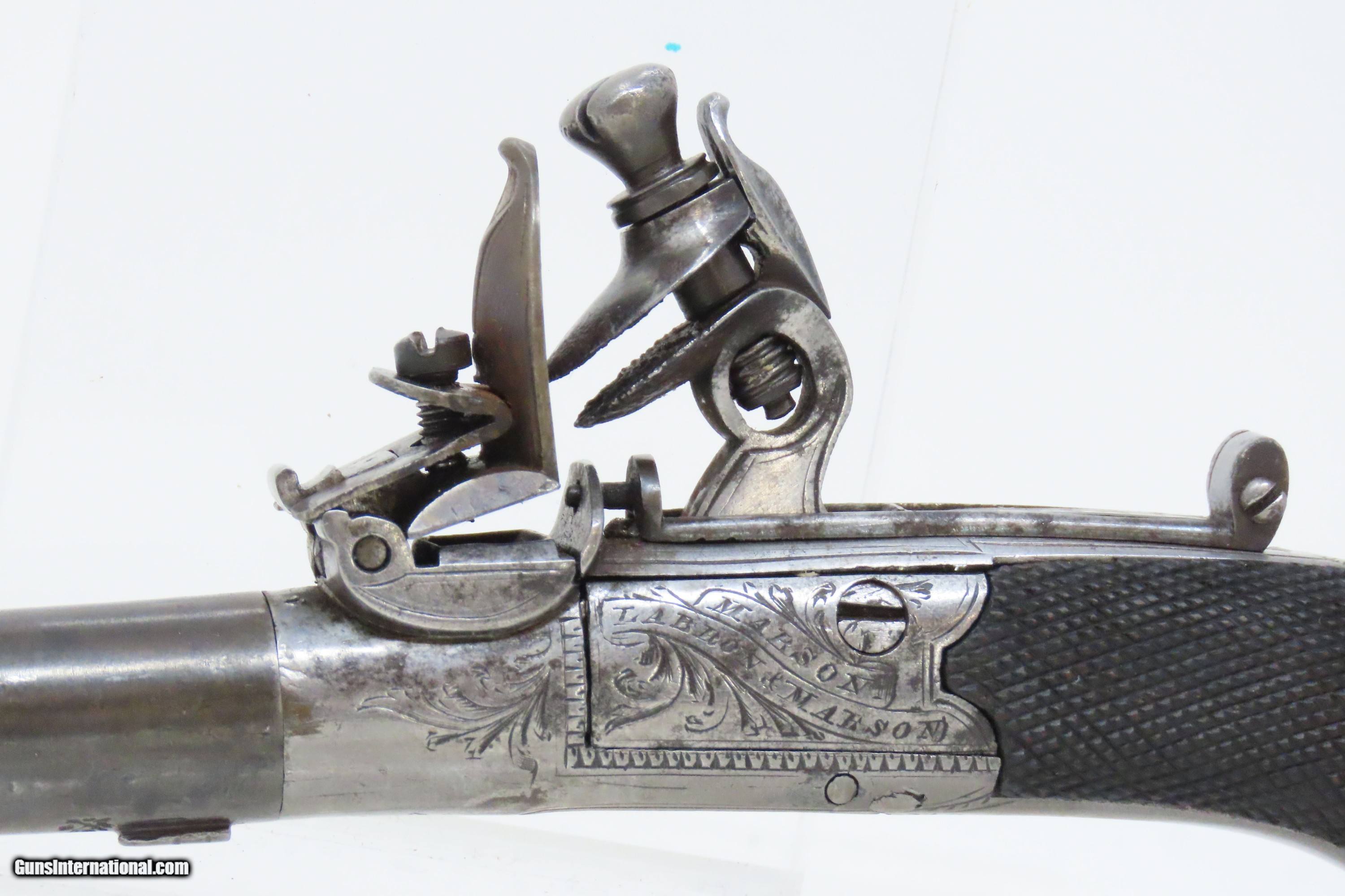 PAIR of Antique BRITISH Mabson, Labron, & Mabson .32 Cal. FLINTLOCK Pistols Engraved, Made Circa the Early-1800s in Birmingham