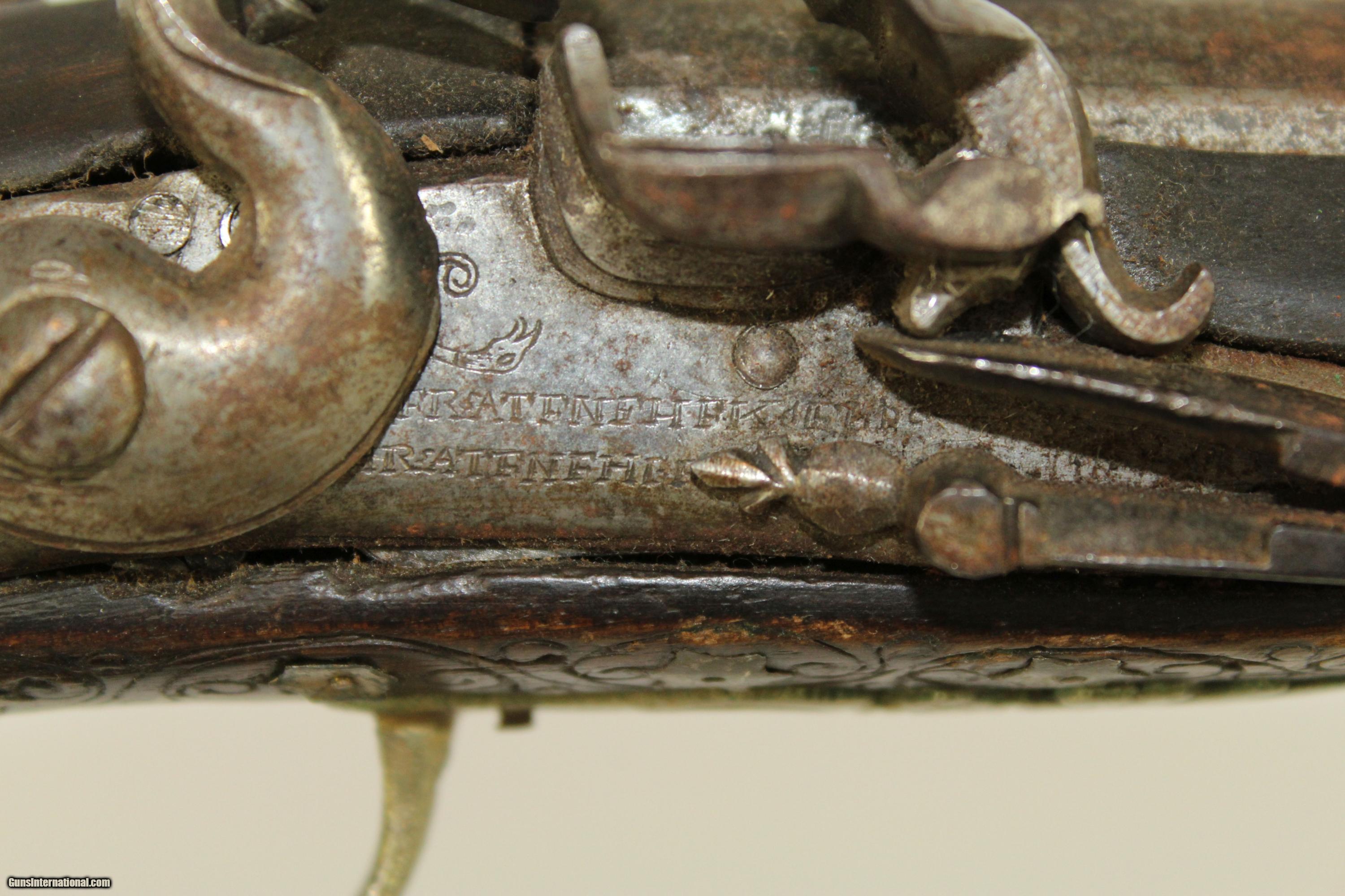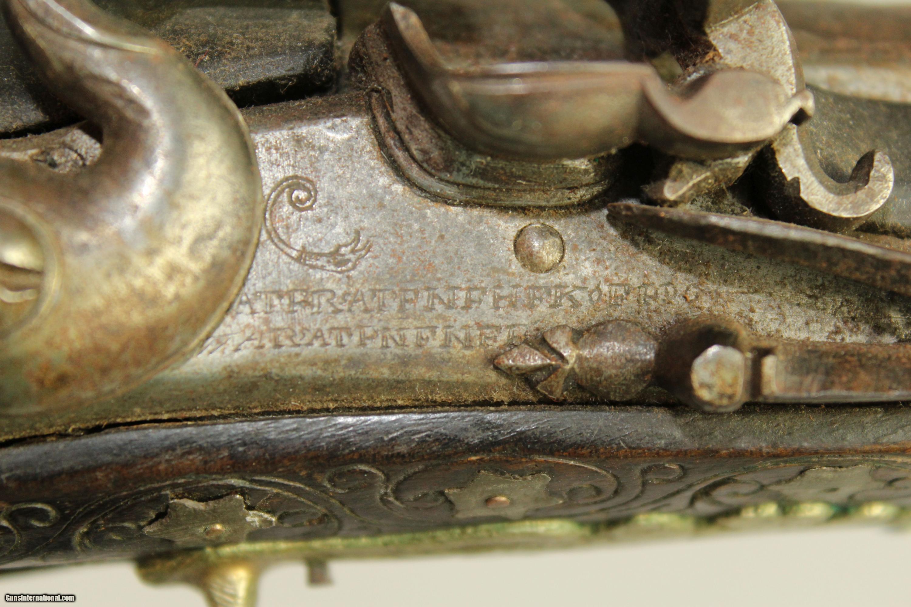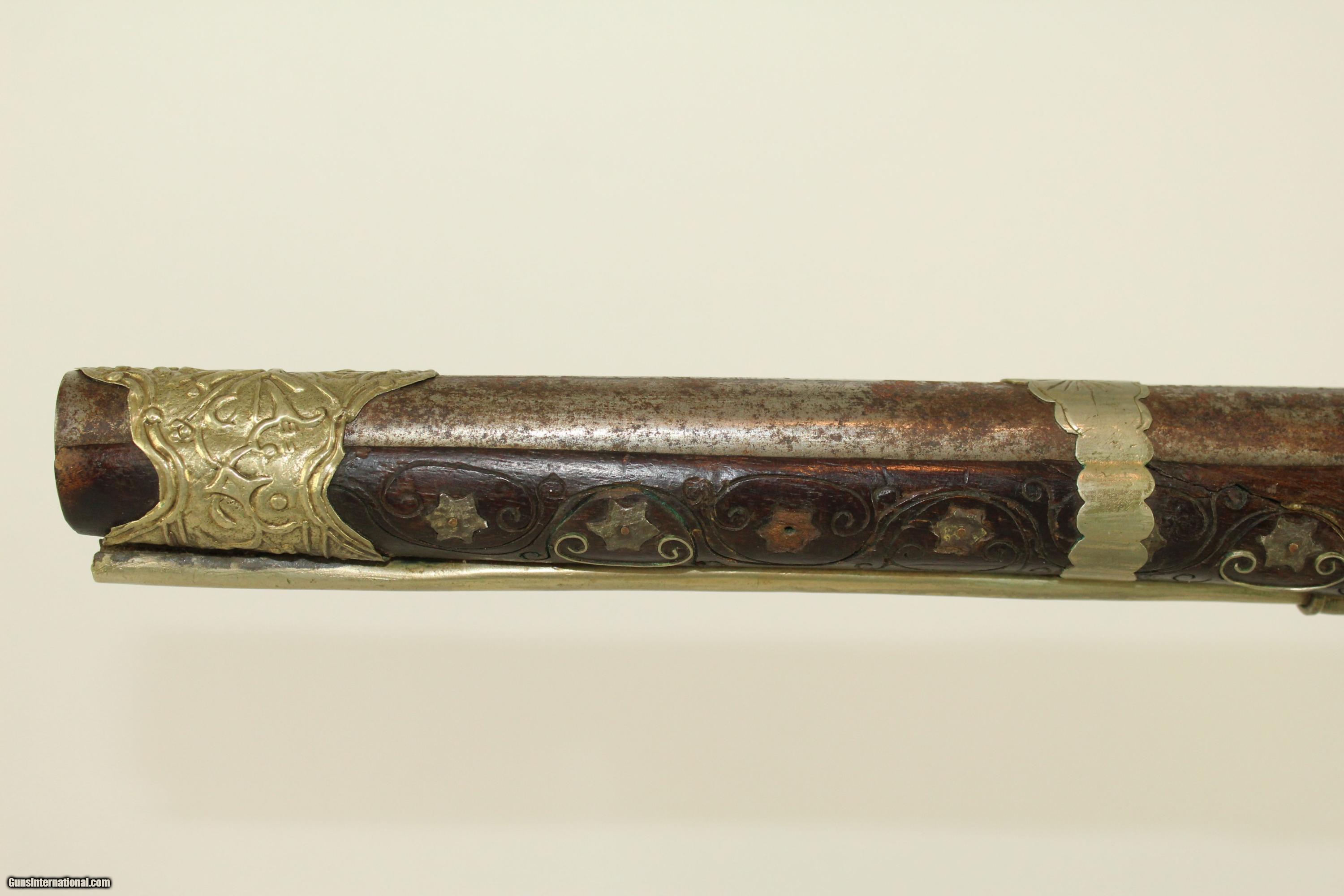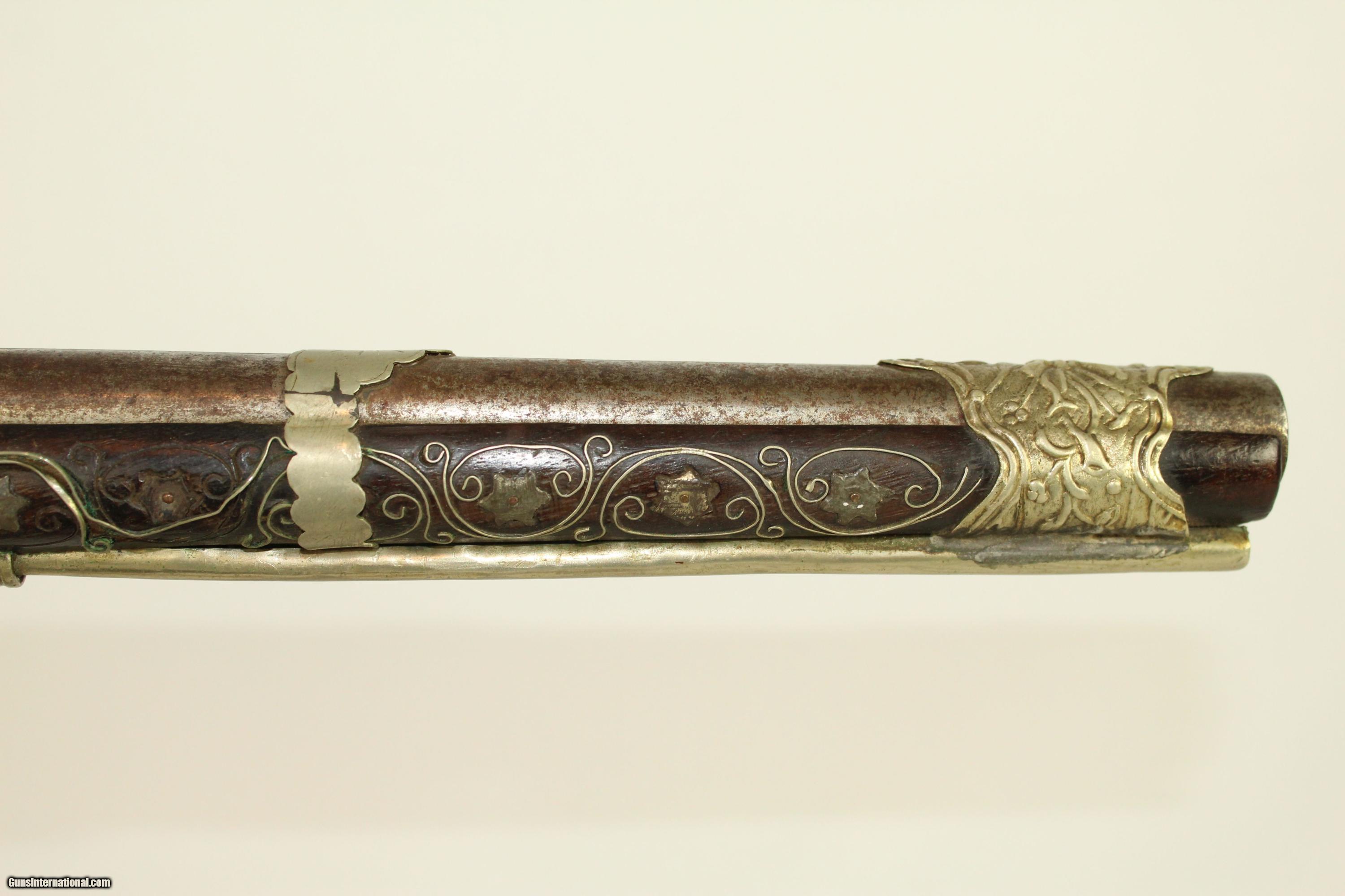 Description: U.S. President Grover Cleveland’s Turkish Pistols With Notarized Statement from 1948, Double Holster Here we present an antique Pair of Turkish Flintlock Pistols, made in the early 19th century. With the pistols comes an ornate double holster. The pistols themselves are highly decorated and include extensive wire inlays, figured brass pommels and accents, as well as barrel bands. Each pistol has a fixed ramrod which is typical of Ottoman pistols. Also with this set comes a document notarized on October 13, 1948, stating that William Thayer purchased these pistols from U.S. President Grover Cleveland’s heirs and that this pistol was at one time owned by him. President Cleveland was a Democrat who, before being elected President, was a lawyer, Sheriff of Erie County in New York, Mayor of Buffalo, and Governor of New York. He was the only U.S. President in history to have served two non-consecutive terms. He was defeated during his re-election by Benjamin Harrison in what has become to be known as one of the most corrupt elections in U.S. history. As he and his family were leaving the White House his wife, Frances Cleaveland, instructed a staffer, saying “I want you to take good care of all the furniture and the ornaments in the house, for I want to find everything just as it is now, when we come back again.” Cleveland then defeated Harrison 4 years later in his re-election to regain the post. It is interesting to note that during his second term, on several occasions, Cleveland voraciously condemned the Ottoman Turks’ massacre of Armenian Christians. One occasion followed the Occupation of the Ottoman Bank in Constantinople by the Armenian Revolutionary Federation on August 26, 1896, when 26 of the group armed themselves and captured international attention by occupying (and not robbing) the bank. “I do not believe that the present sombre prospect in Turkey will be long permitted to offend the sight of Christendom. It so mars the humane and enlightened civilization that belongs to the close of the 19th century that it seems hardly possible that the earnest demand of good peoples throughout the Christian world for its corrective treatment will remain unanswered.” He was a non-interventionist, who followed his own interpretation of the Monroe Doctrine. Therefore he declined to send troops to intervene in the crisis, but instead offered asylum to those wanting to flee the terror of the Sultan. One wonders if these pistols and their holster might not be a gift from grateful Armenians. Cleveland spent a considerable amount of his free time hunting and fishing, and it is said that he had a name for each of the rifles in his collection. “Death and Destruction” was the name of his favorite. The NRA currently has in their collection one of his shotguns, a rare Colt 8 gauge side-by-side. The overall condition of the pistols is fair. The barrels and locks share a mostly even patina. The markings on the locks are clear. The stocks are heavily inlaid with wire and décor. The wood is somewhat chipped and repaired, but are absolutely suited for display. The bores are in very good condition. The actions are functional. The holster is delicate and complete a nice display. Own the original! This is a legitimate antique and not a reproduction. Barrel is 13-3/4 inches in length. Caliber: .66 The bores are in very good condition and the actions are functional. Overall condition as seen in photos. Here are two very interesting pistols from the collection of an American President. Very Fast. Very Safe. FREE SHIPPING WORLDWIDE. Delivered directly to your door by express mail! Guaranteed AUTHENTIC & Includes CERTIFICATE OF AUTHENTICITY. ancestryguns $4500 #21669 & 21670 SOLD Antique: Yes |
