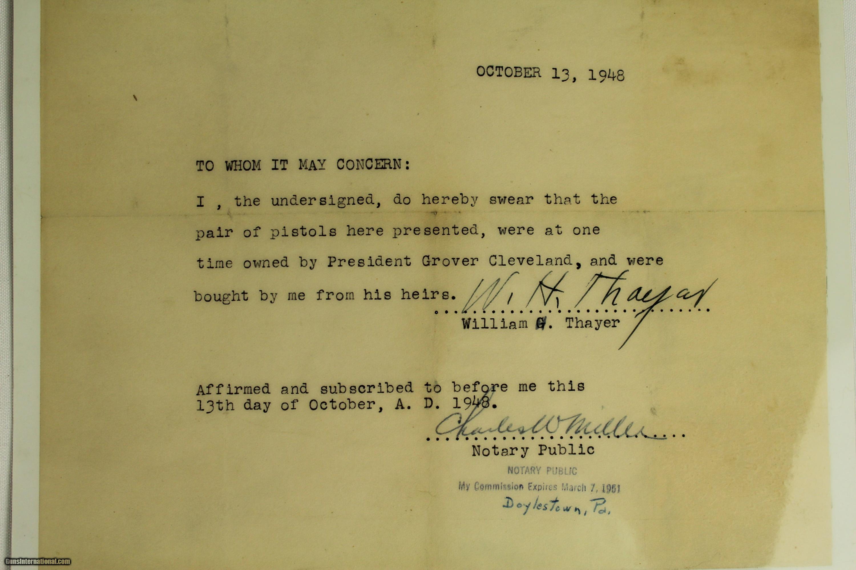 PRESIDENT Grover Cleveland's Pair of Turkish Pistols with Notarized Statement from 1948 and Double Holster