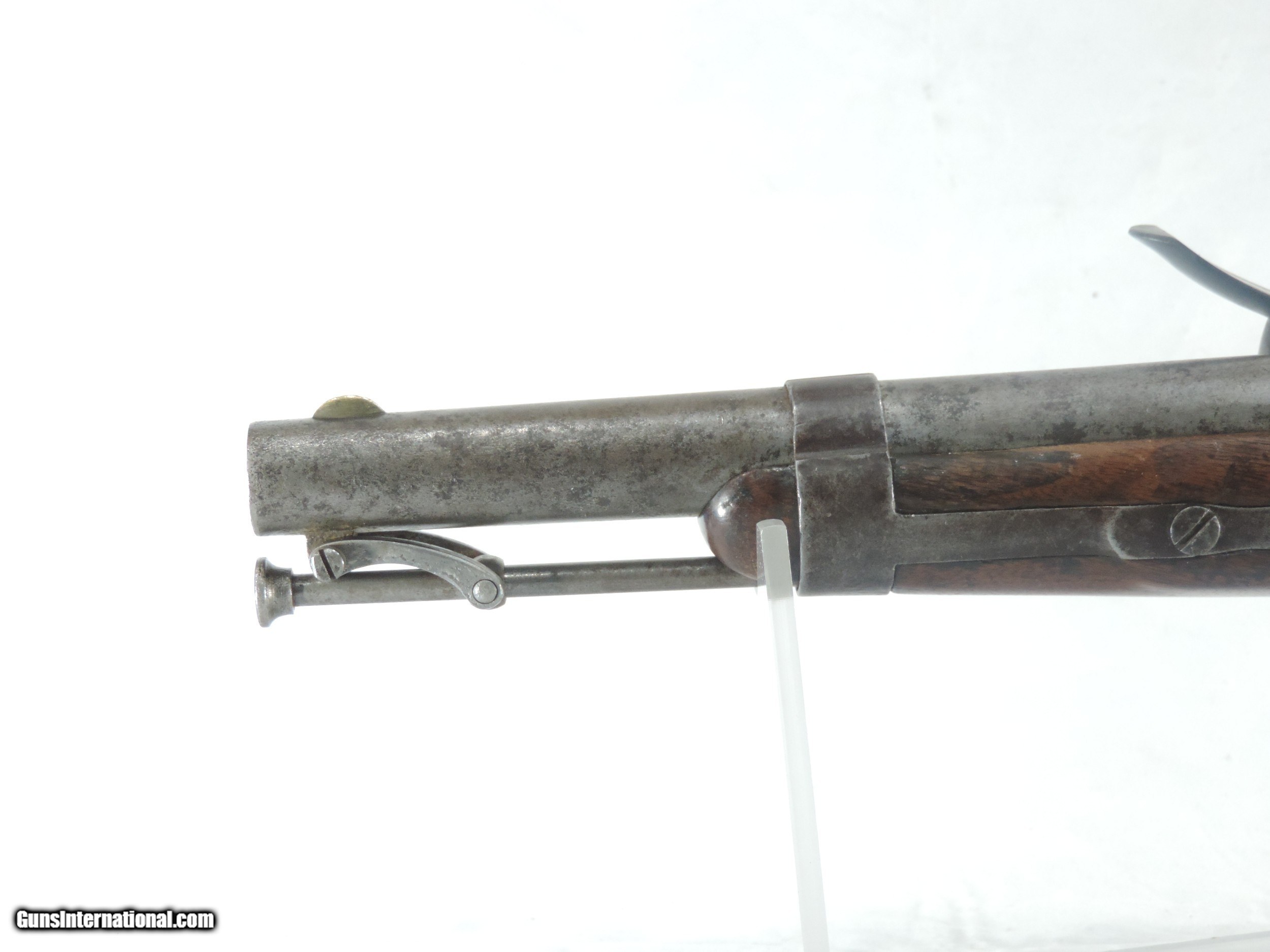Description: INV. 8542 RARE U.S. ASA WATERS MDL. 1836 FLINTLOCK , CAL. .54. MFG.1838. THE CONDITION OF THIS 185 YEAR OLD PISTOL IS GREAT. THE ORIGINAL METAL PARTS WERE SHIPPED IN THE WHITE. THIS ONE HAS RETAINED ABOUT 70% OF THE ORIGINAL FINISH. THE BULK OF THE LOSS IS FROM LITTLE SURFACE PINPRICKS AND AGEING PATINA. THE STOCK HAS RETAINED ABOUT 80% OF THE ORIGINAL LACQUER. THERE ARE NO SPLITS OR CRACKS NOTHING MORE THAN A FEW FEW SURFACE DINGS. THE INSPECTOR'S CARTOUCHE IS STILL VISIBLE ON THE LEFT SIDE. THE LOCK IS FULLY FUNCTIONAL AND ALL ORIGINAL. INCLUDING THE BRASS PAN. THE RAM ROD THAT IS USUALLY MISSING IS COMPLETE AND PRESENT. THIS "AMERICAN FLINTLOCK" WOULD SATISFY EVEN THE VERY CRITICAL COLLECTOR AND IS A GREAT INVESTMENT. IF IT COULD TALK, WHAT STORY IT COULD TELL. MODESTLY PRICED AT......$1695....SHIPPED*** ***SATISFACTION GURANTEED. To purchase this firearm or if you want to request more information contact us at: Email ckguns[at]ymail[dot]com Phone 201-512-0002 Cell 201-575-6838 FAX 201-215-4759 We accept most major credit cards. Prices shown are Discounted 3% for Cash or Check. The buyer must be familiar with all the laws governing the purchase and the ownership of firearms in their own city and state. The Yankee Armorer, Inc is not responsible for any failure to comply with or observe these laws. The Yankee Armorer, Inc will only ship after full payment and receipt of all required documents. Shipping: Add $35.00 for handguns, $45.00 for long guns. New Jersey buyers are subject to a 7% sales tax. The Yankee Armorer, Inc offers a 3 day inspection period with full refund upon return of intact firearm and in the original condition. The Yankee Armorer, Inc offers a no interest lay away program - 25% down; 25% in 30 days; 25% in 60 days; and full payment in 90 days. Any violation of this policy is subject to restocking and forfeiture of all payments. Any variation from this policy must be agreed to in advance. Unshipped Cancelled sales are subject to a 20% restocking fee. Be advised that all firearms sold by The Yankee Armorer, Inc. or the Gun Exchange, LLC (SELLER) are sold as collector’s items. They have not been fired or tested for safety and must be examined by a license gunsmith prior to use. By purchasing any item from the (SELLER), you are agreeing to hold the (SELLER) free from any damages or lawsuits of any nature. Any item left for transfer or storage will be charged to $25.00 per month, per item from the day of its receipt. Any variation from this policy must be agreed to in advance. Store hours 10:00 am to 5:00 pm Tuesday -Saturday. It's always best to call for appointment. Store 201-512-0002, cell 201-575-6838. SOLD |